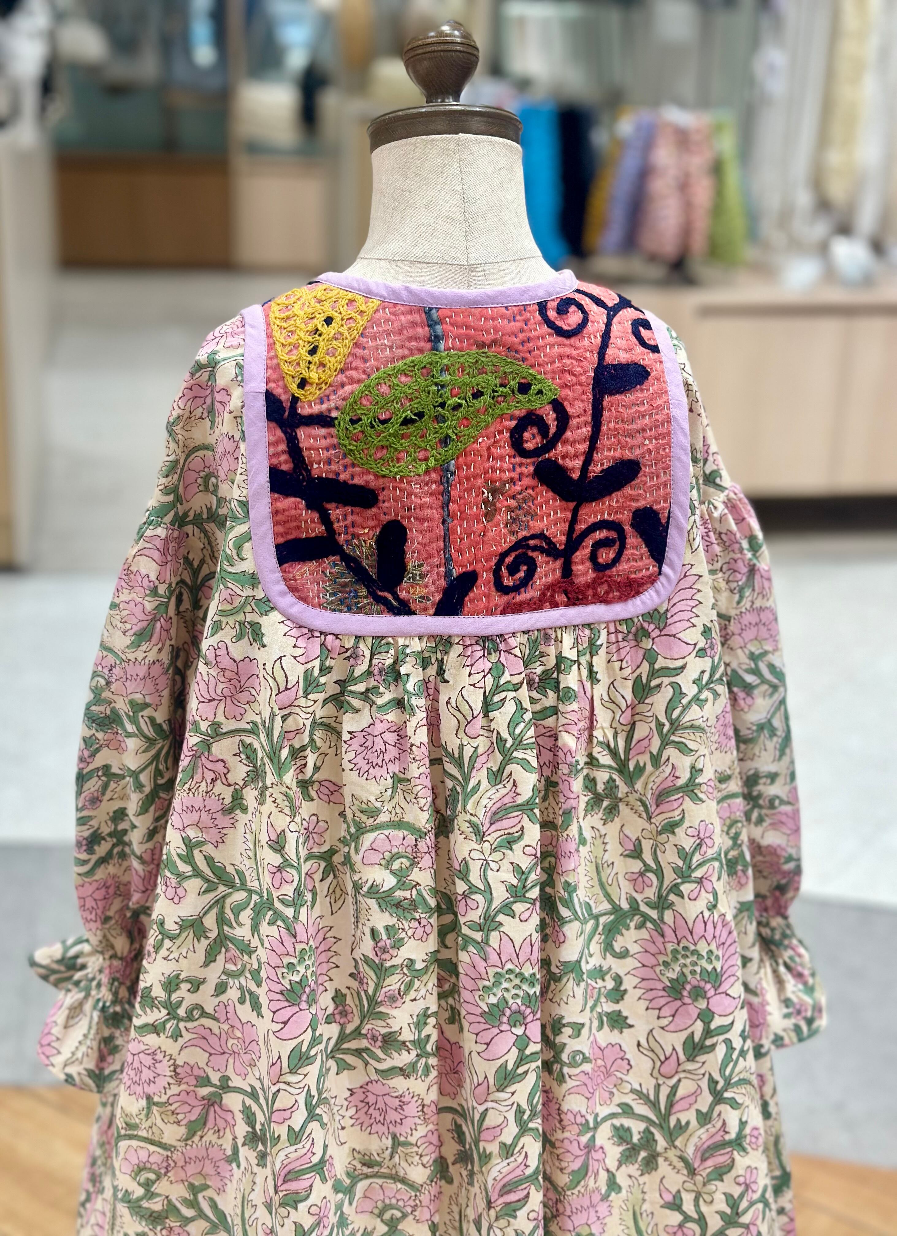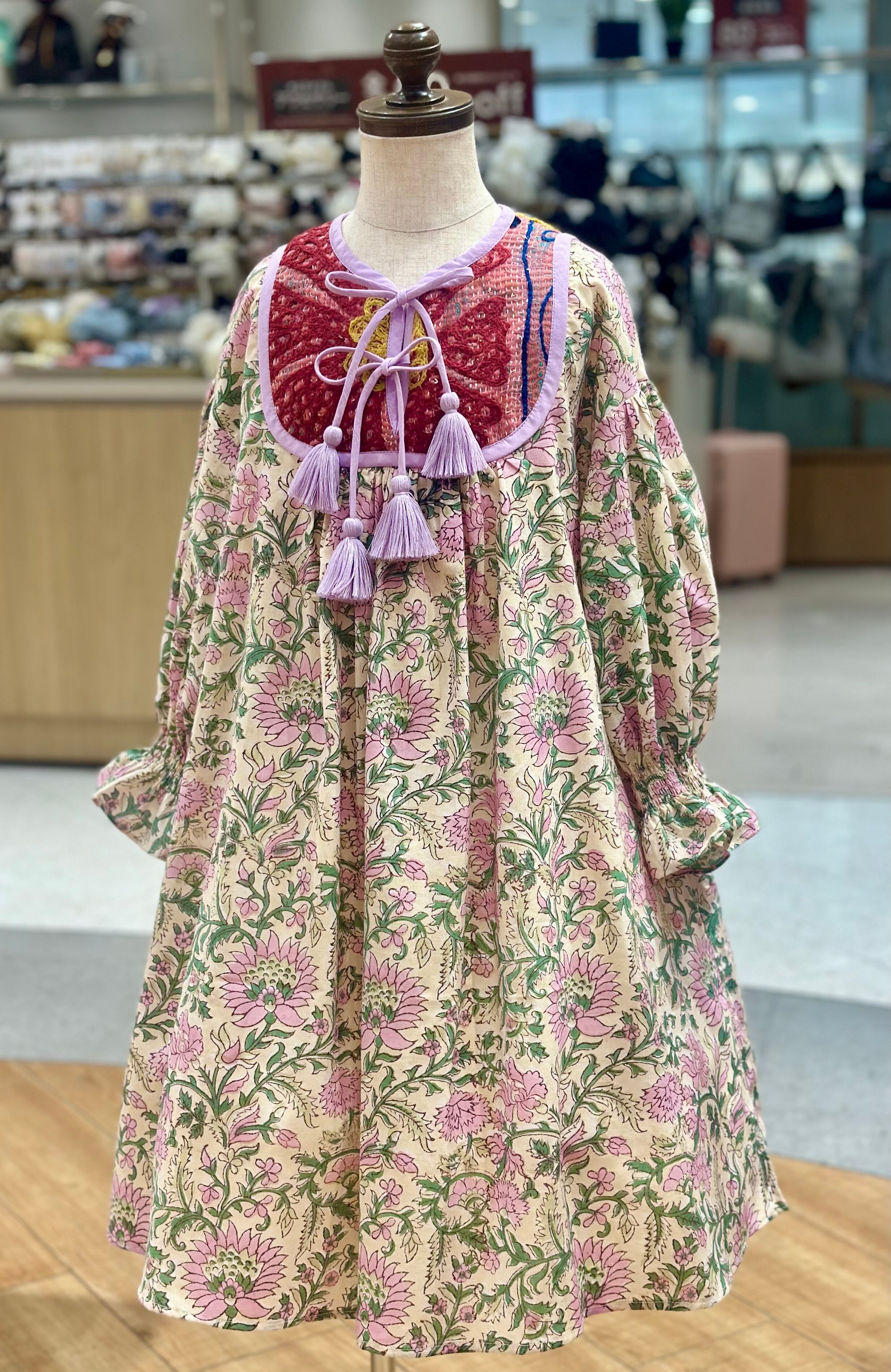 No.IN06|ハンドメイ女の子一点物インド綿カンタキルトワンピース