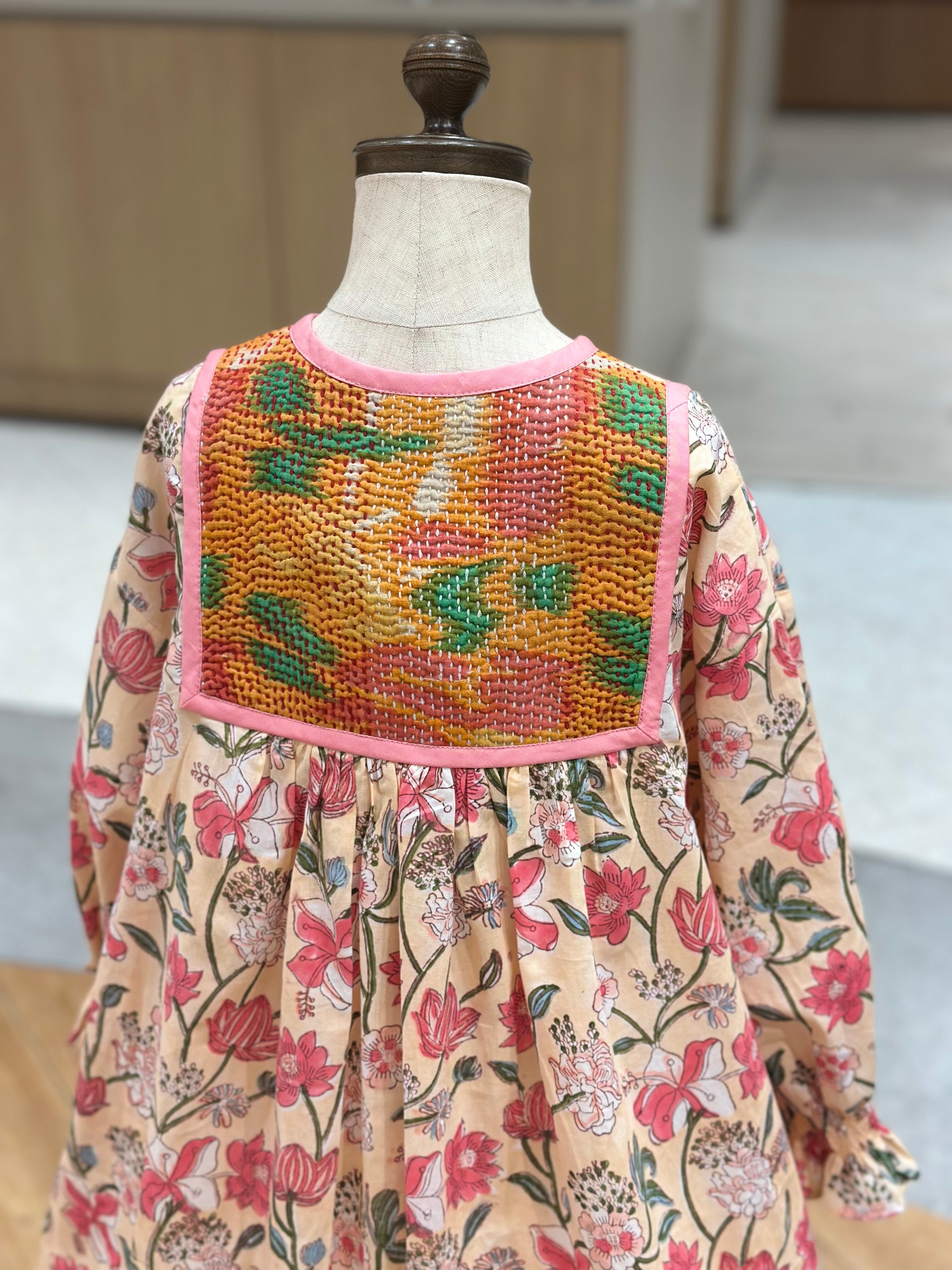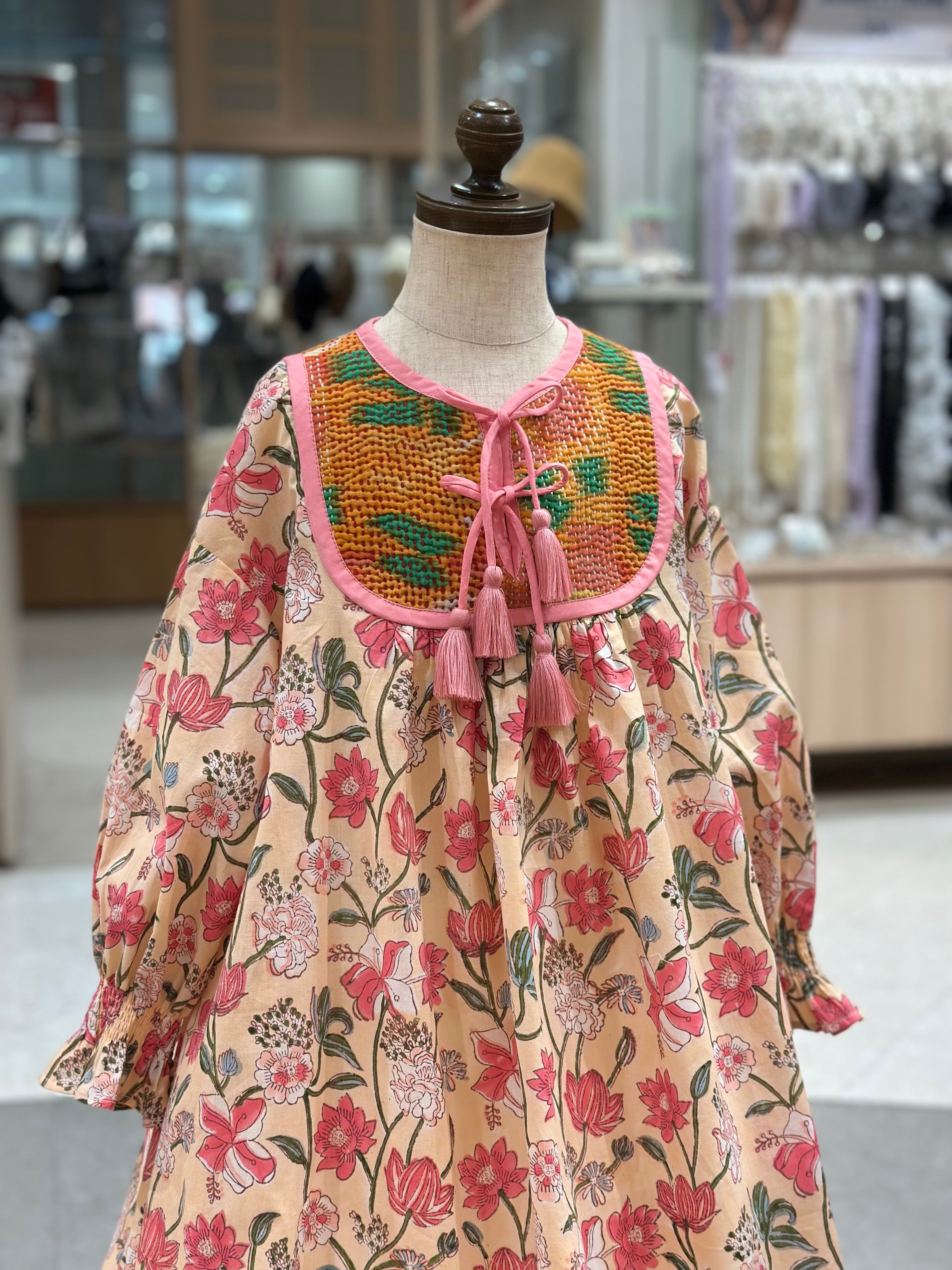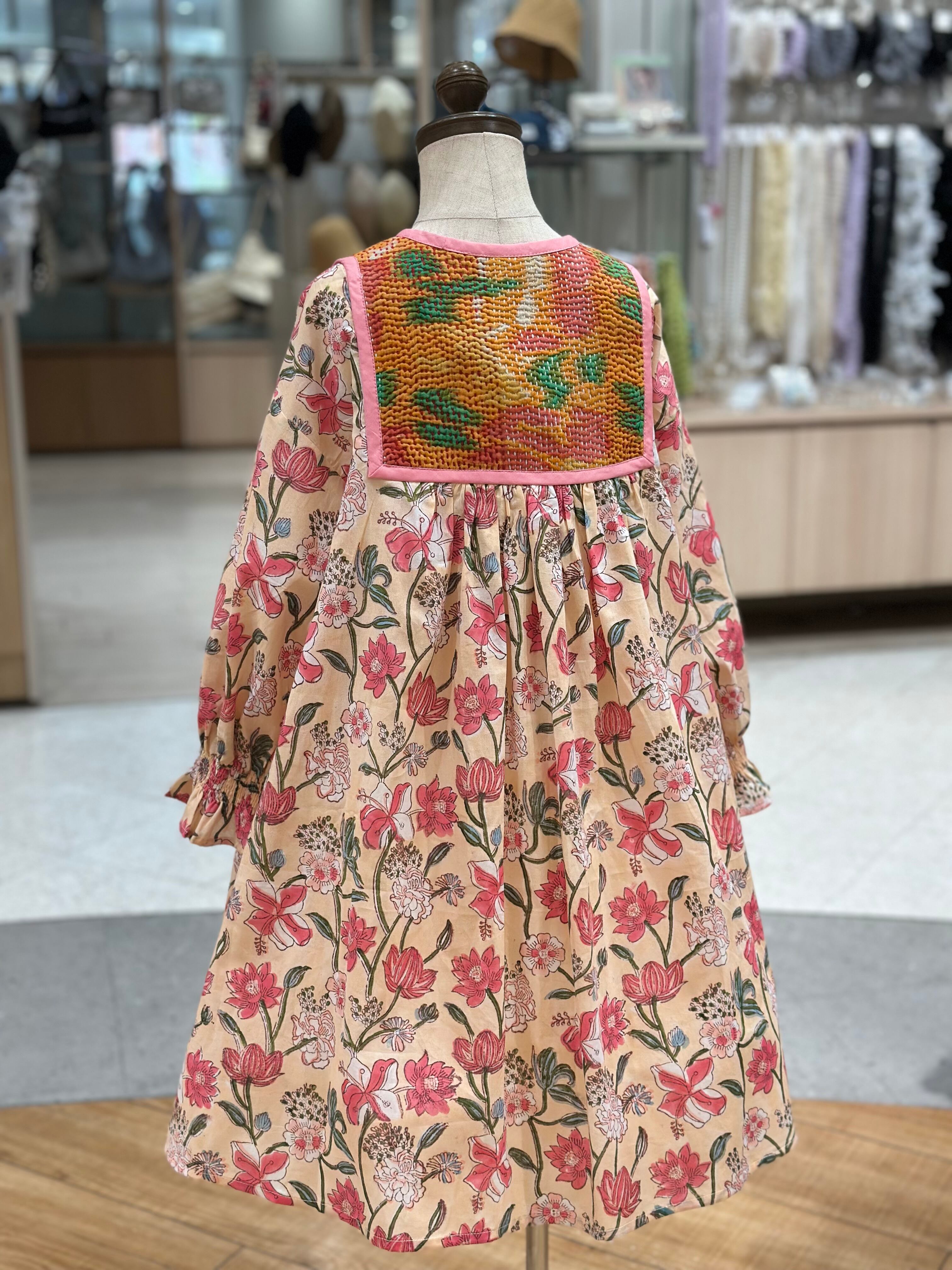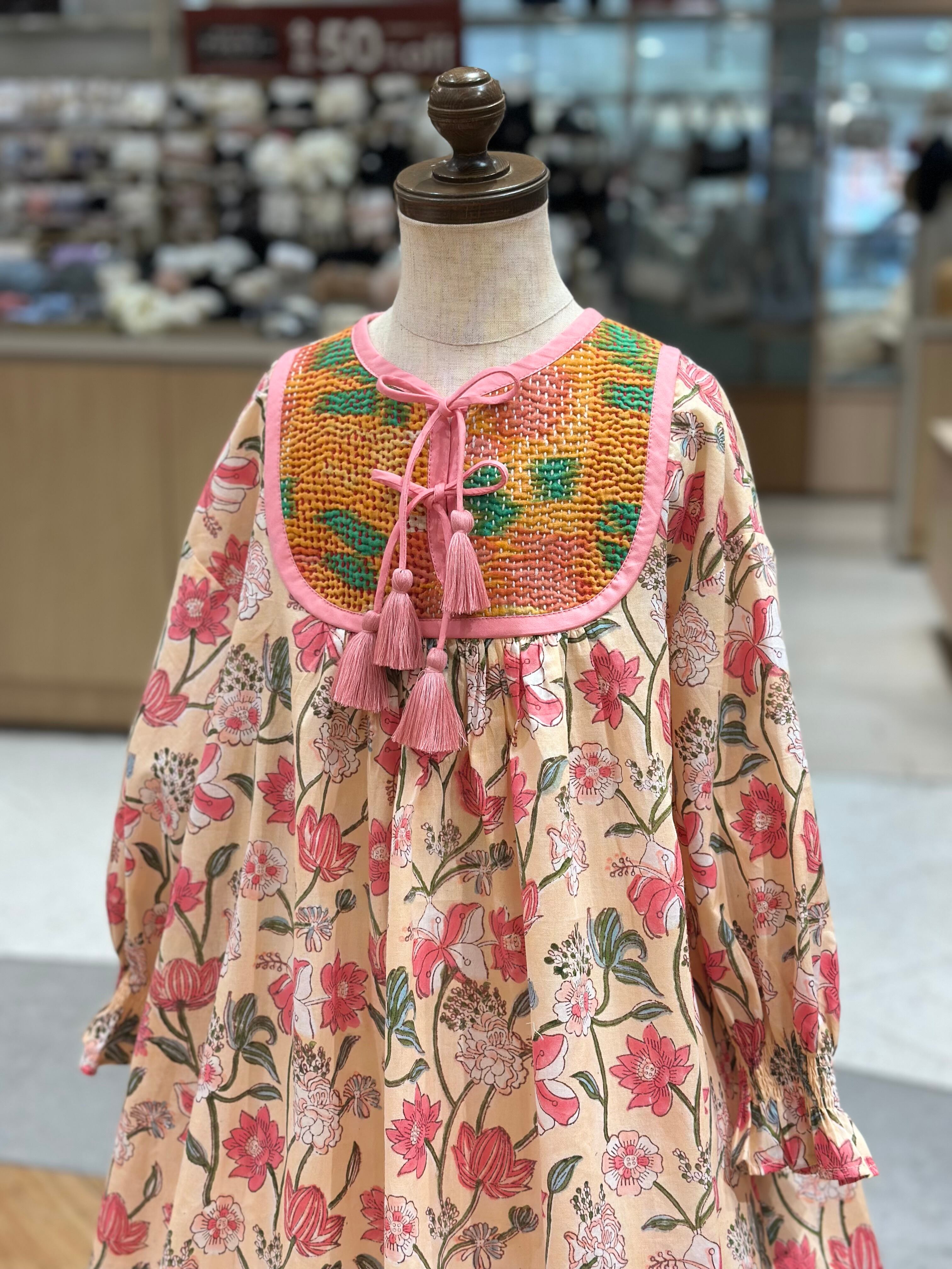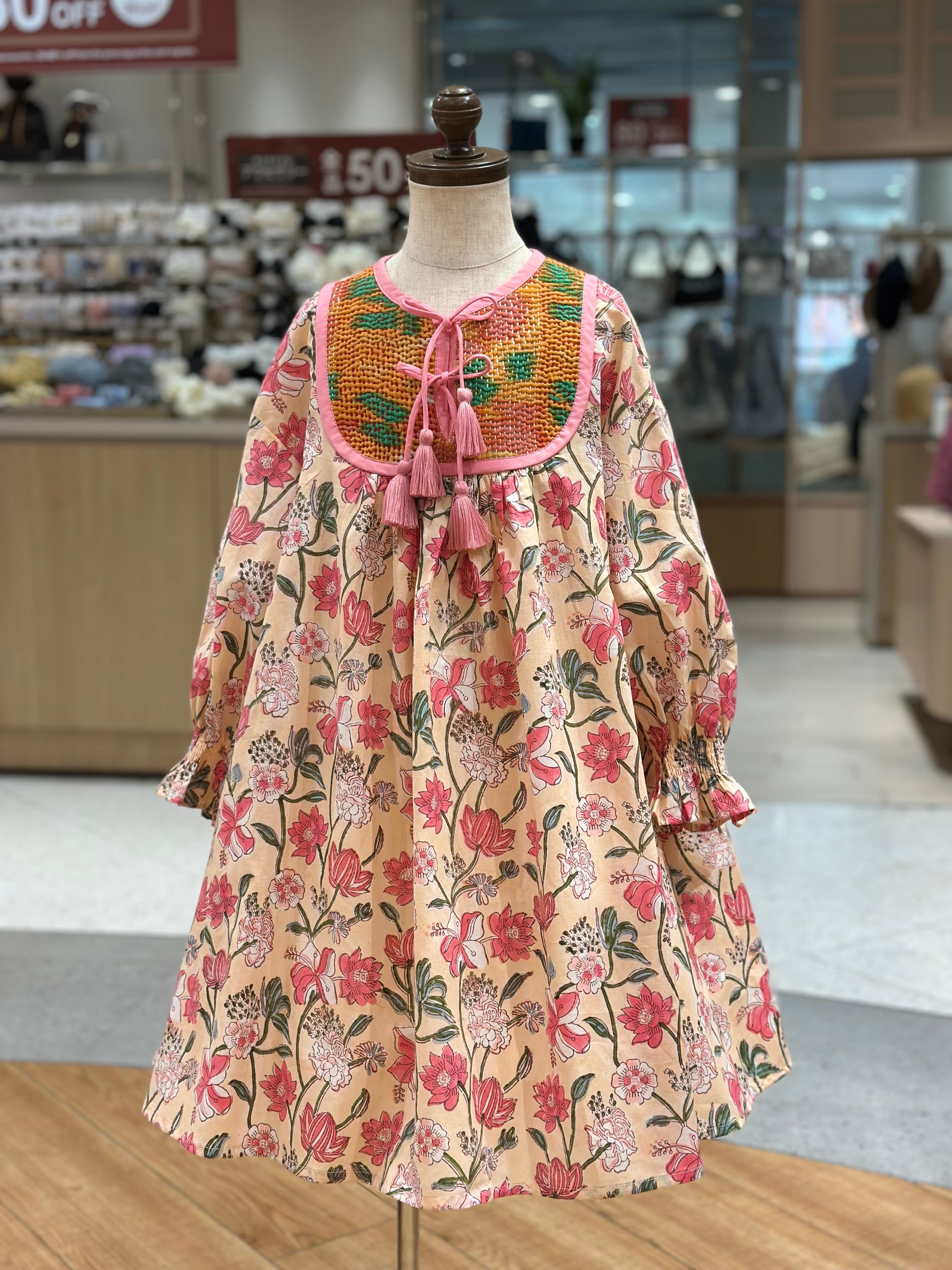 No.IN07|ハンドメイ女の子一点物インド綿カンタキルトワンピース