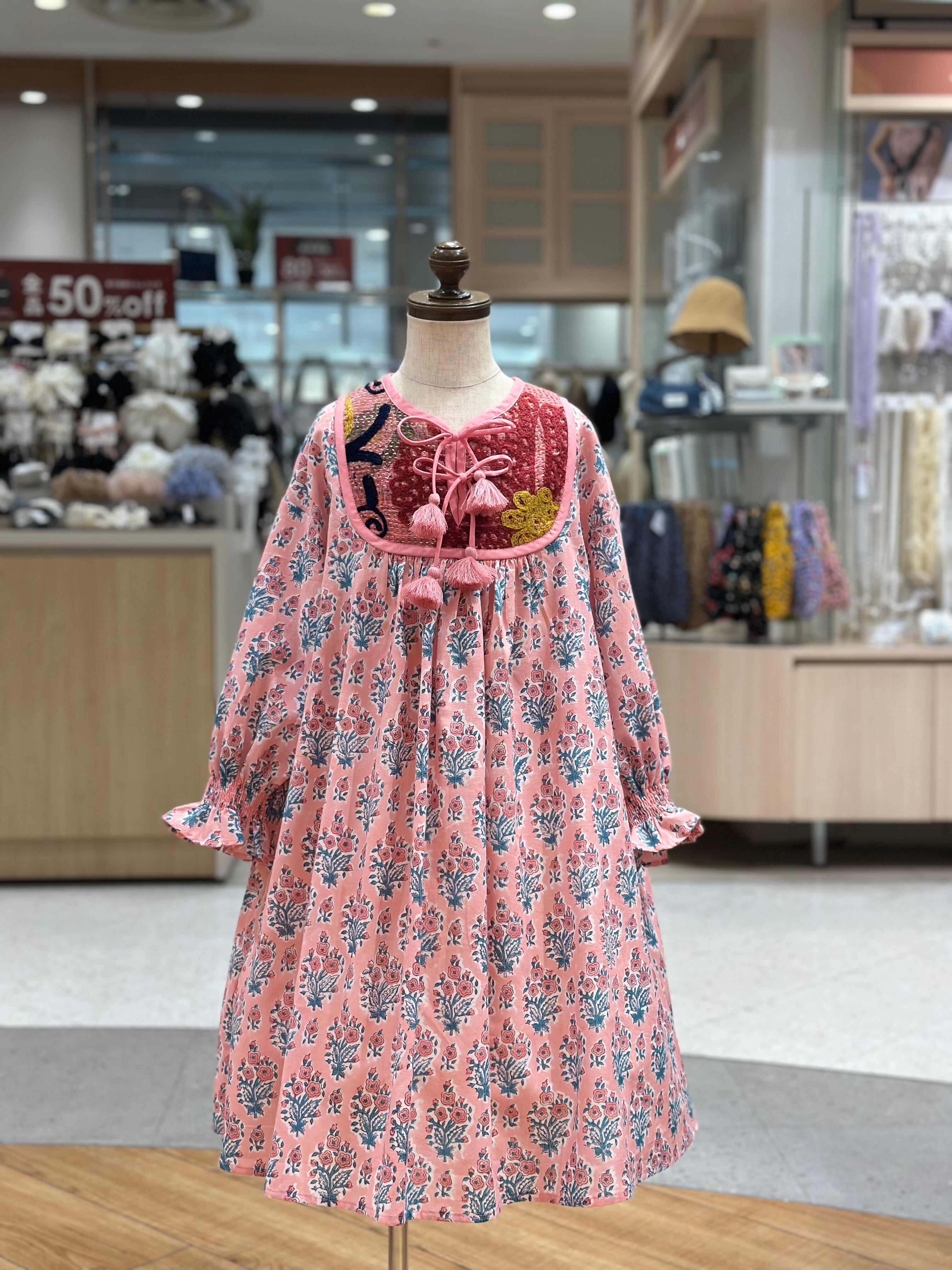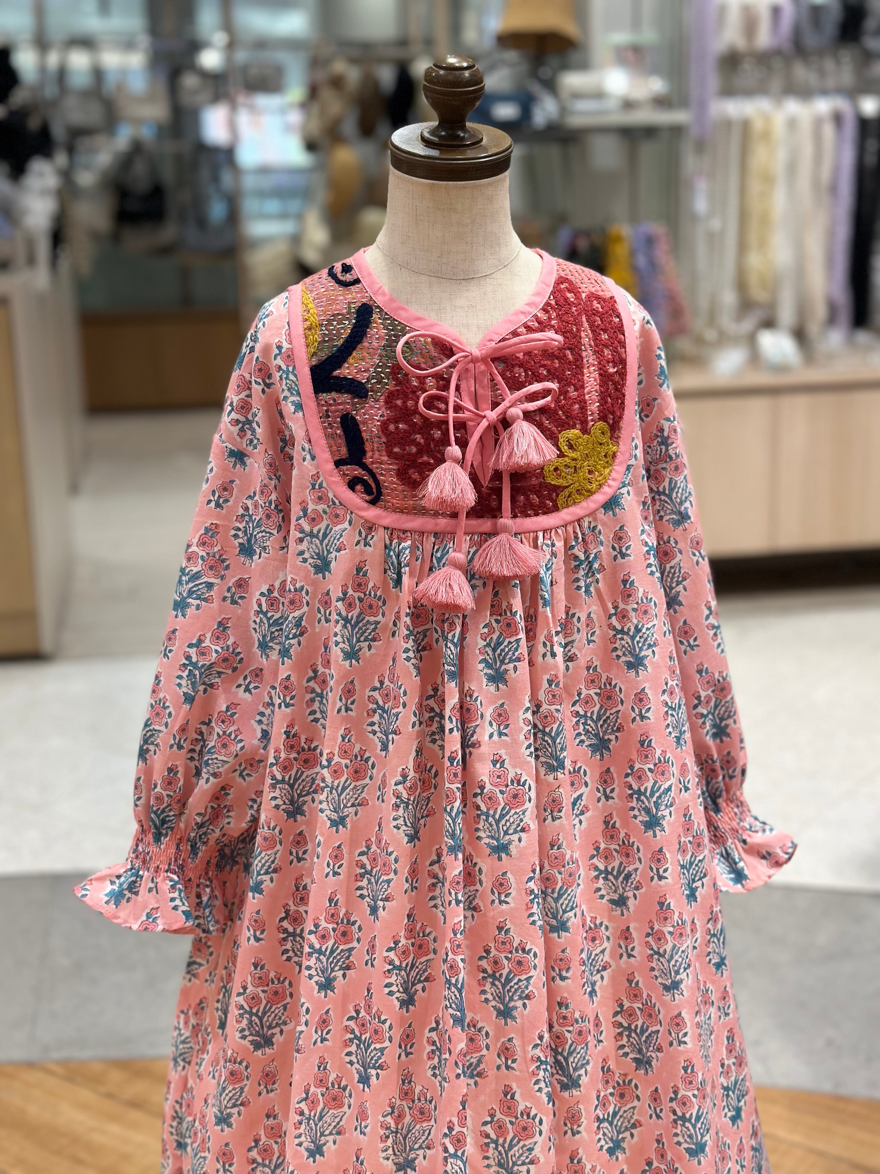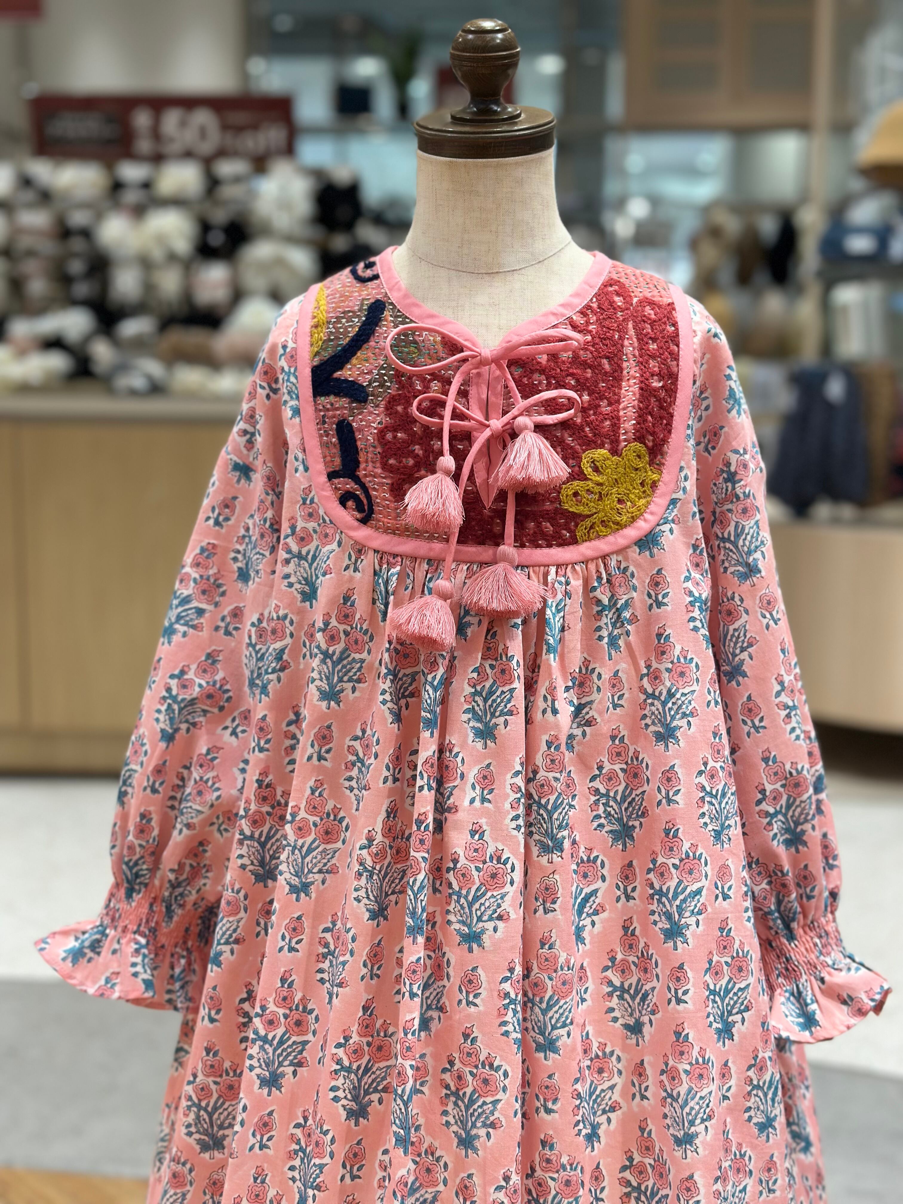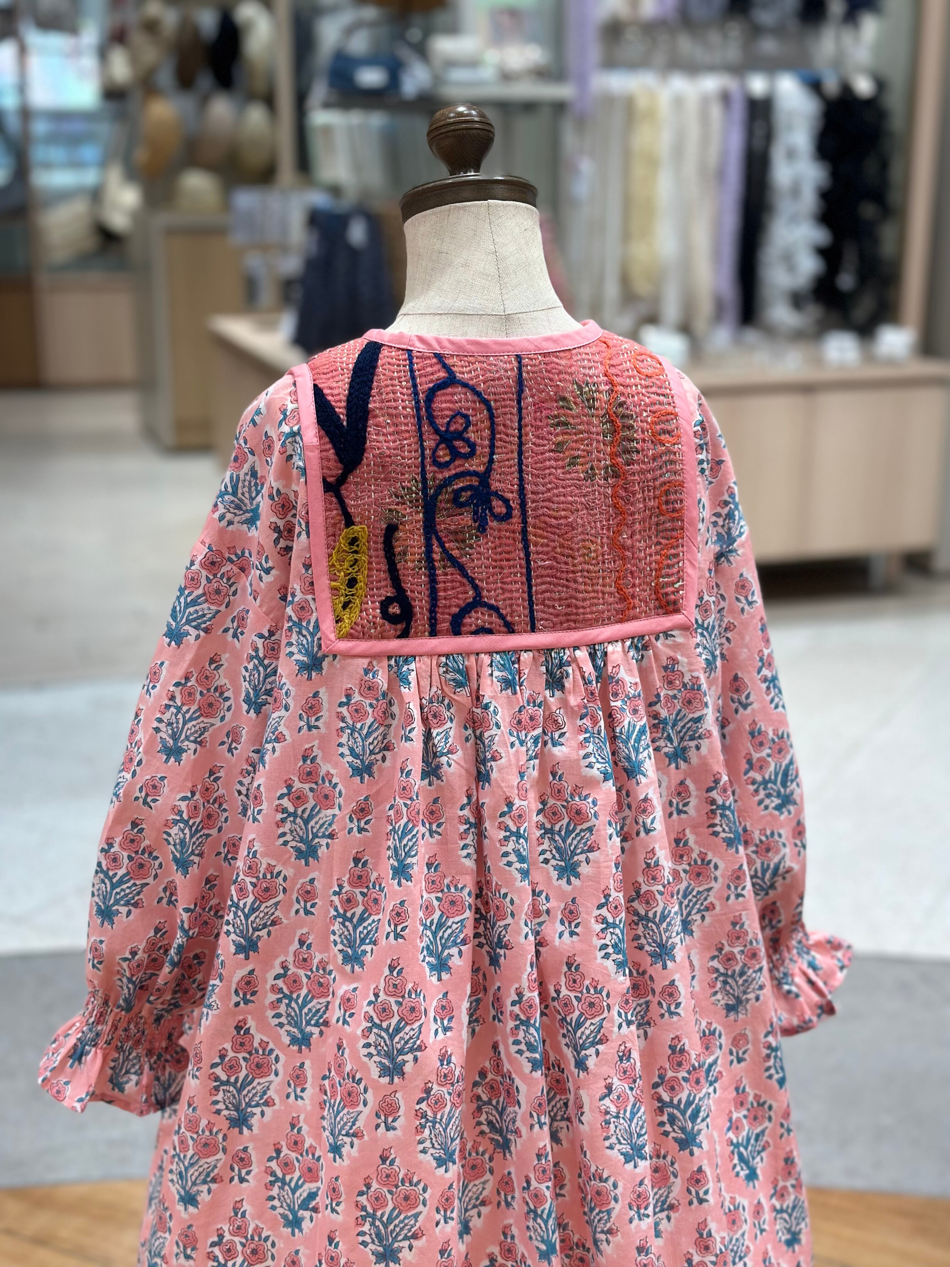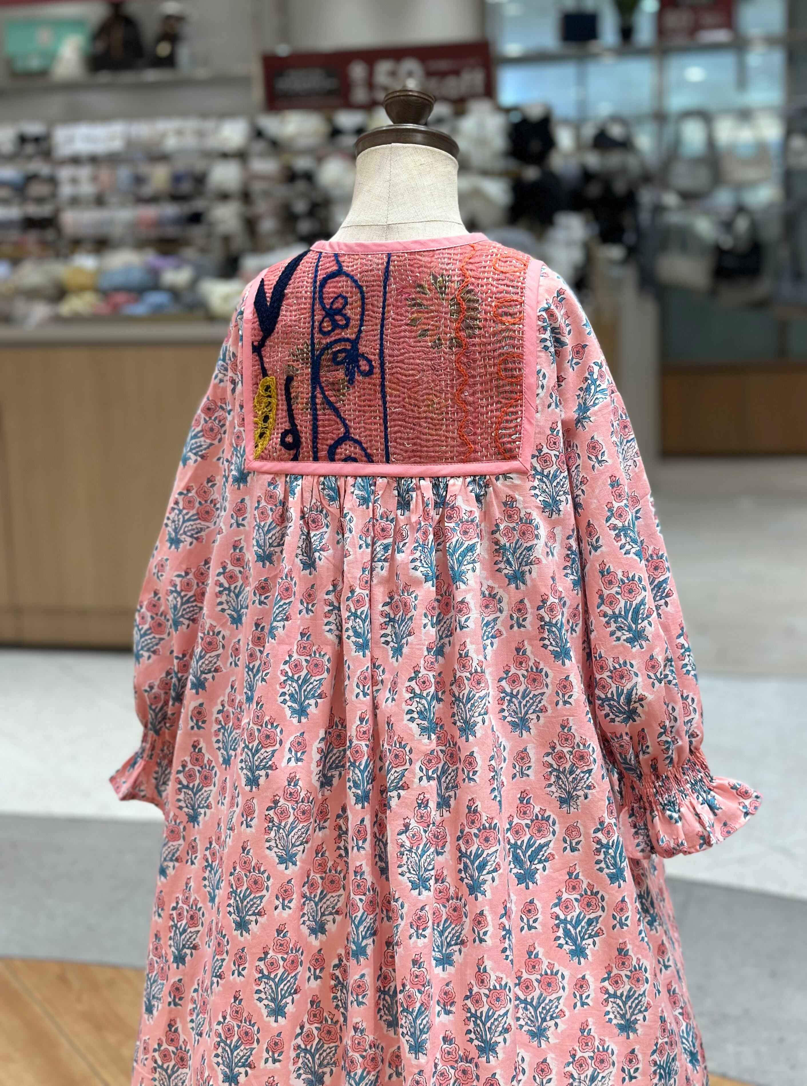 No.IN08|ハンドメイ女の子一点物インド綿カンタキルトワンピース