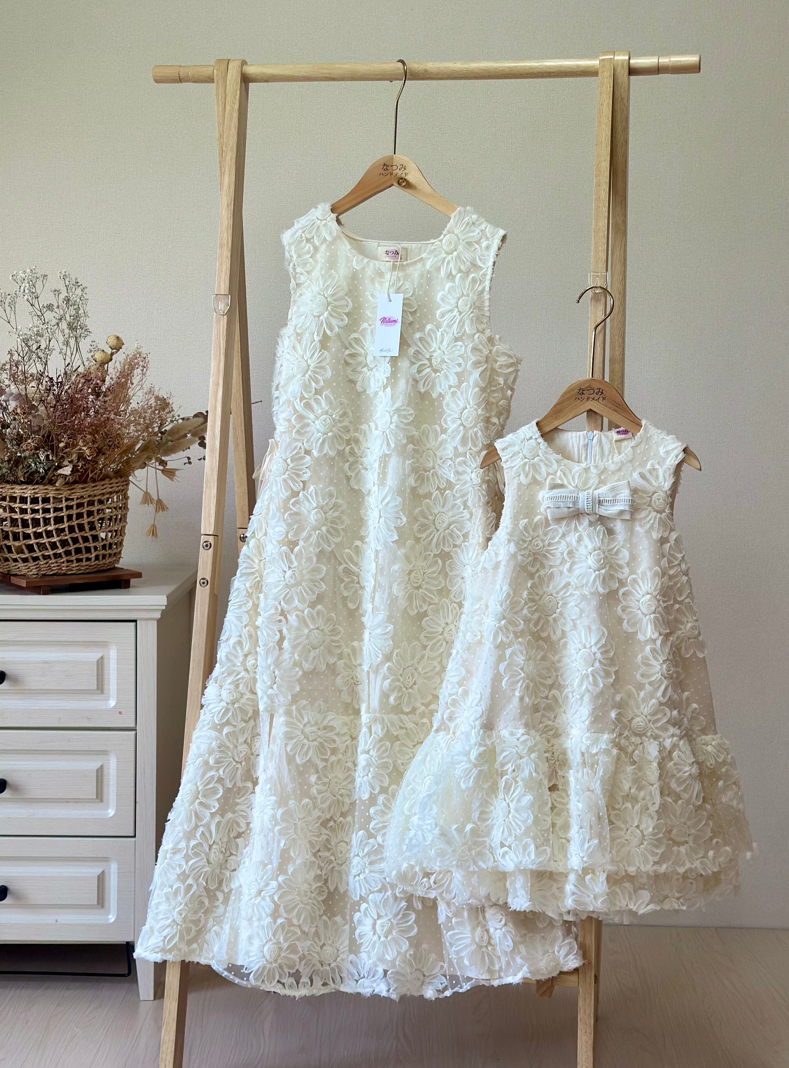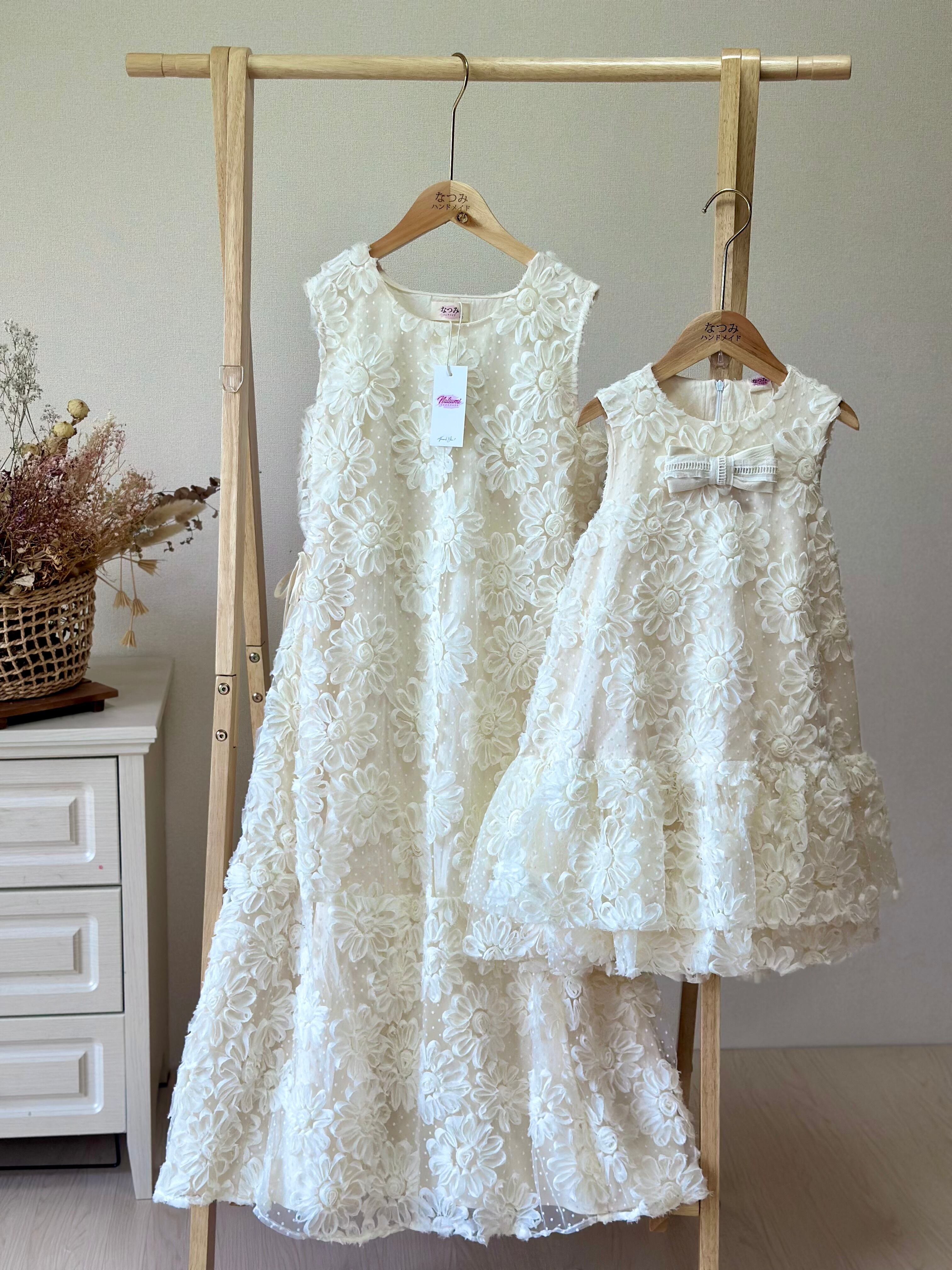 大人用はすっきりとしたロングシルエット、子供用はふんわり広がる可愛らしいデザインで、それぞれの魅力を引き立てます。