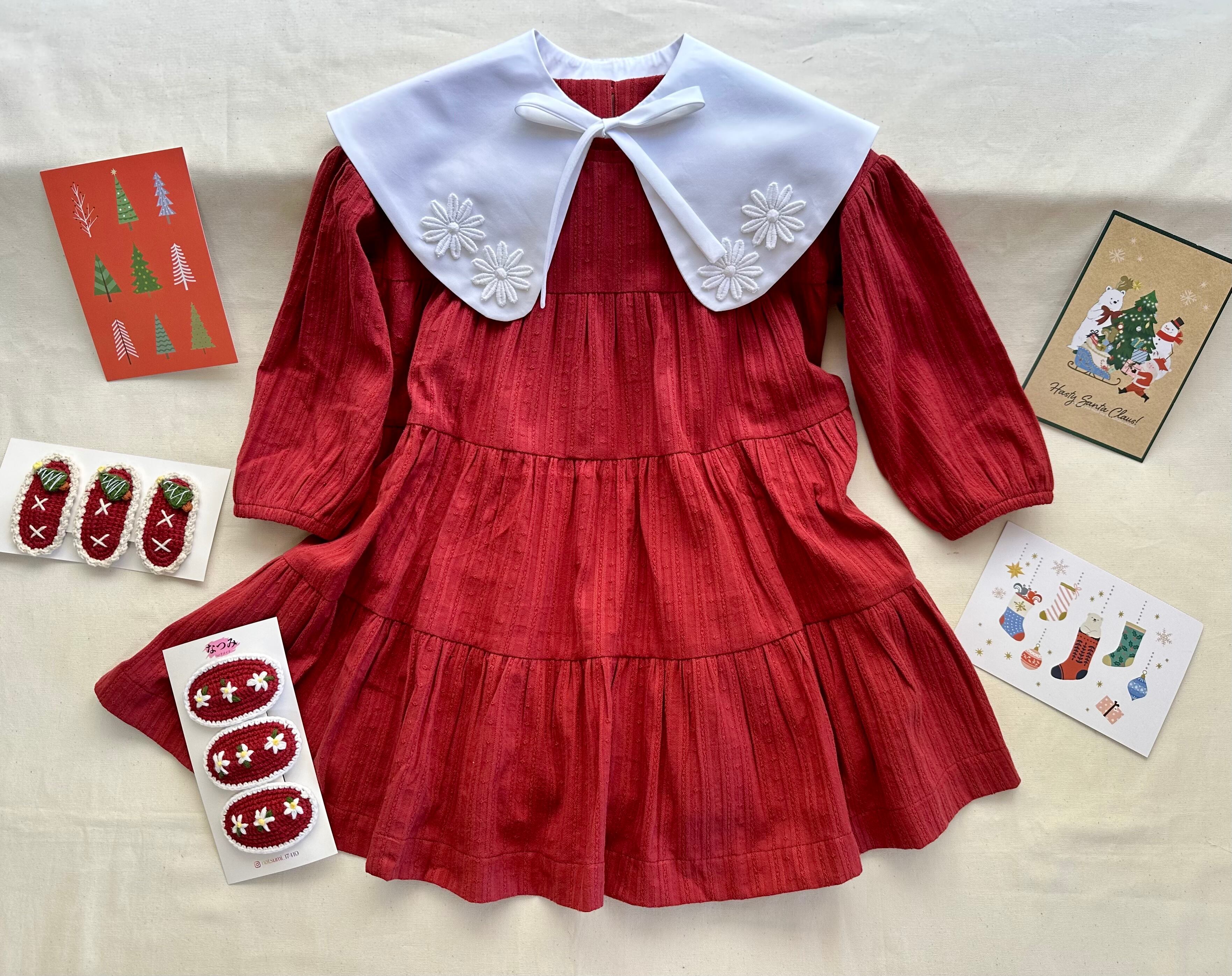 No.V54ハンドメイド クリスマス 女の子可愛いワンピース脱着可能な襟
