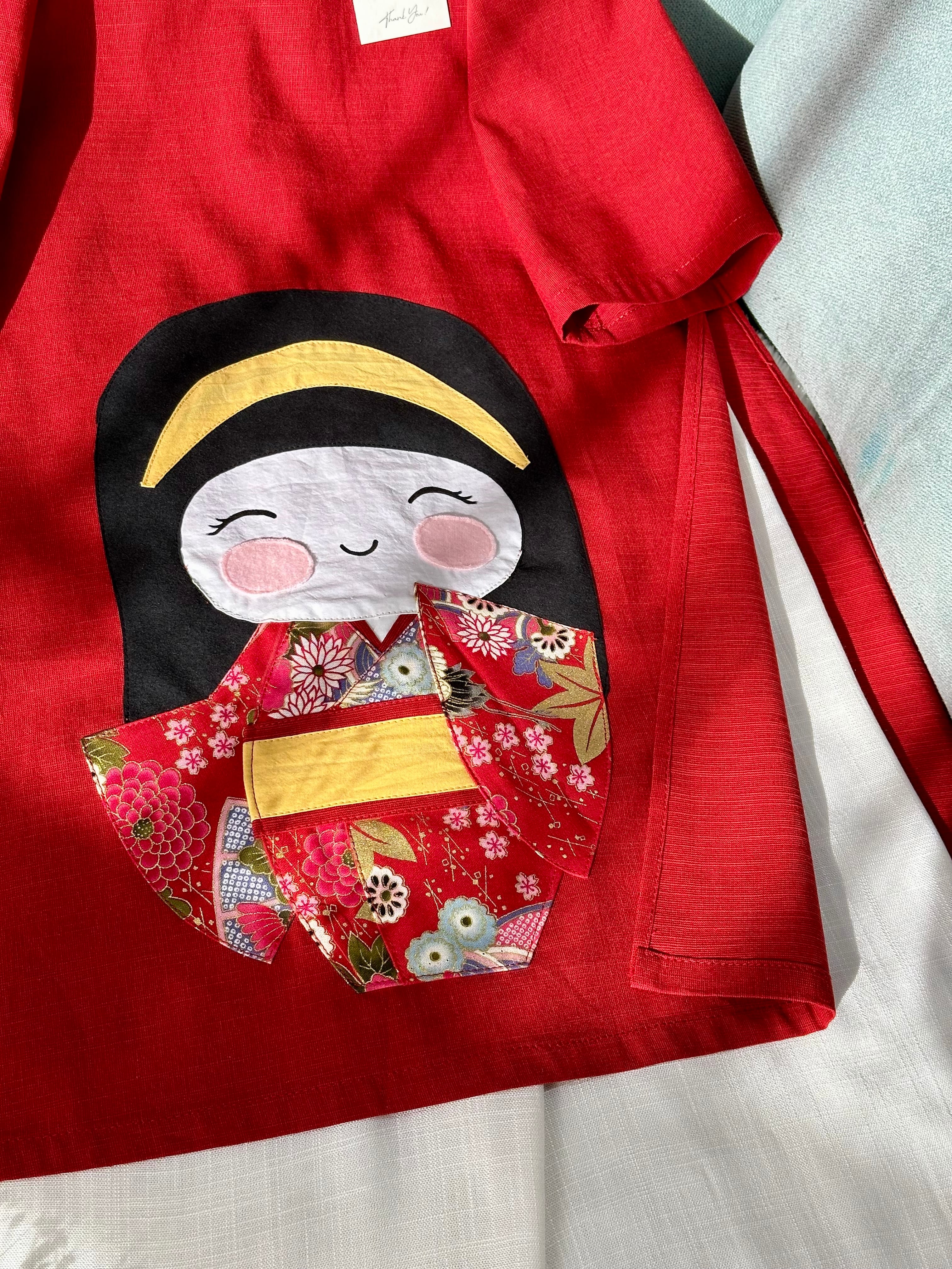 こちらの子供用アオザイは、普段着としても楽しめるように、ワンピースのような可愛らしいデザインに仕上げました。