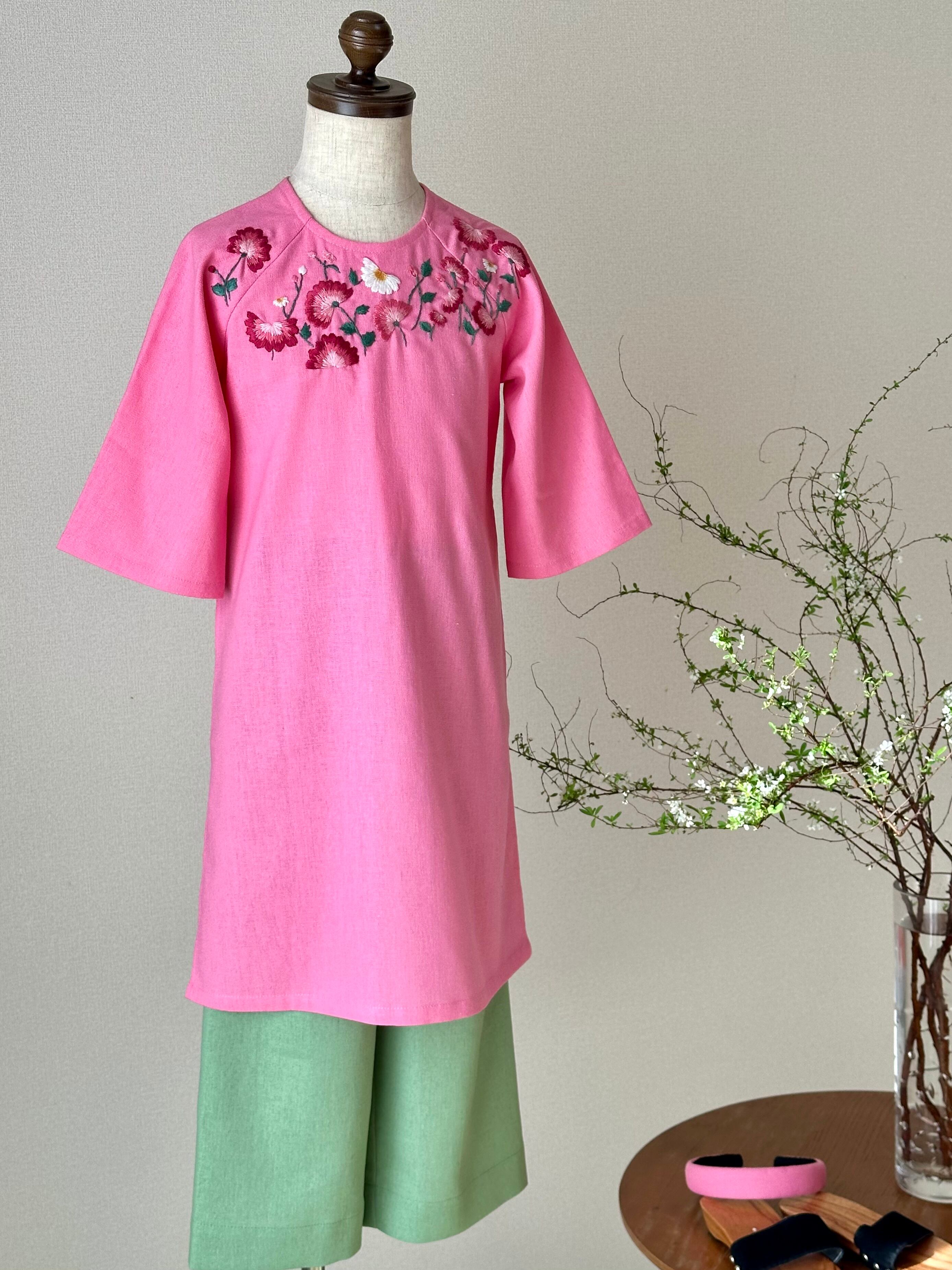No.AD31キッズ ベビー ベトナム可愛い手刺繍アオザイ セット