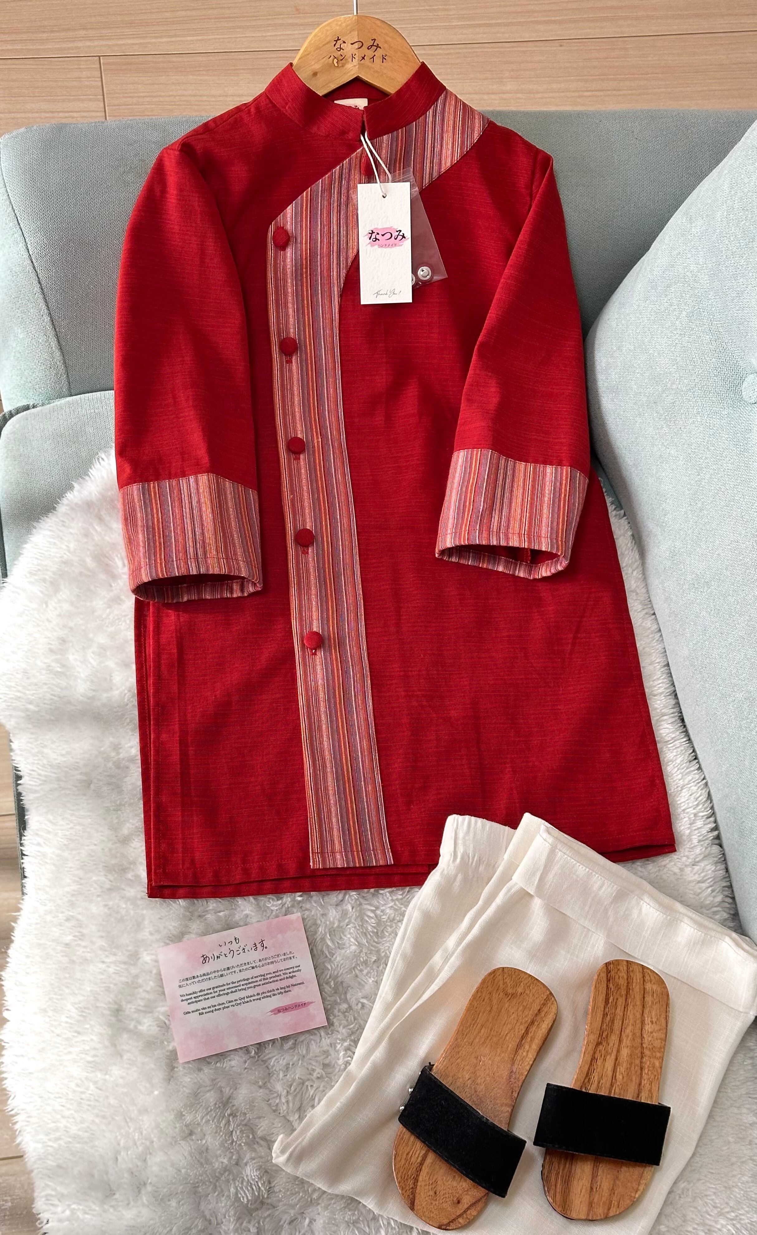 こちらの子供用アオザイは、普段着としても楽しめるように、ワンピースのような可愛らしいデザインに仕上げました。