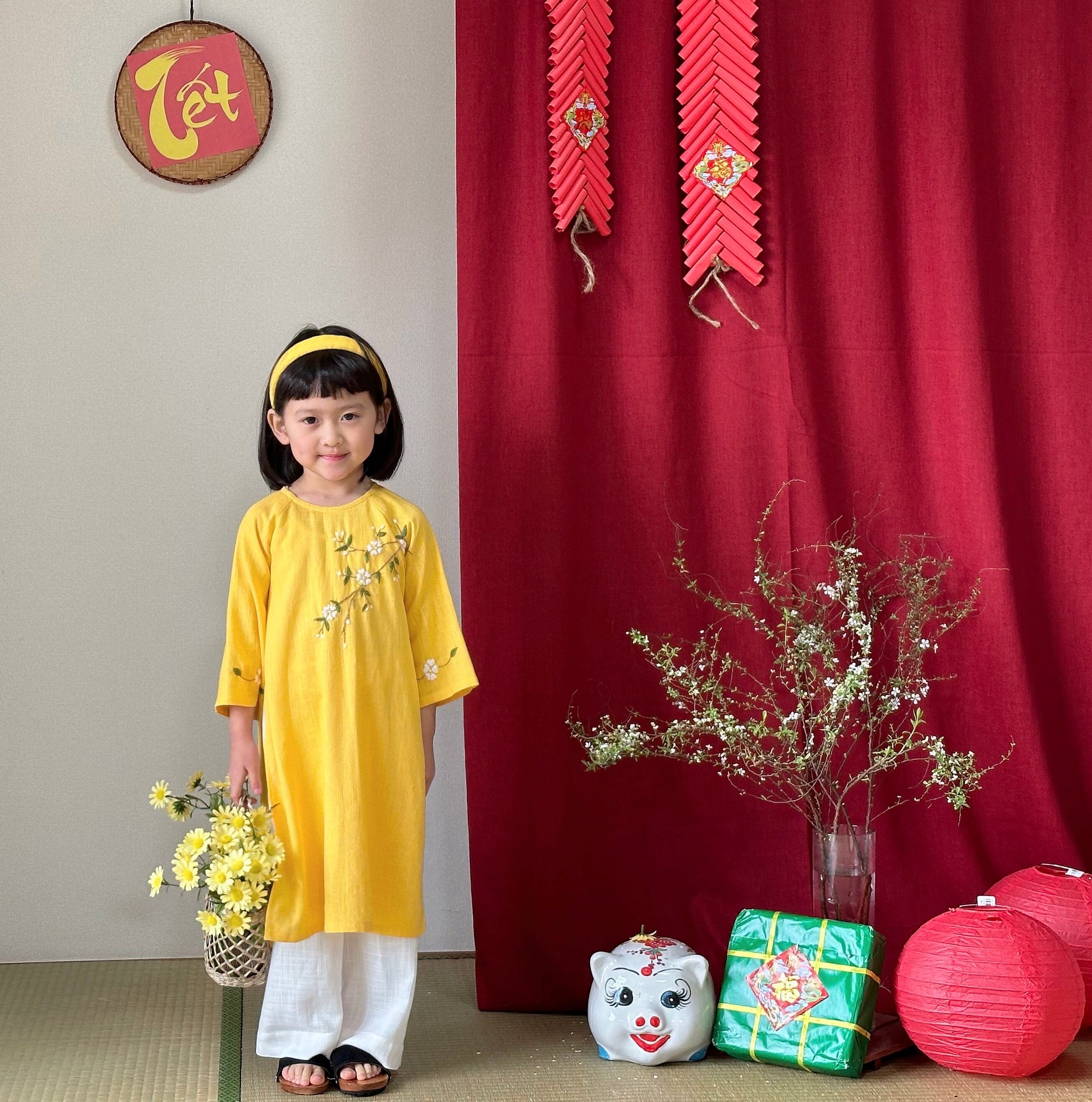 No.AD26キッズ ベビー ベトナム可愛い手刺繍アオザイ セット