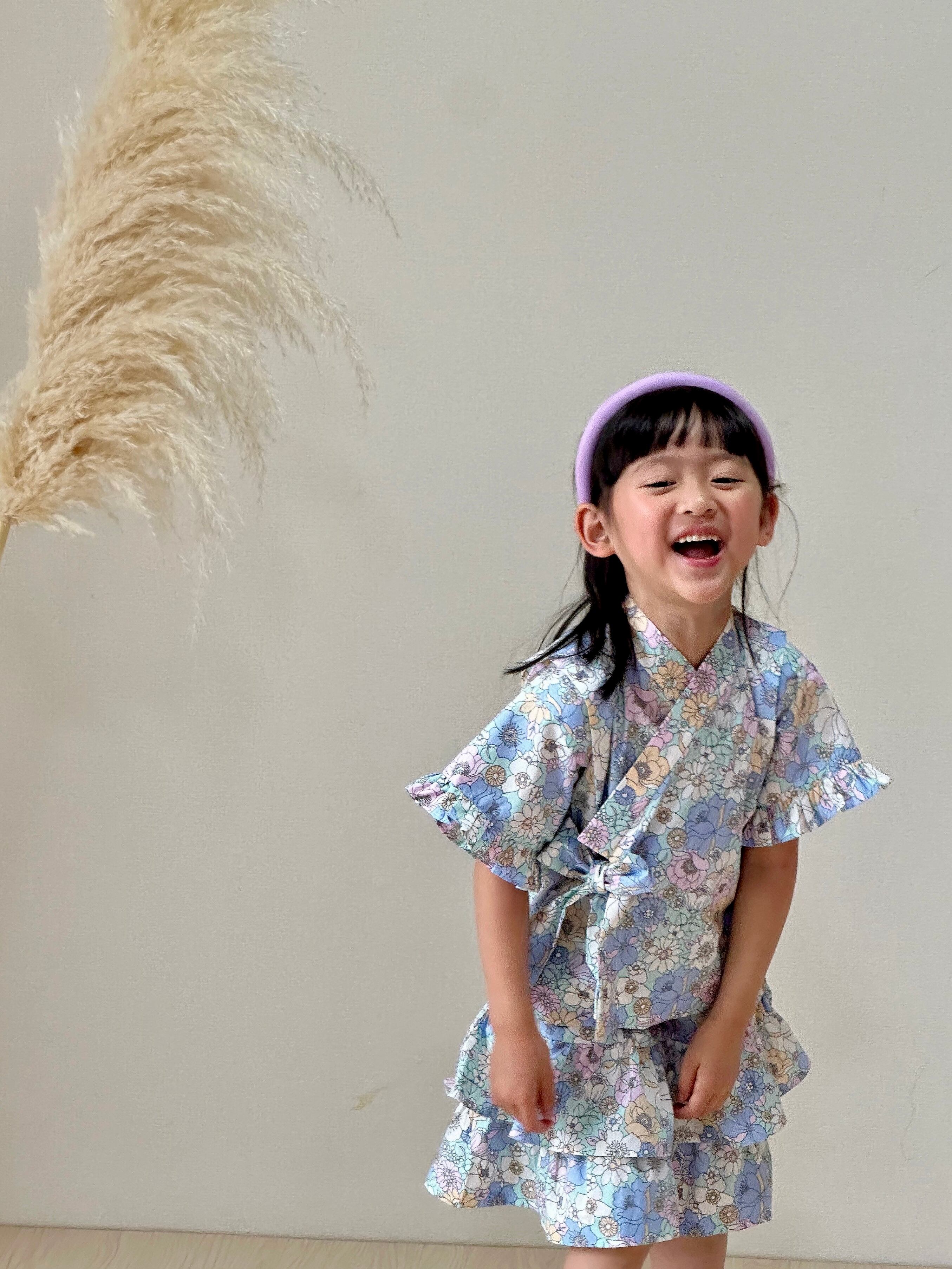 No.JG01 女の子 可愛い 甚平 じんべい キュロットパンツ ヘヤバンド付き