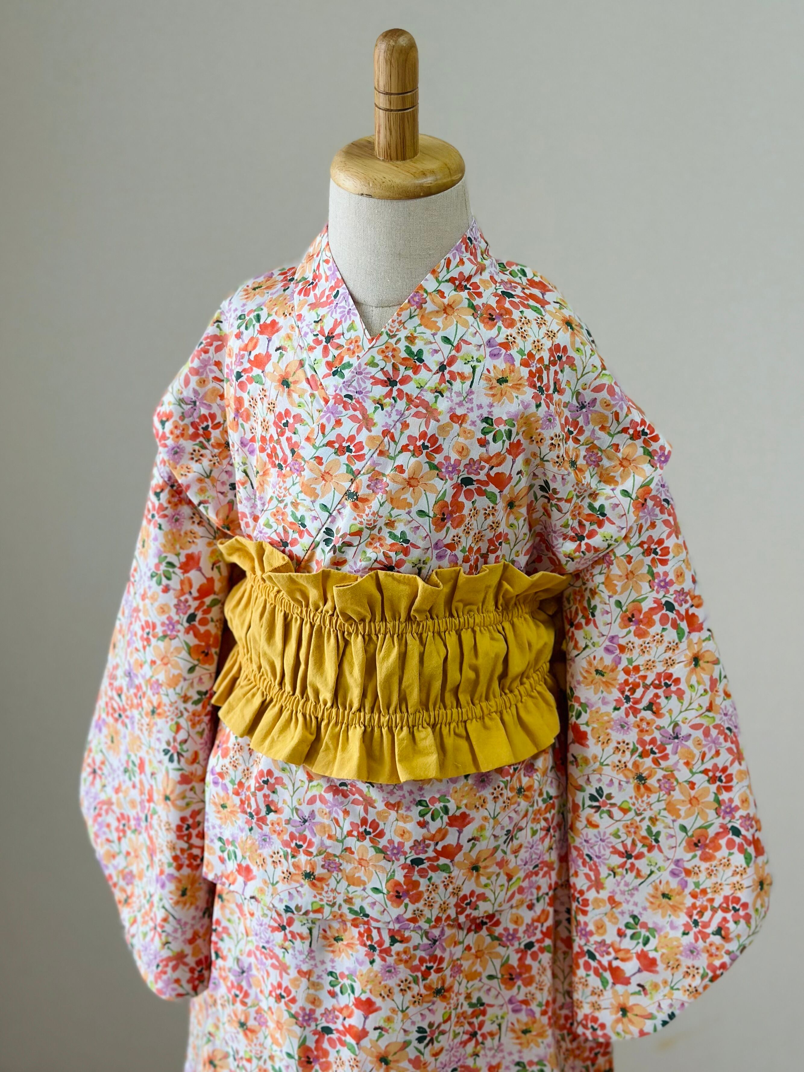 浴衣、帯: コットン100%