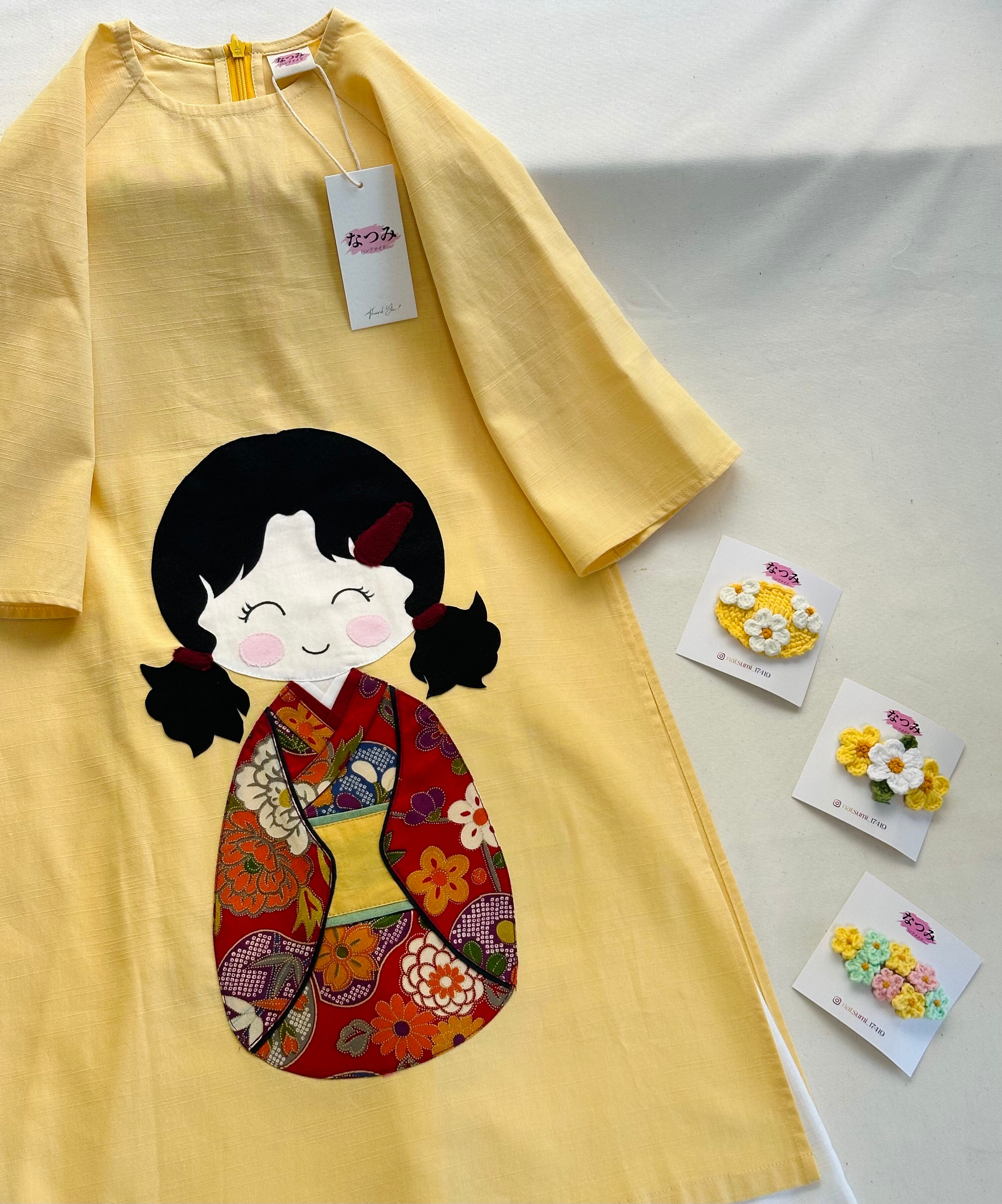 こちらの子供用アオザイは、普段着としても楽しめるように、ワンピースのような可愛らしいデザインに仕上げました。