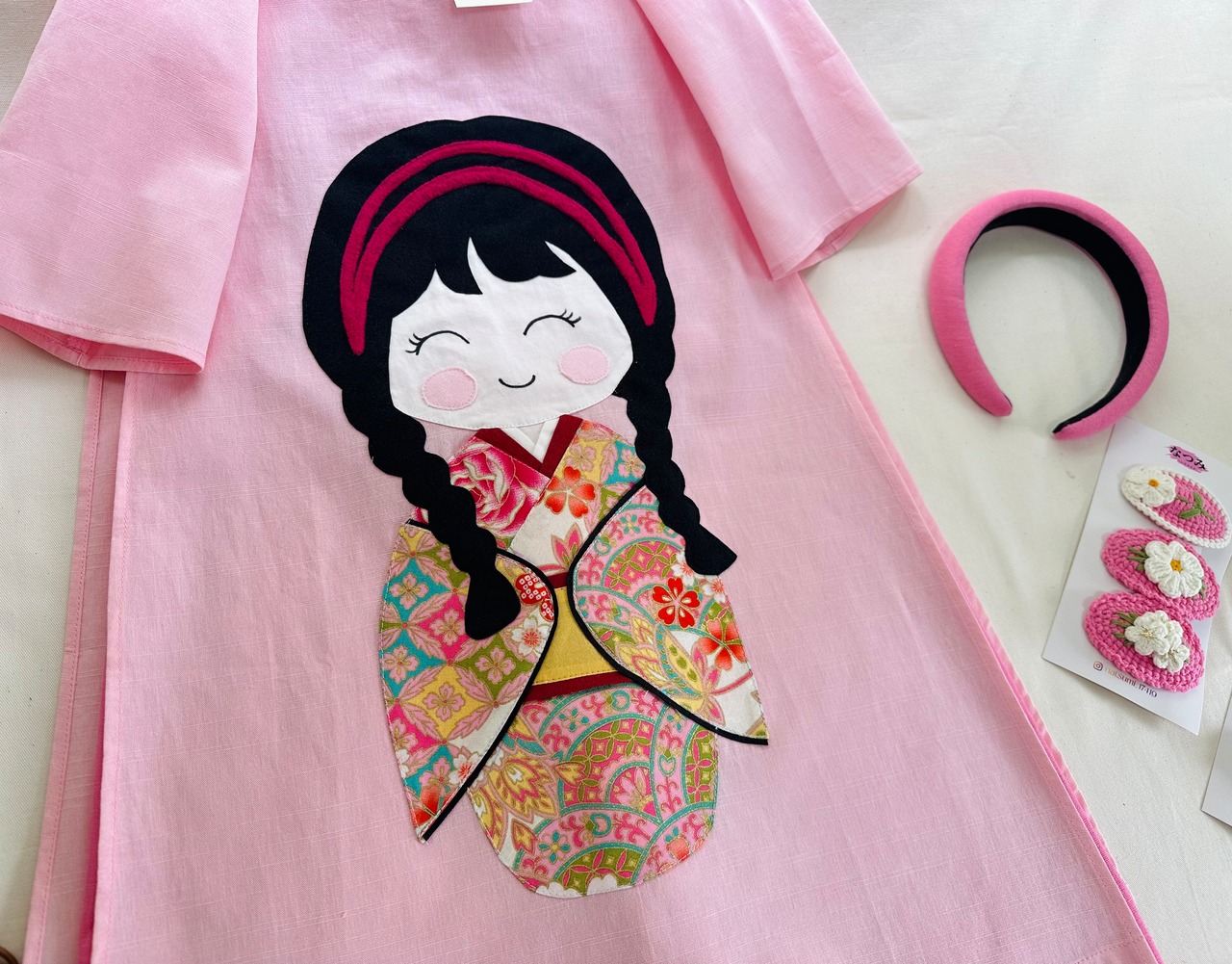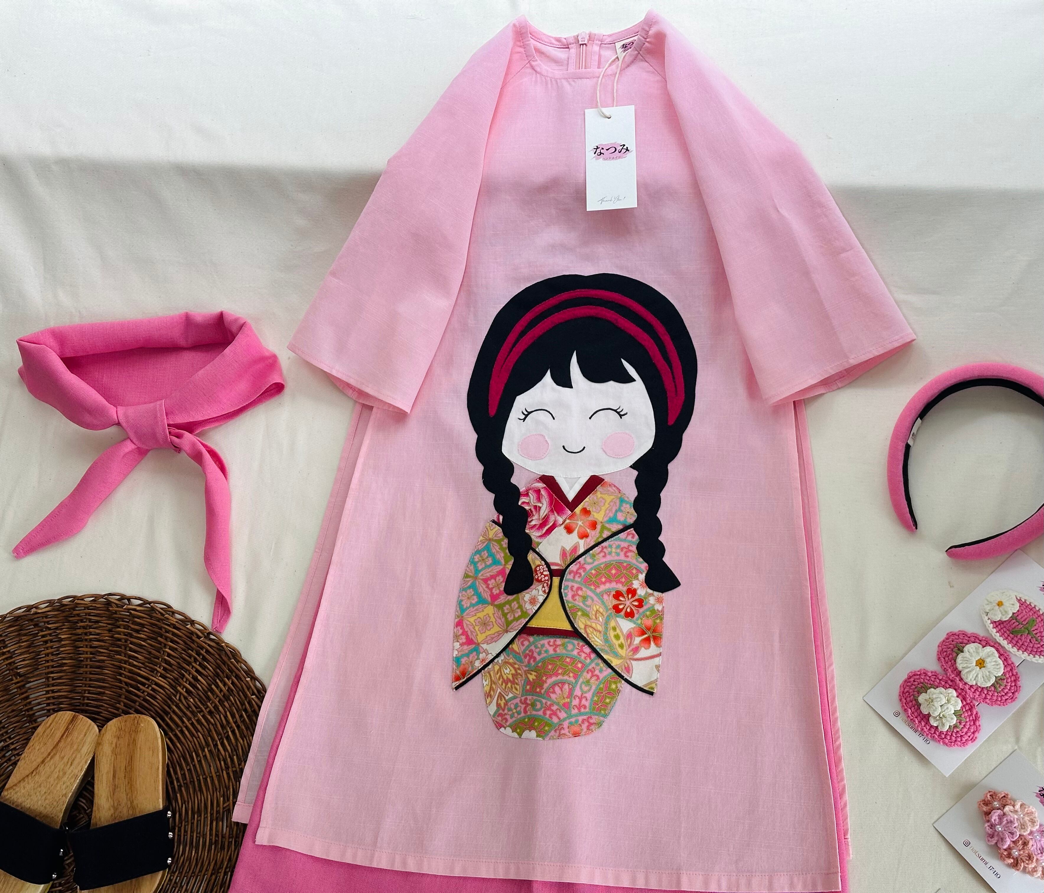 No.BB2504ハンドメイド 女の子リネンベトナムアオザイセット➖可愛いキルト