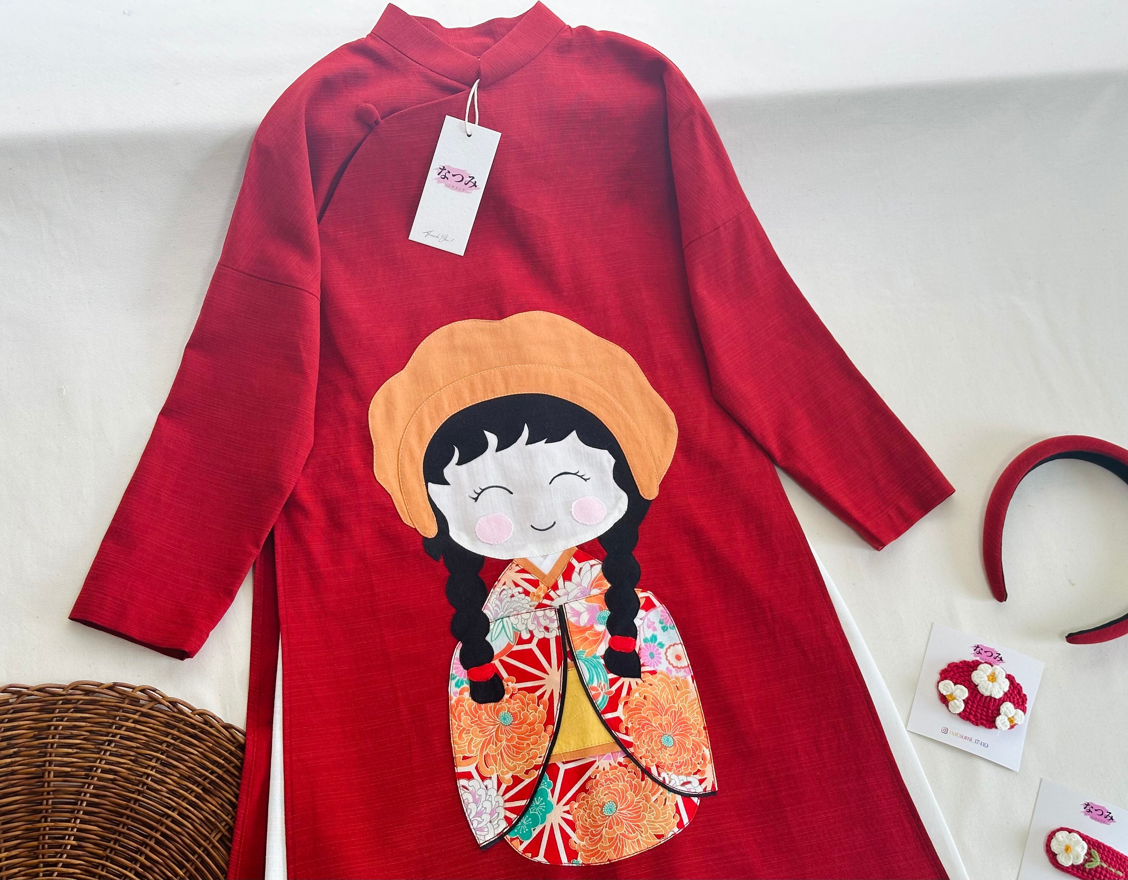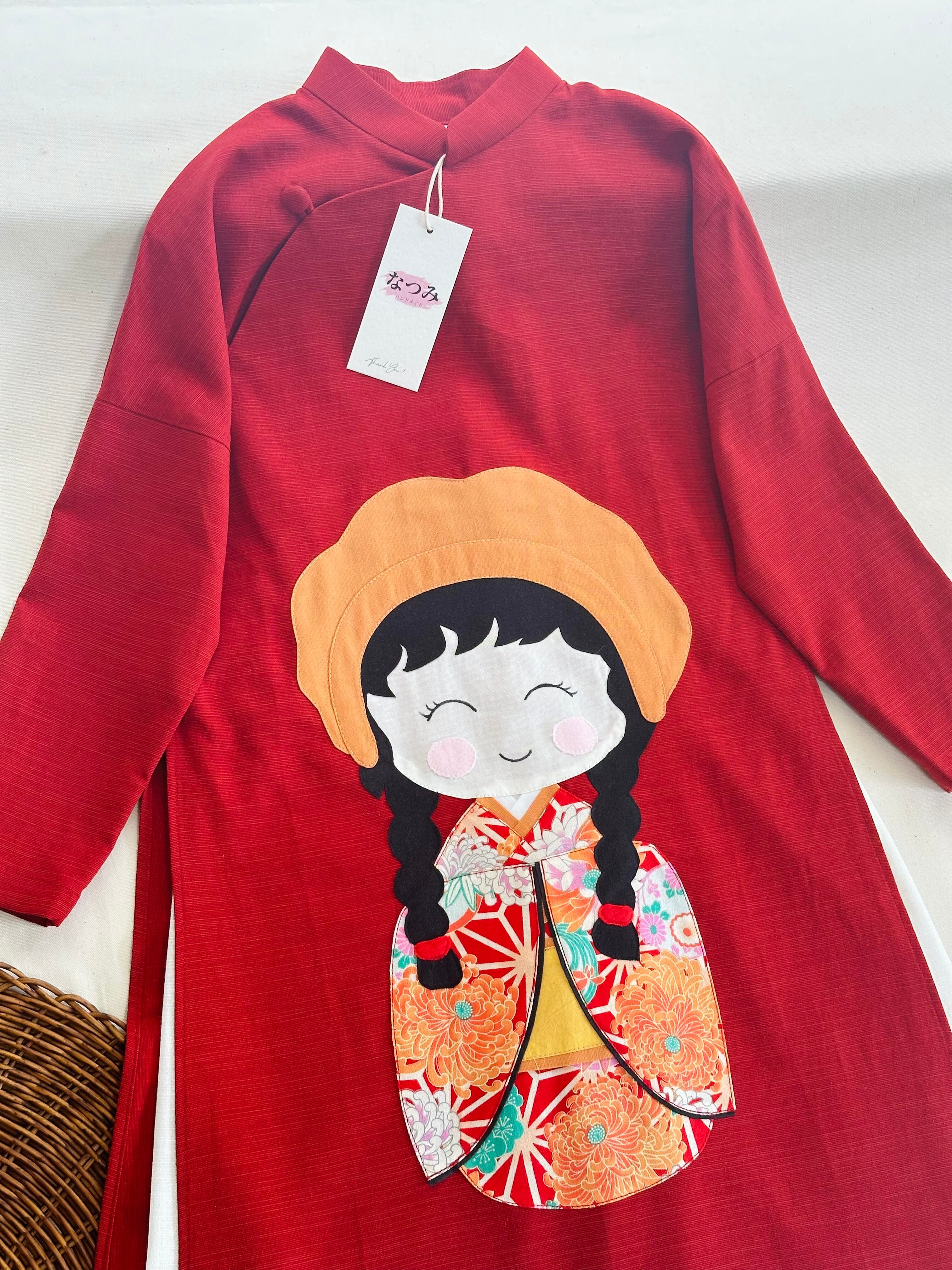 No.BB2511ハンドメイド 女の子リネンベトナムアオザイセット➖可愛いキルト