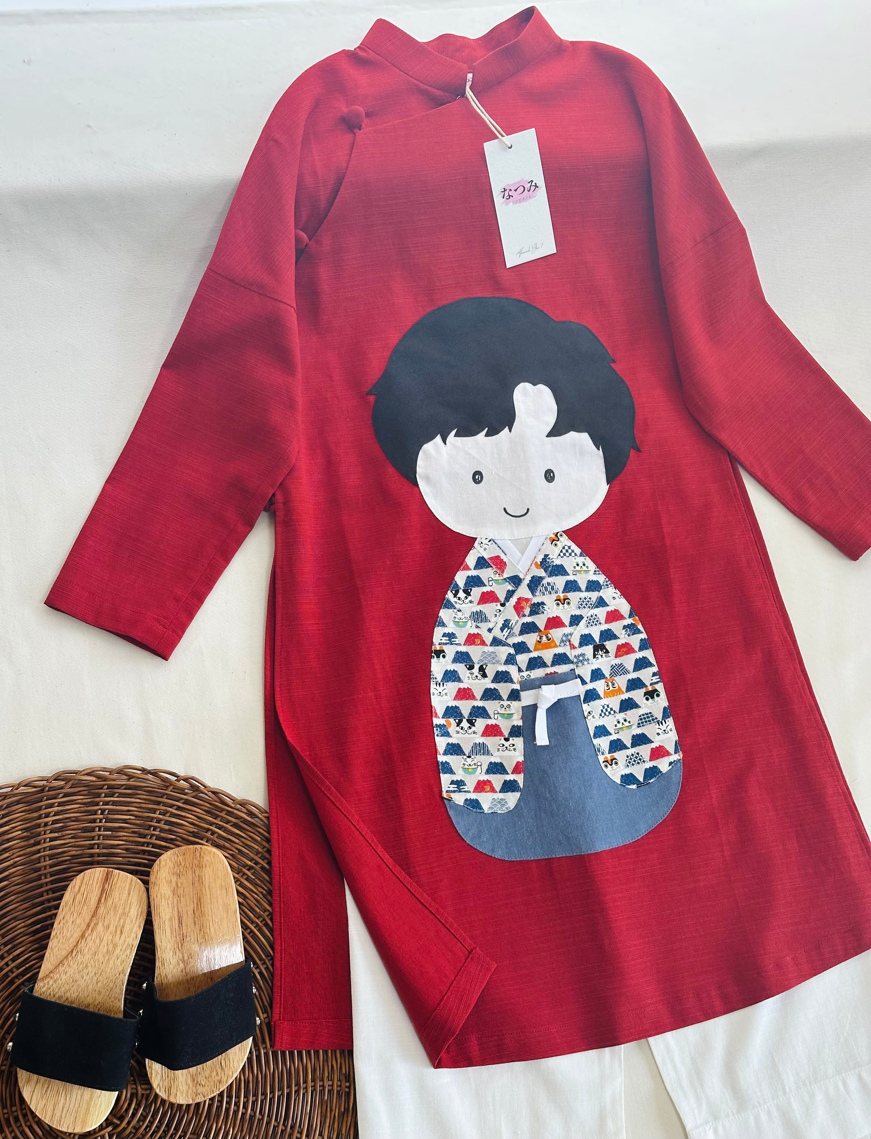 No.BB2512ハンドメイド 男の子リネンベトナムアオザイセット➖可愛いキルト