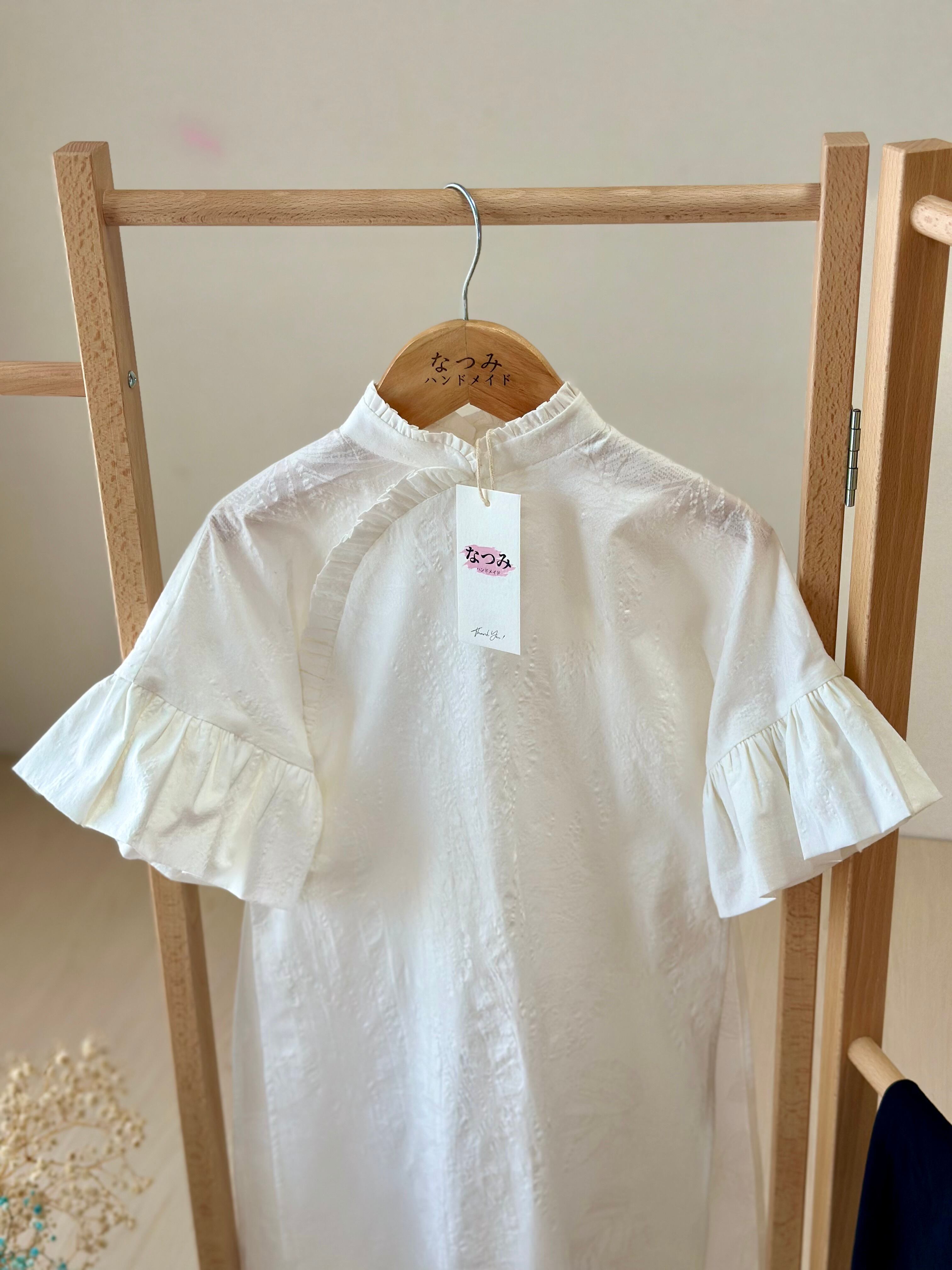 こちらの子供用アオザイは、普段着としても楽しめるように、ワンピースのような可愛らしいデザインに仕上げました。