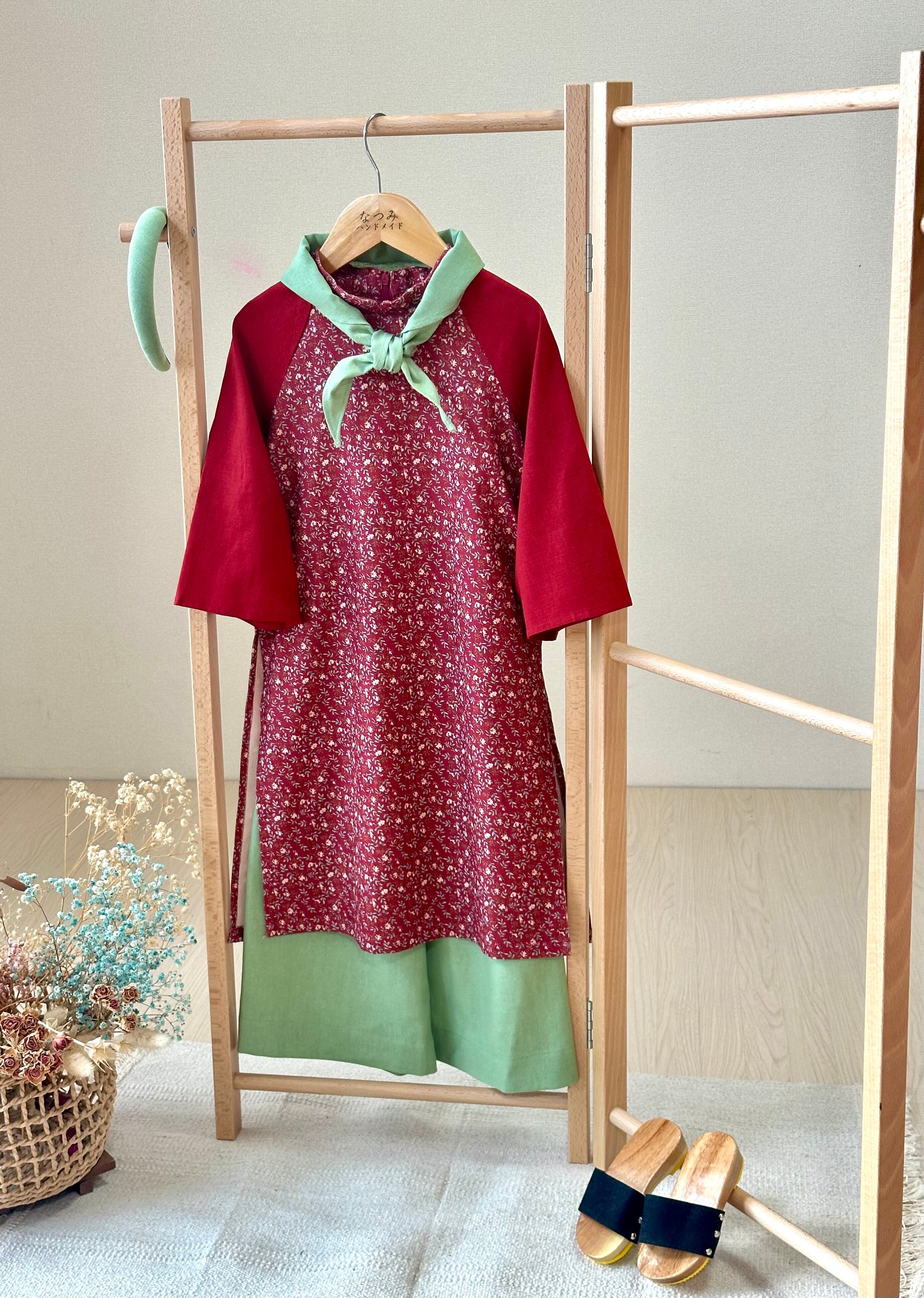 こちらの子供用アオザイは、普段着としても楽しめるように、ワンピースのような可愛らしいデザインに仕上げました。