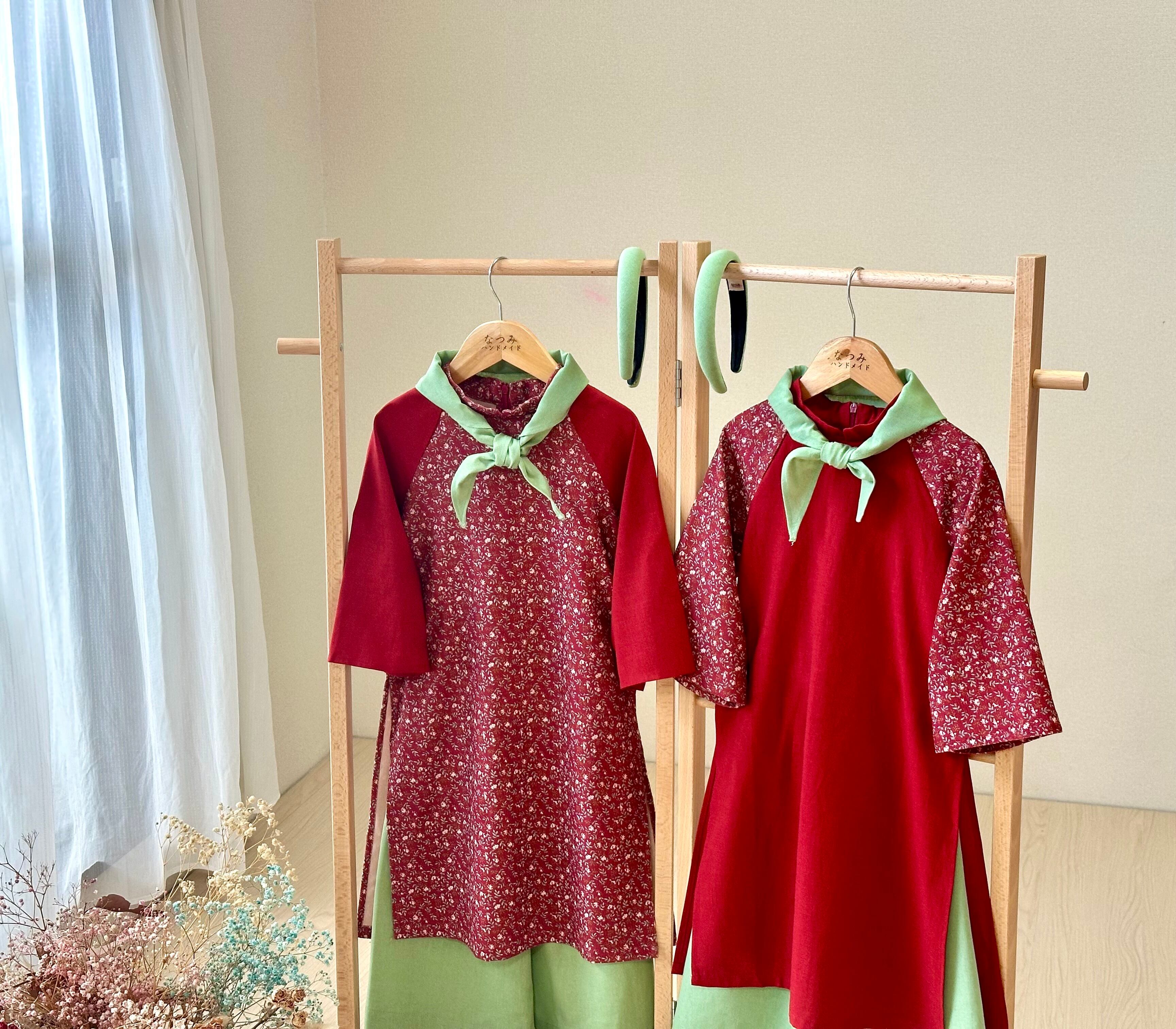 No.ADT2506ハンドメイド女の子ベトナム可愛いアオザイセットヘヤバンド付き
