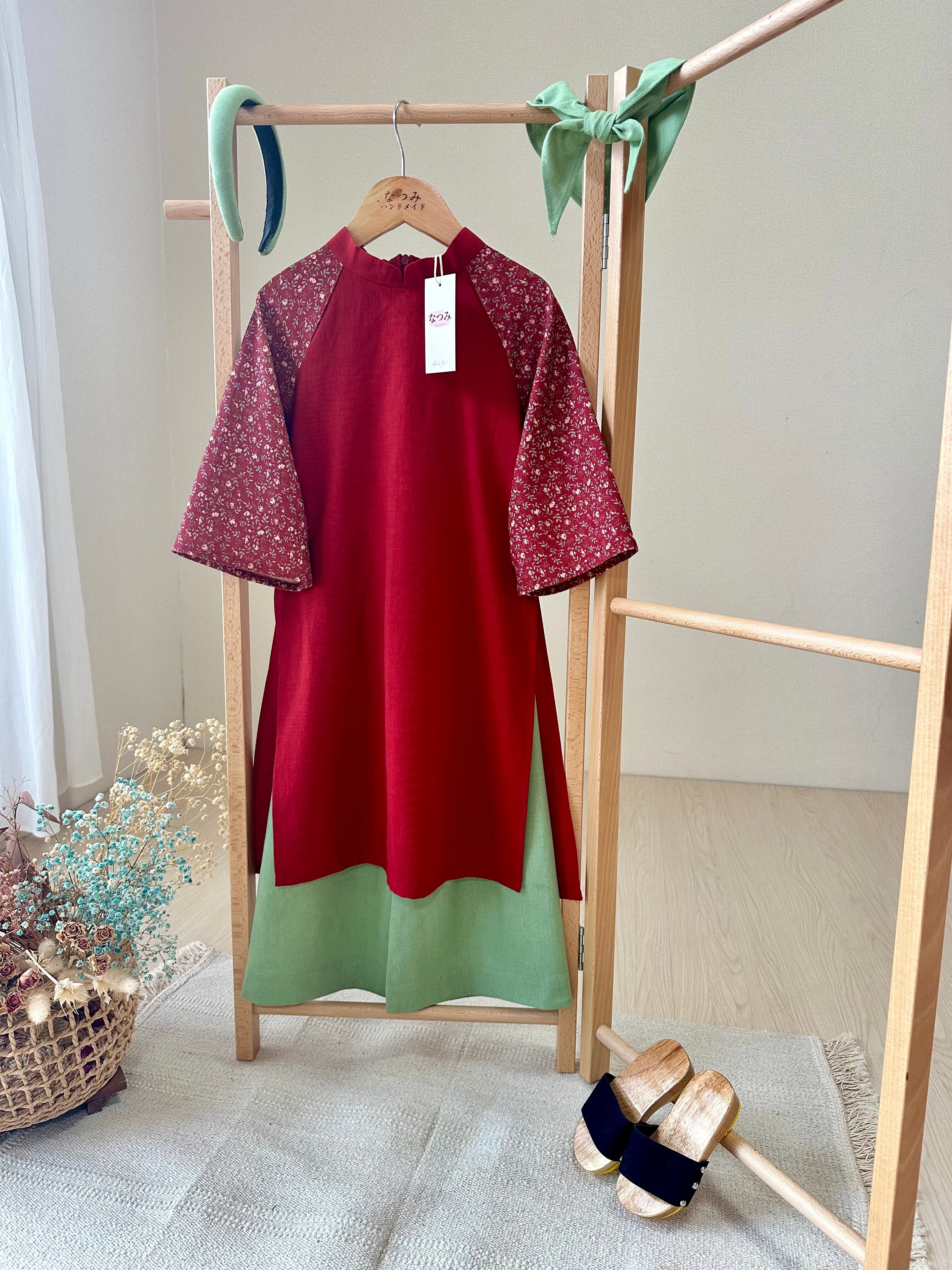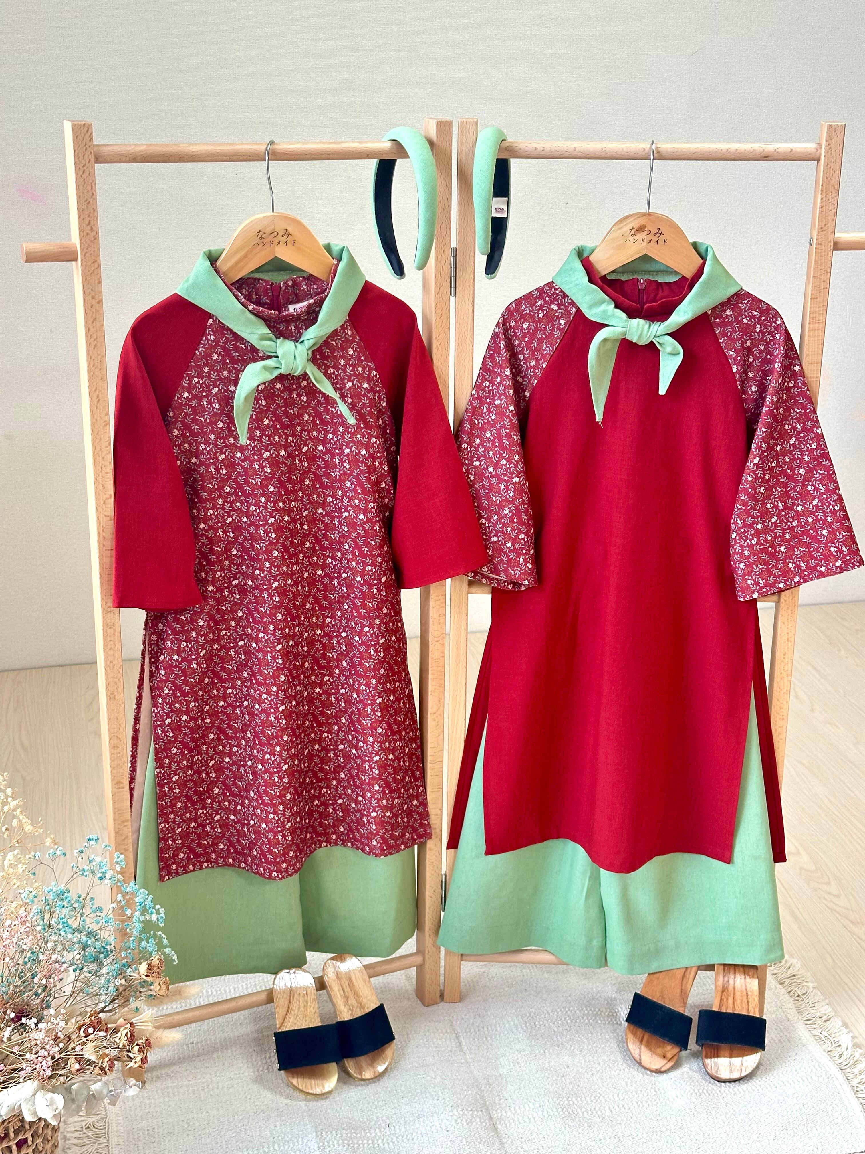こちらの子供用アオザイは、普段着としても楽しめるように、ワンピースのような可愛らしいデザインに仕上げました。