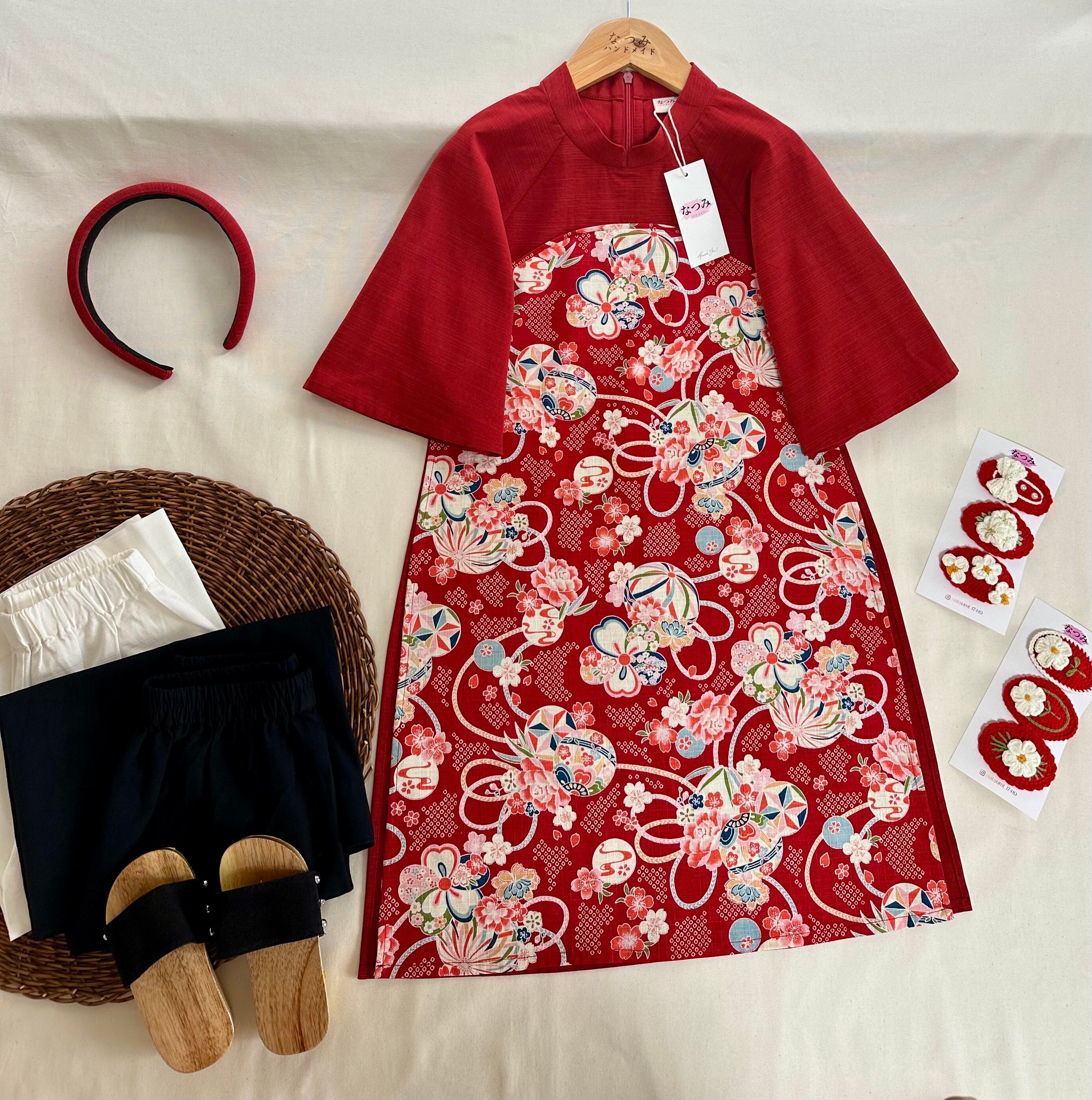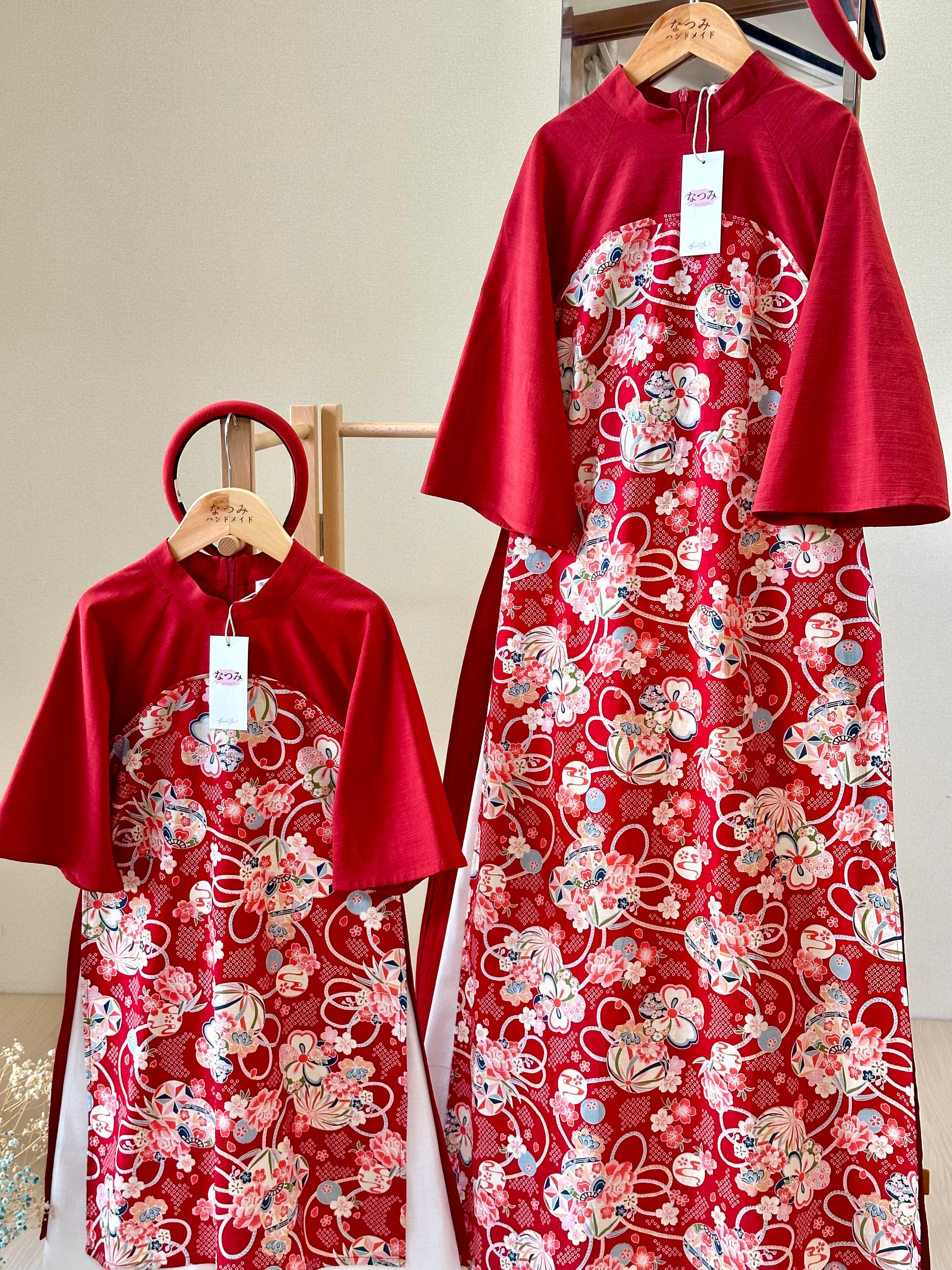 こちらの子供用アオザイは、普段着としても楽しめるように、ワンピースのような可愛らしいデザインに仕上げました。