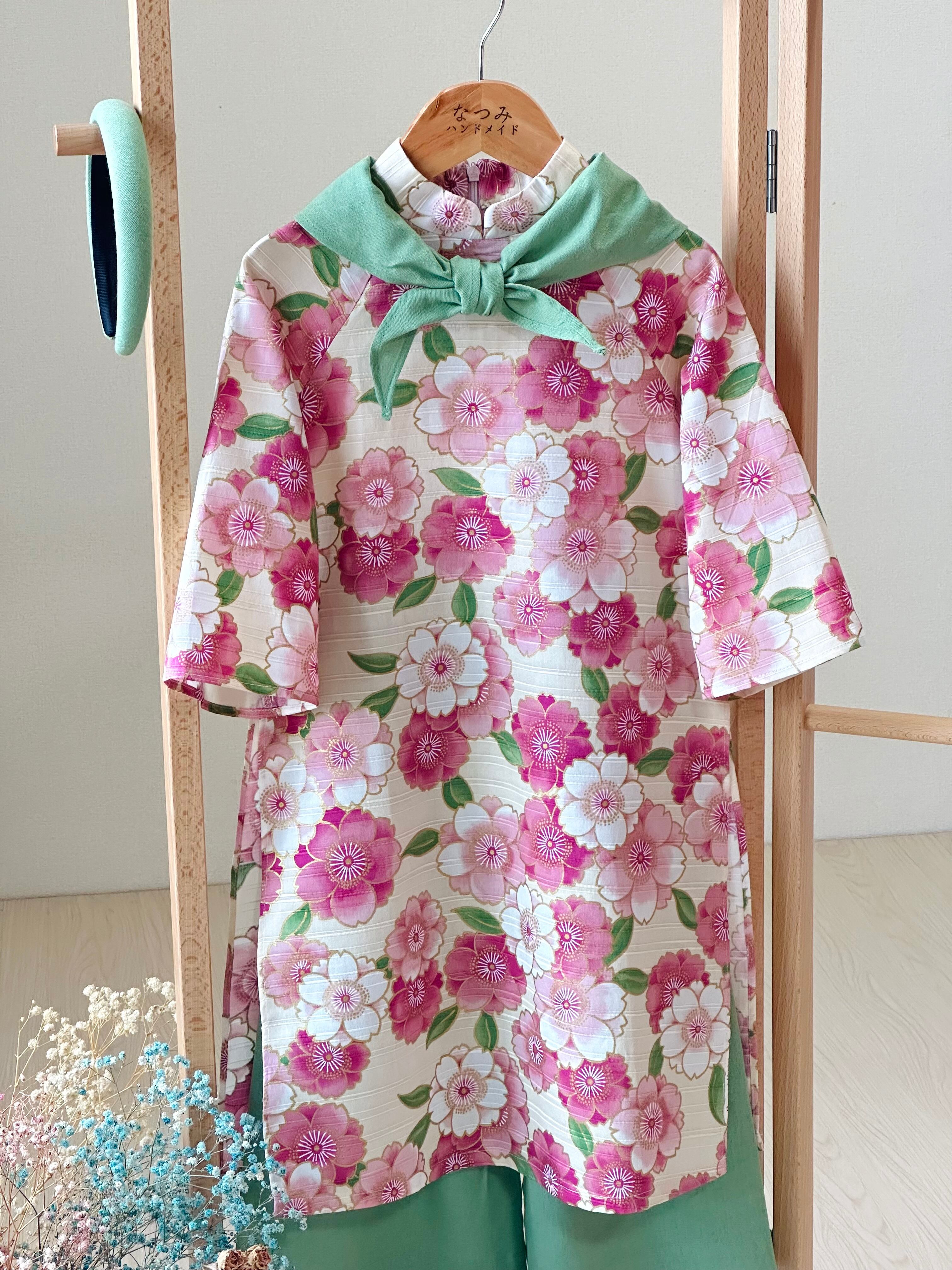 こちらの子供用アオザイは、普段着としても楽しめるように、ワンピースのような可愛らしいデザインに仕上げました。