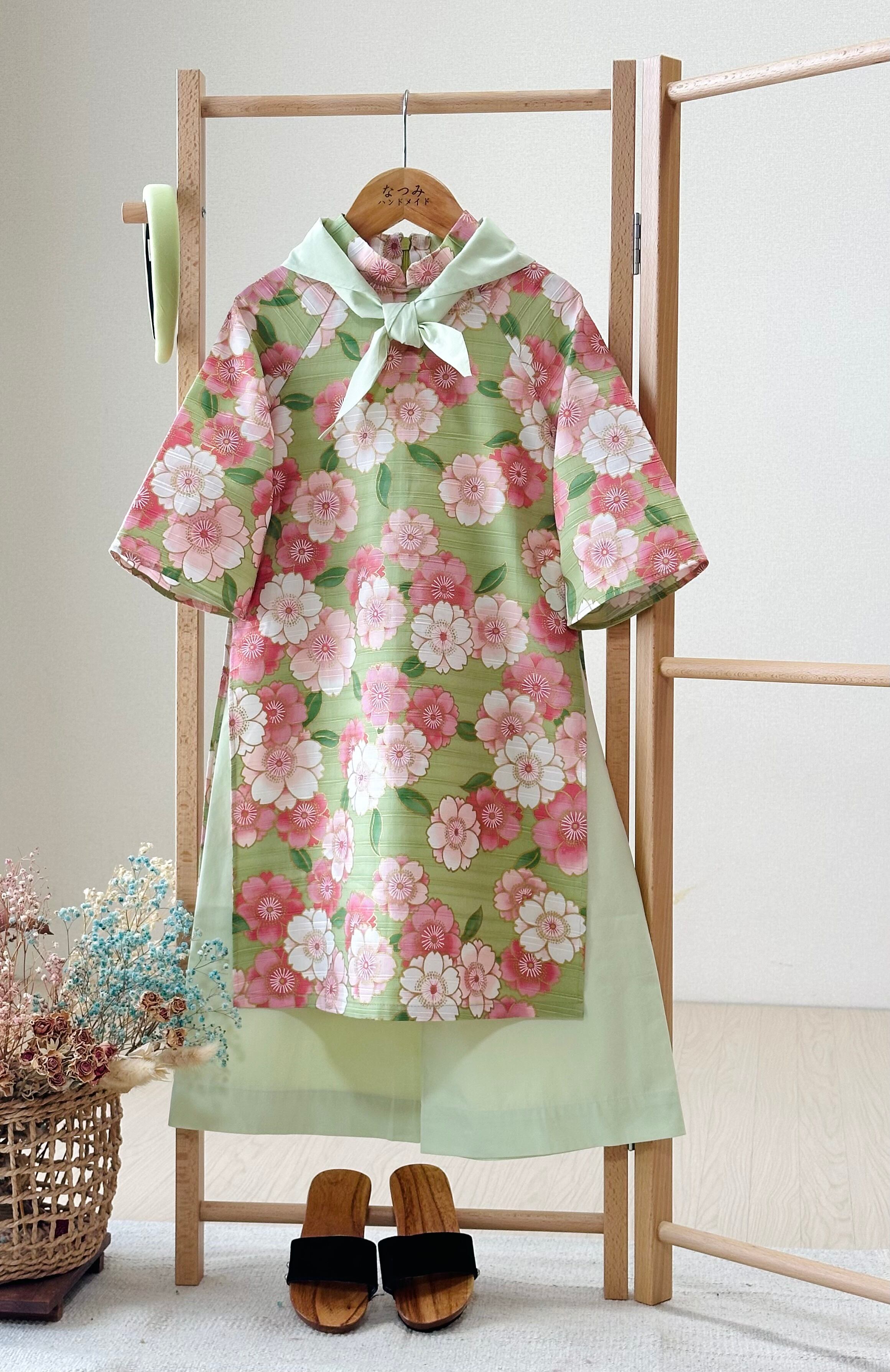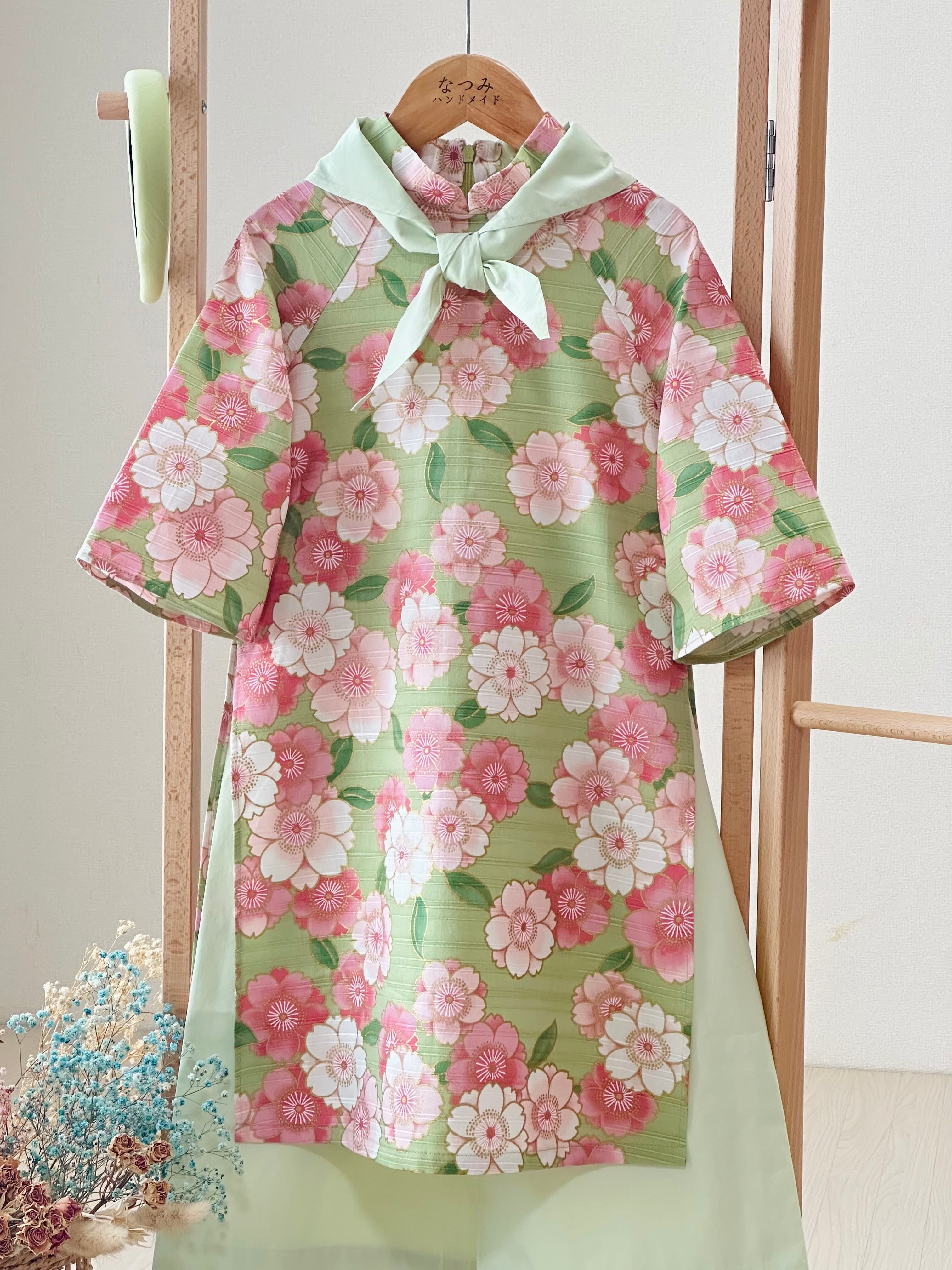 こちらの子供用アオザイは、普段着としても楽しめるように、ワンピースのような可愛らしいデザインに仕上げました。