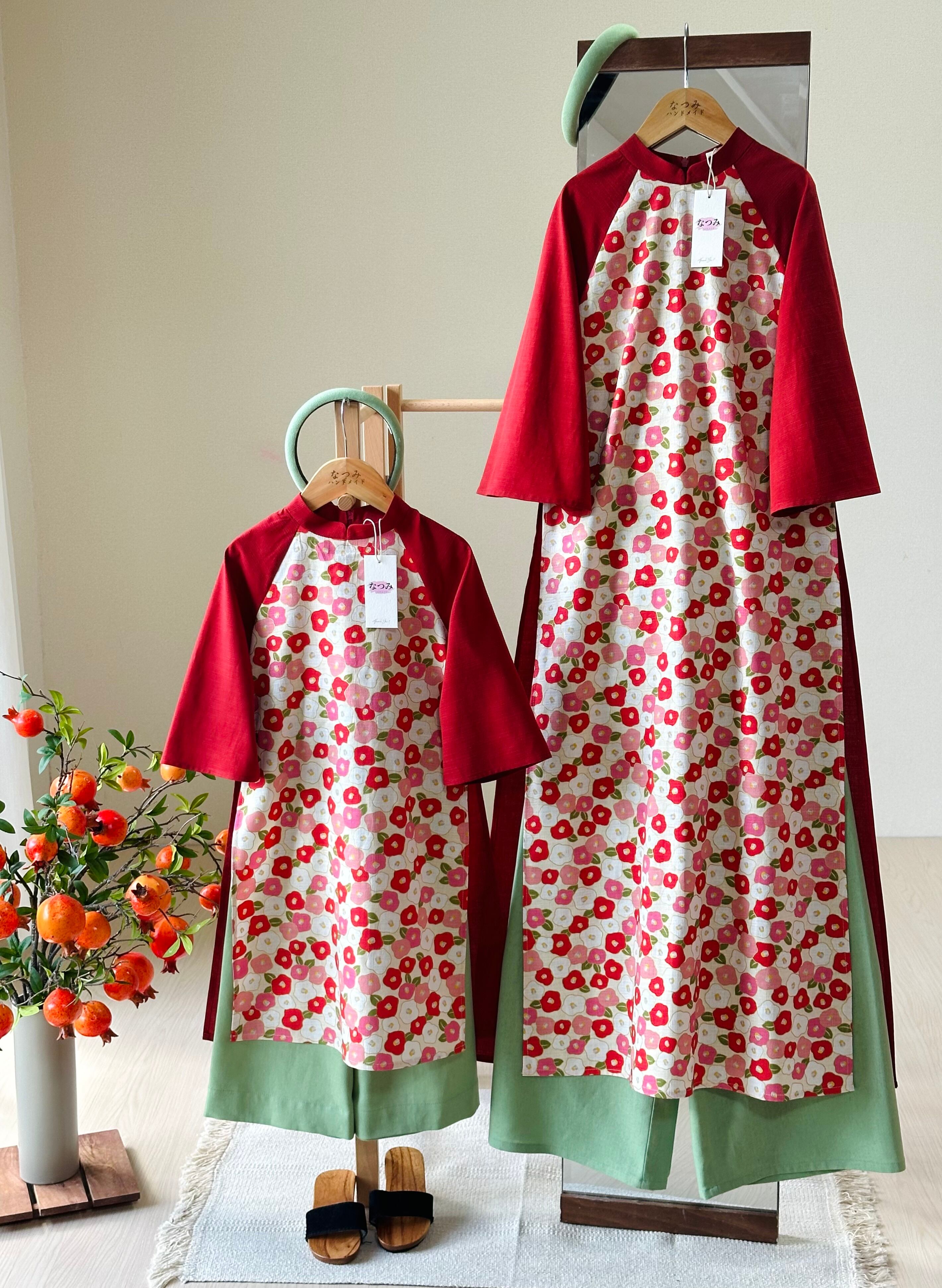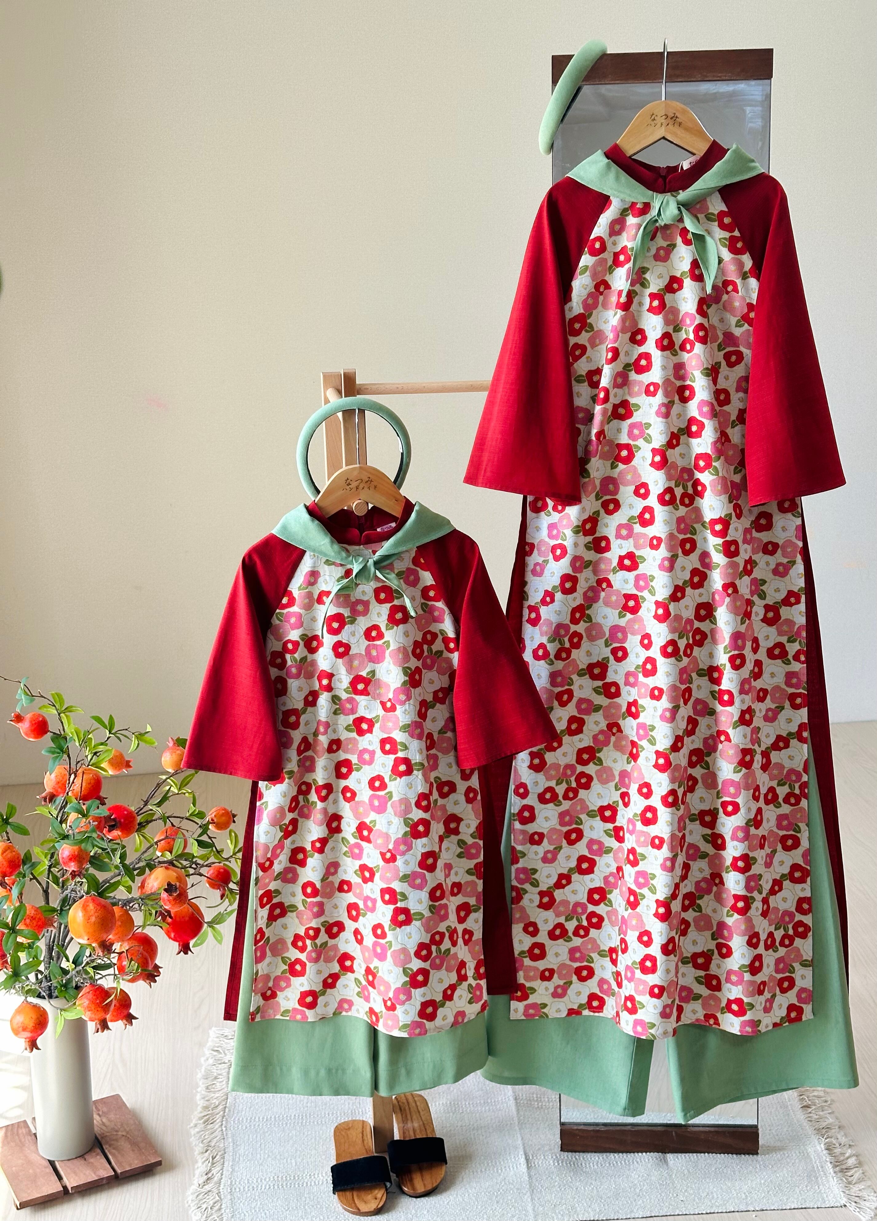 こちらの子供用アオザイは、普段着としても楽しめるように、ワンピースのような可愛らしいデザインに仕上げました。