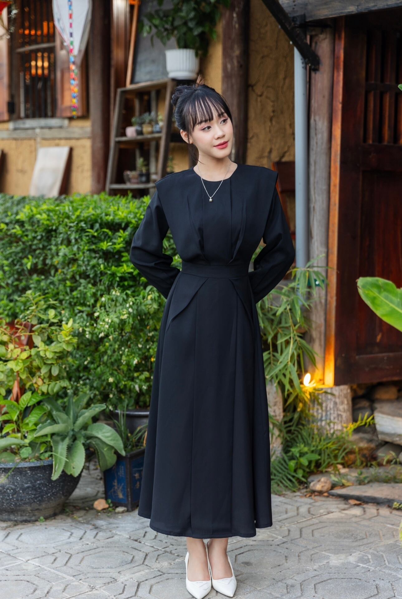 No.VTN2401 レディース マキシワンピース 長袖 春 秋 無地