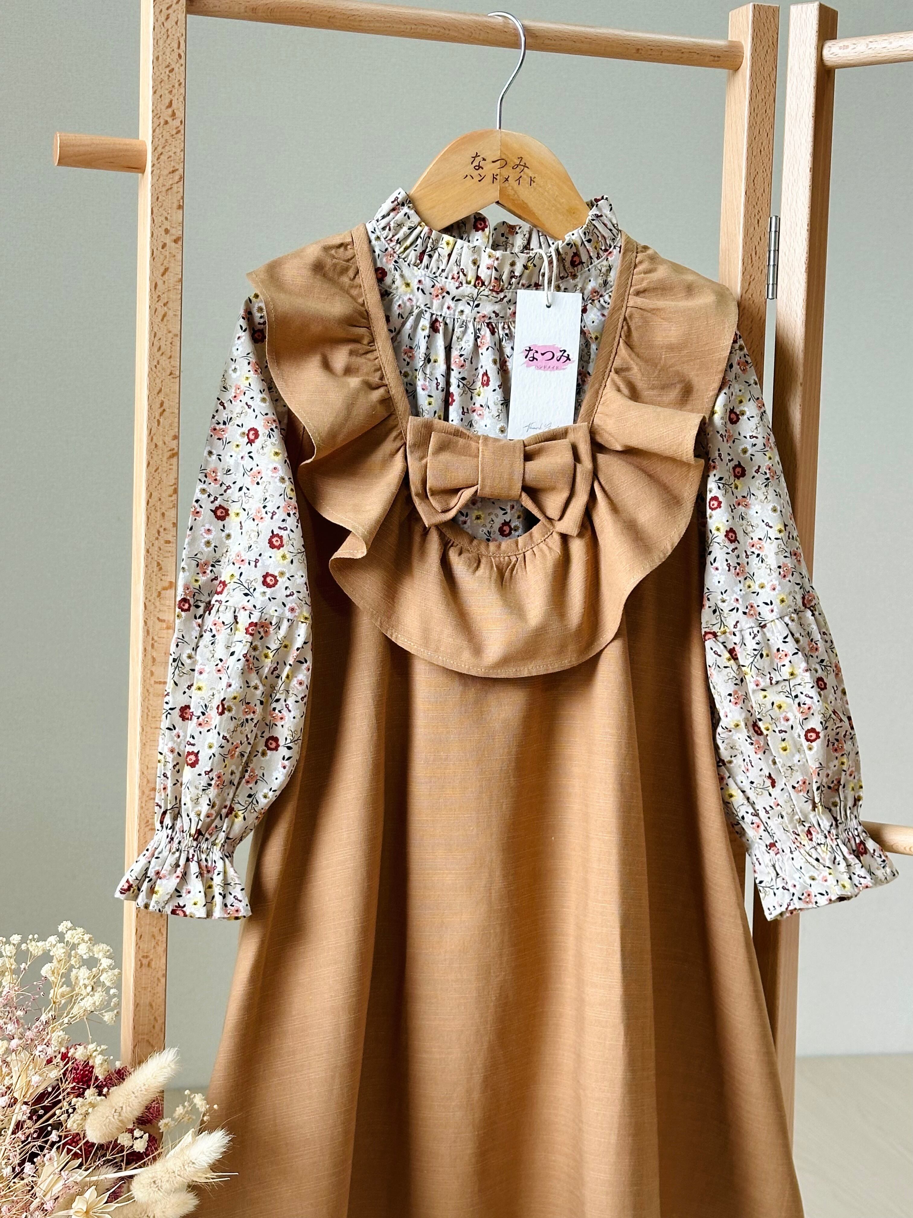 No.ST2410ハンドメイド女の子ブラウンワンピースセット