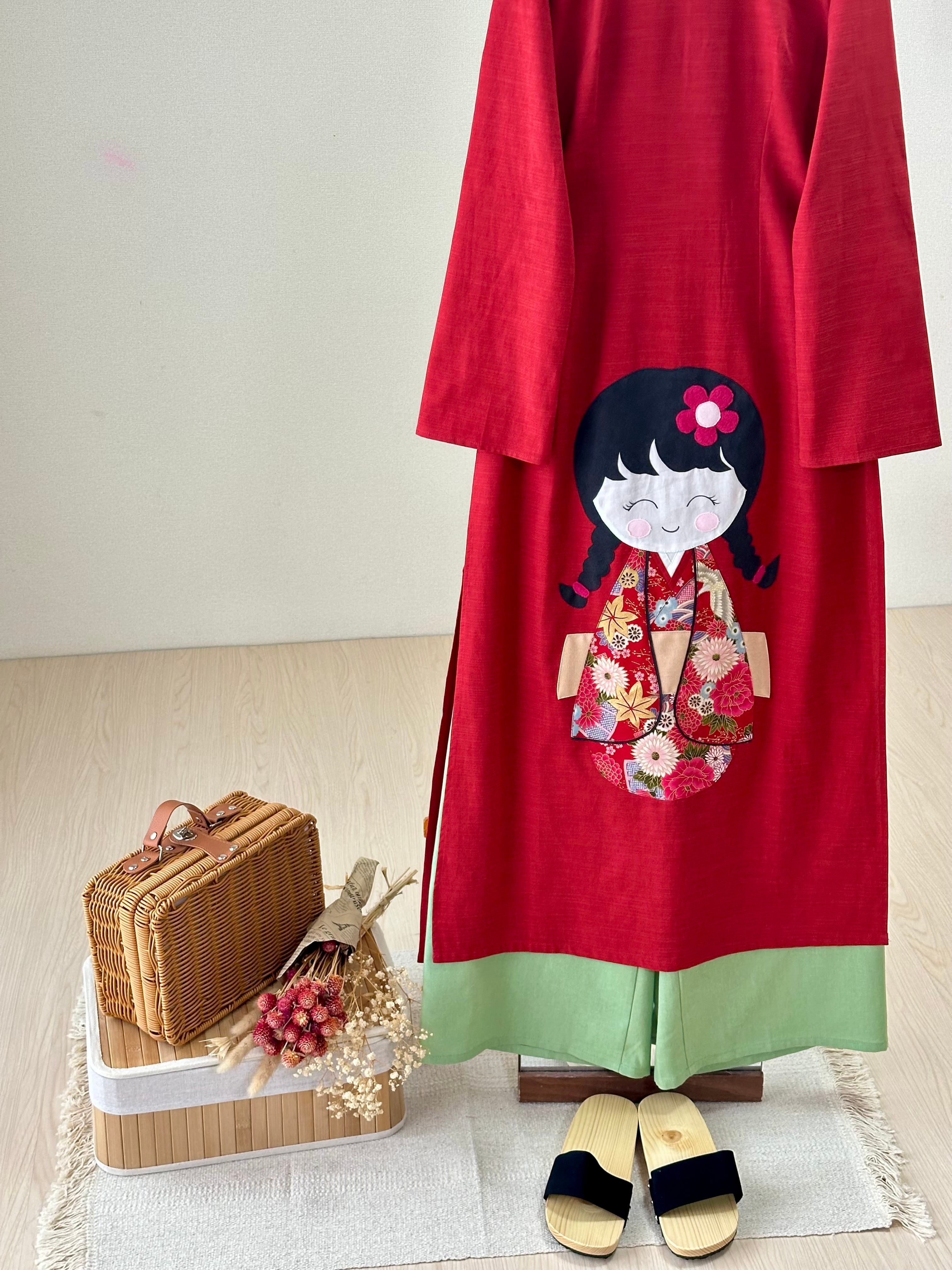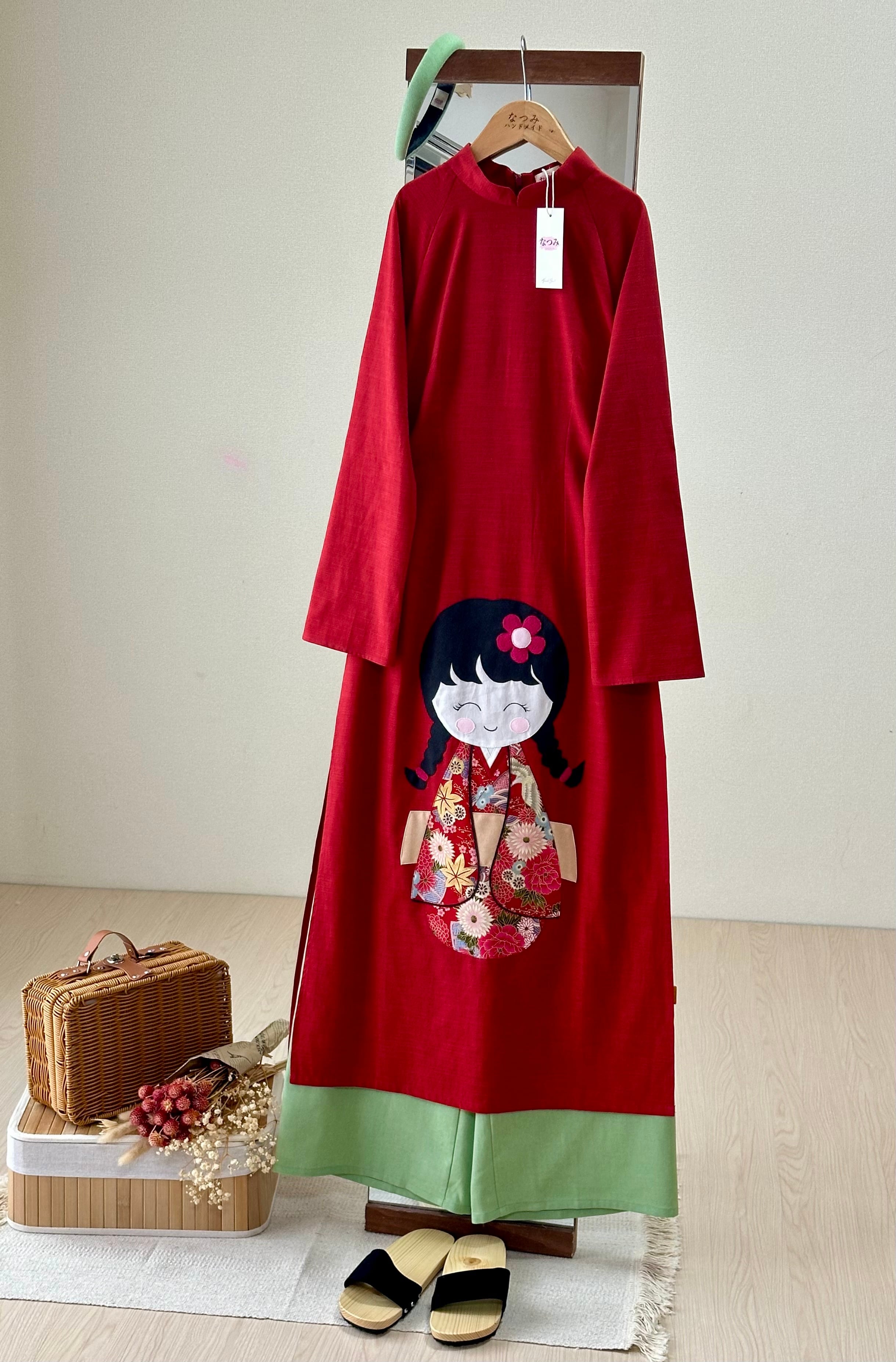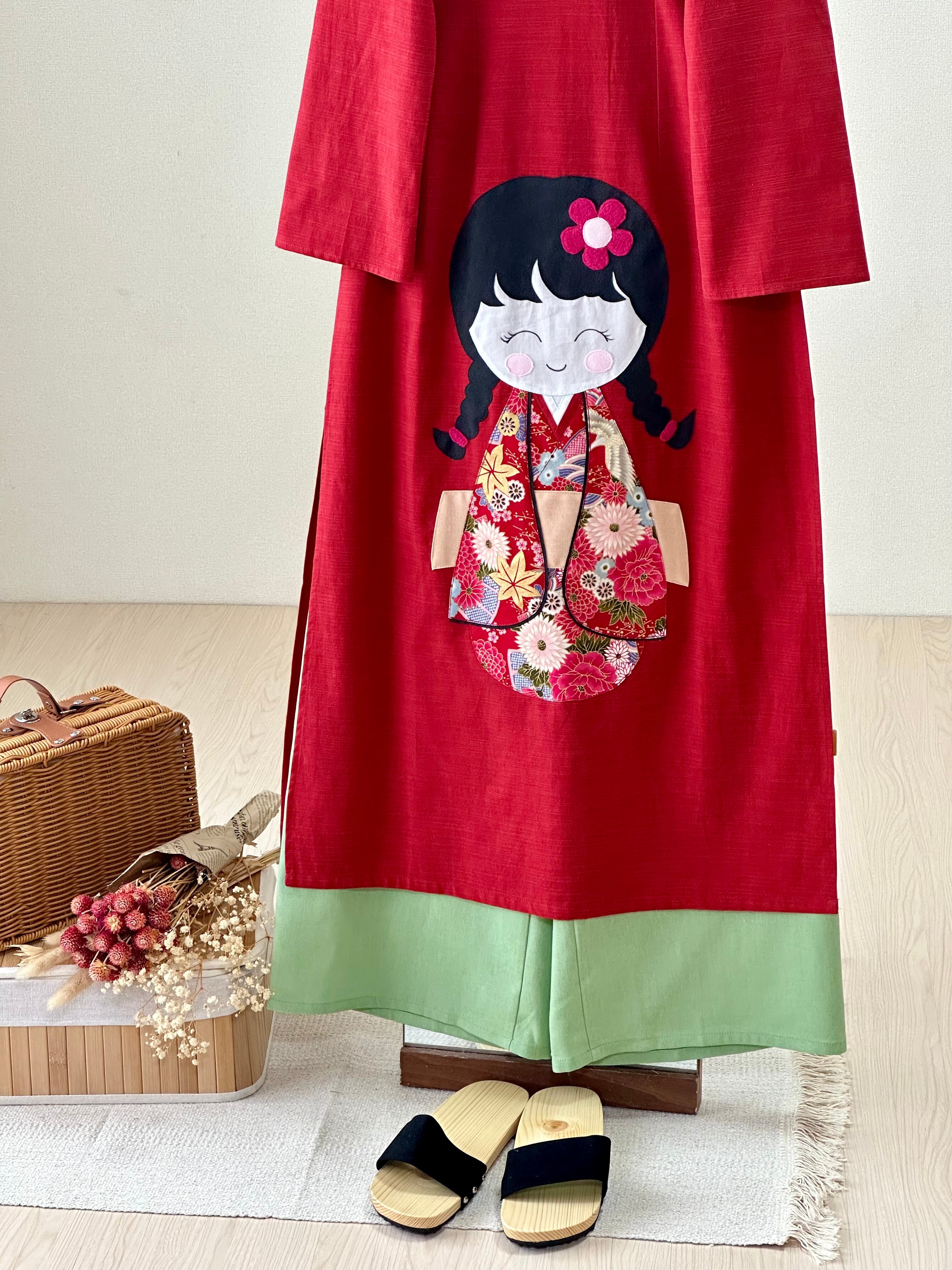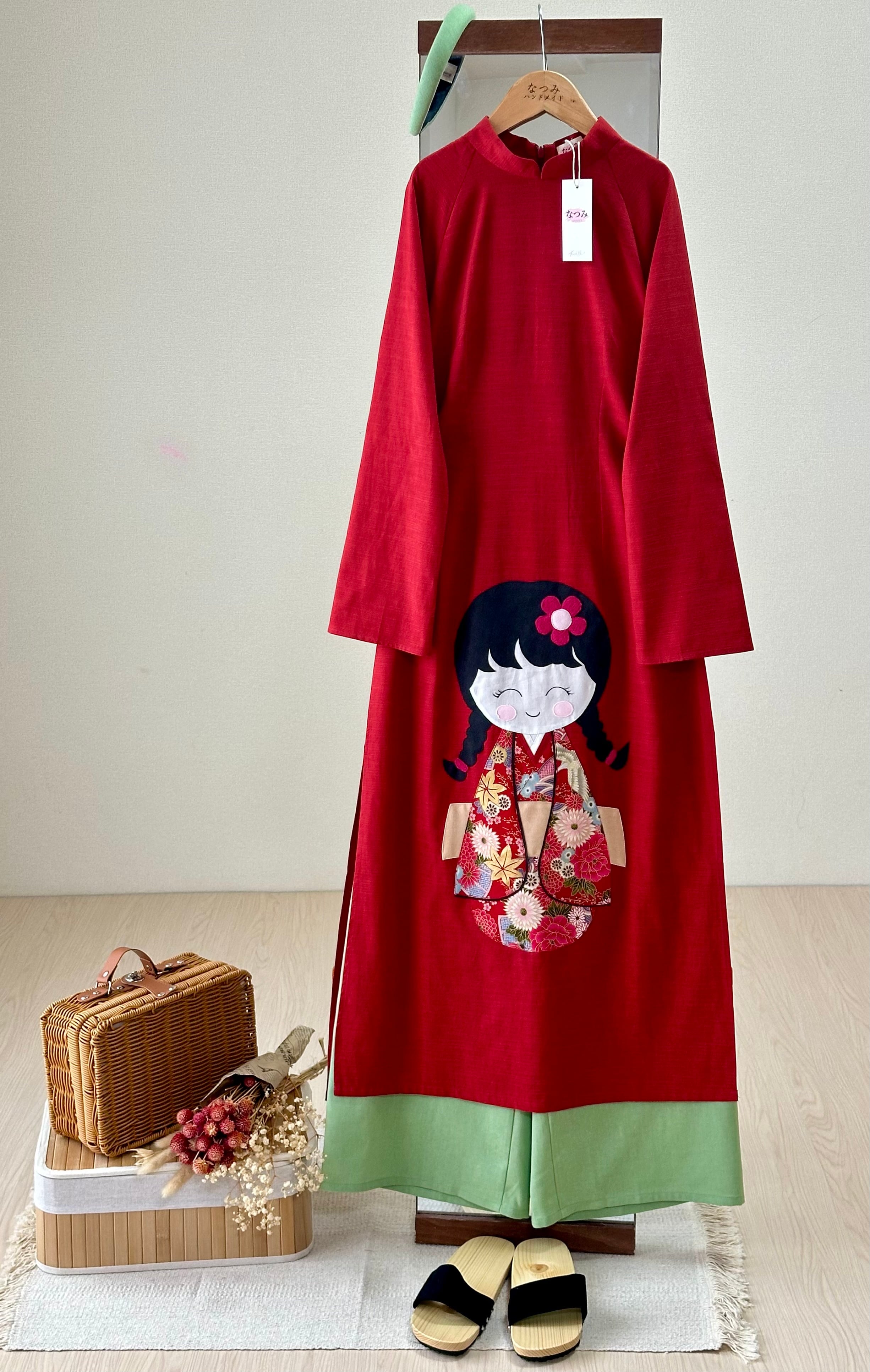 (レデイース)No.BB2519大人用リネンベトナムアオザイセット➖可愛いキルト