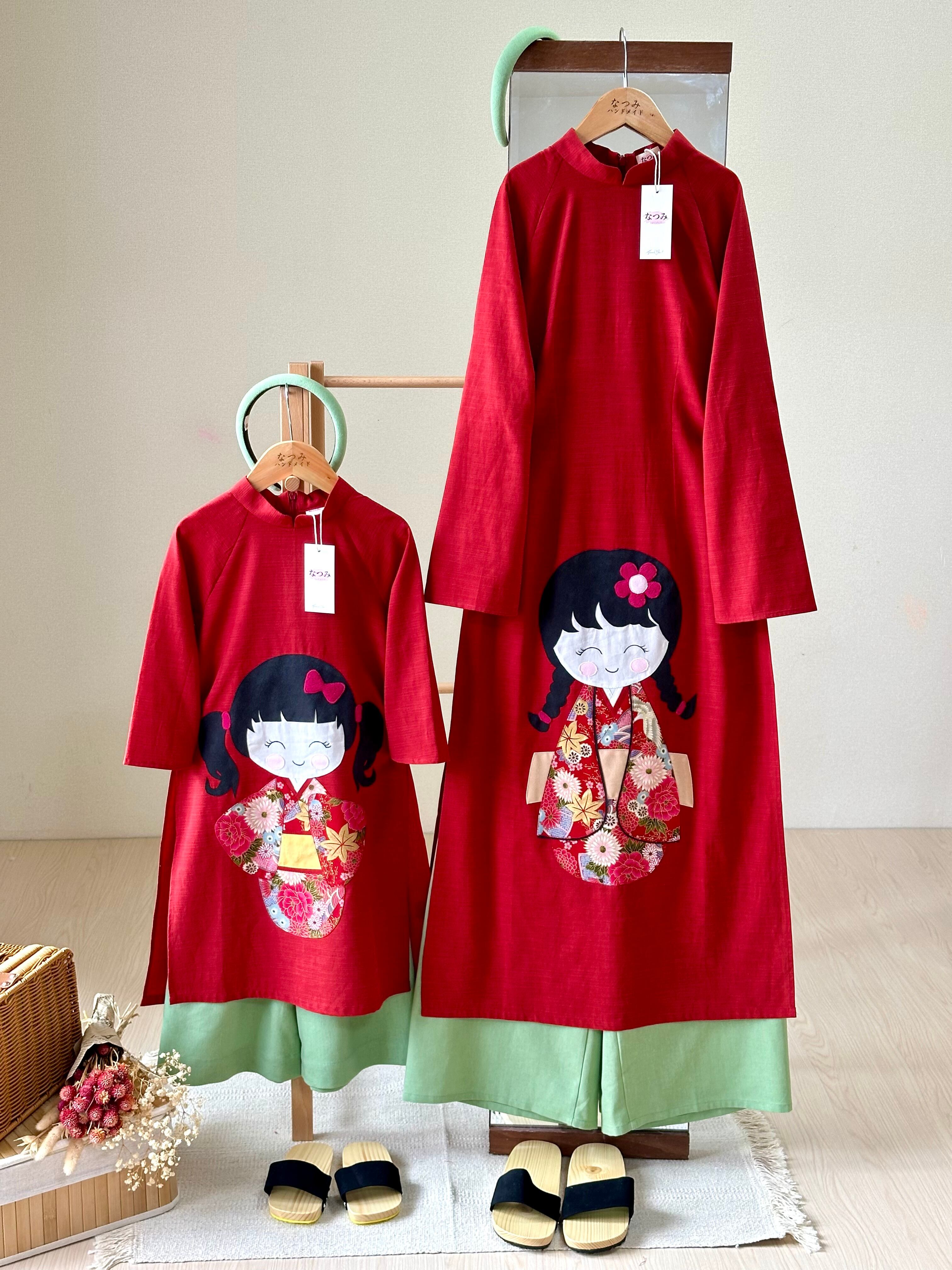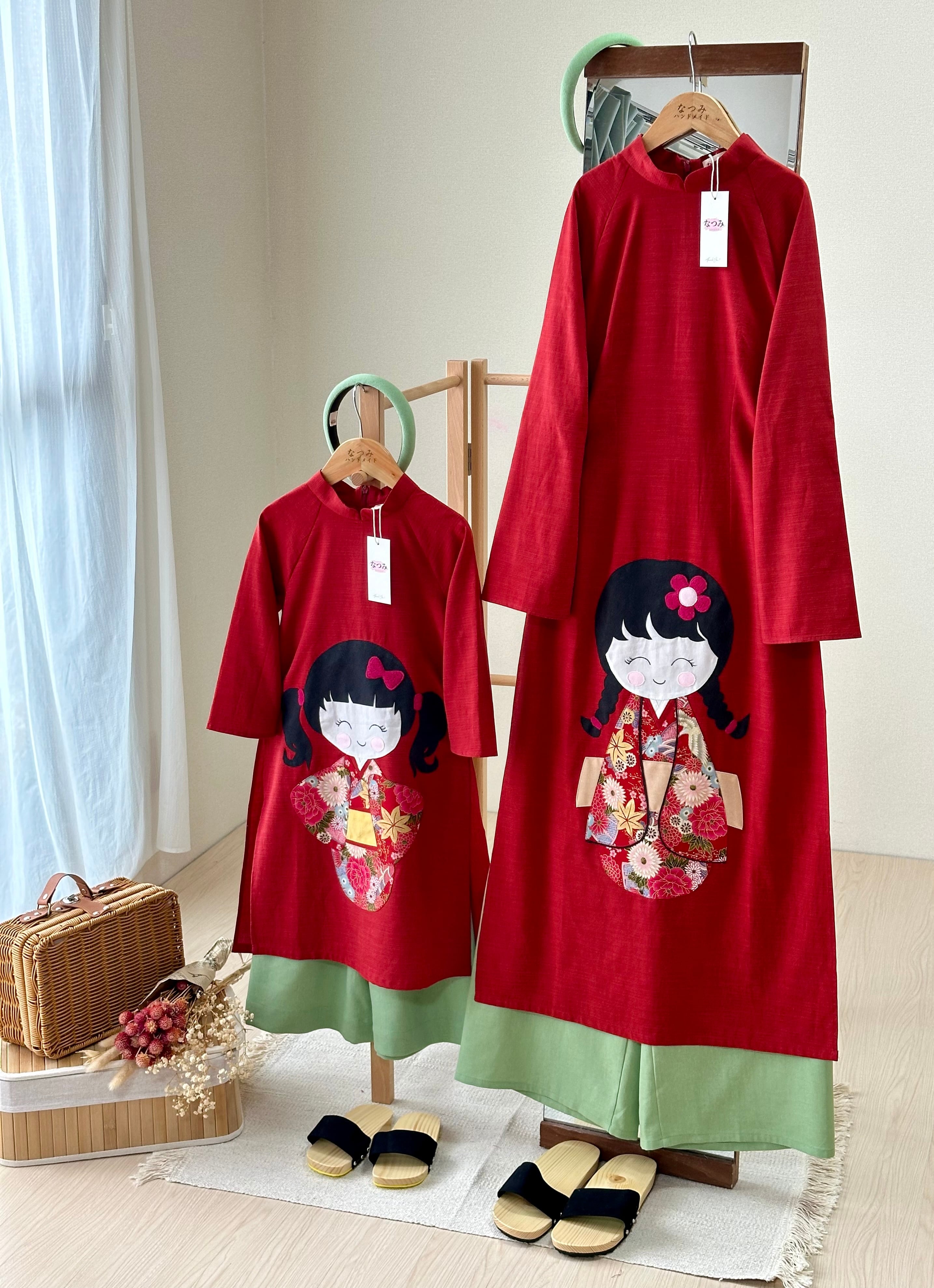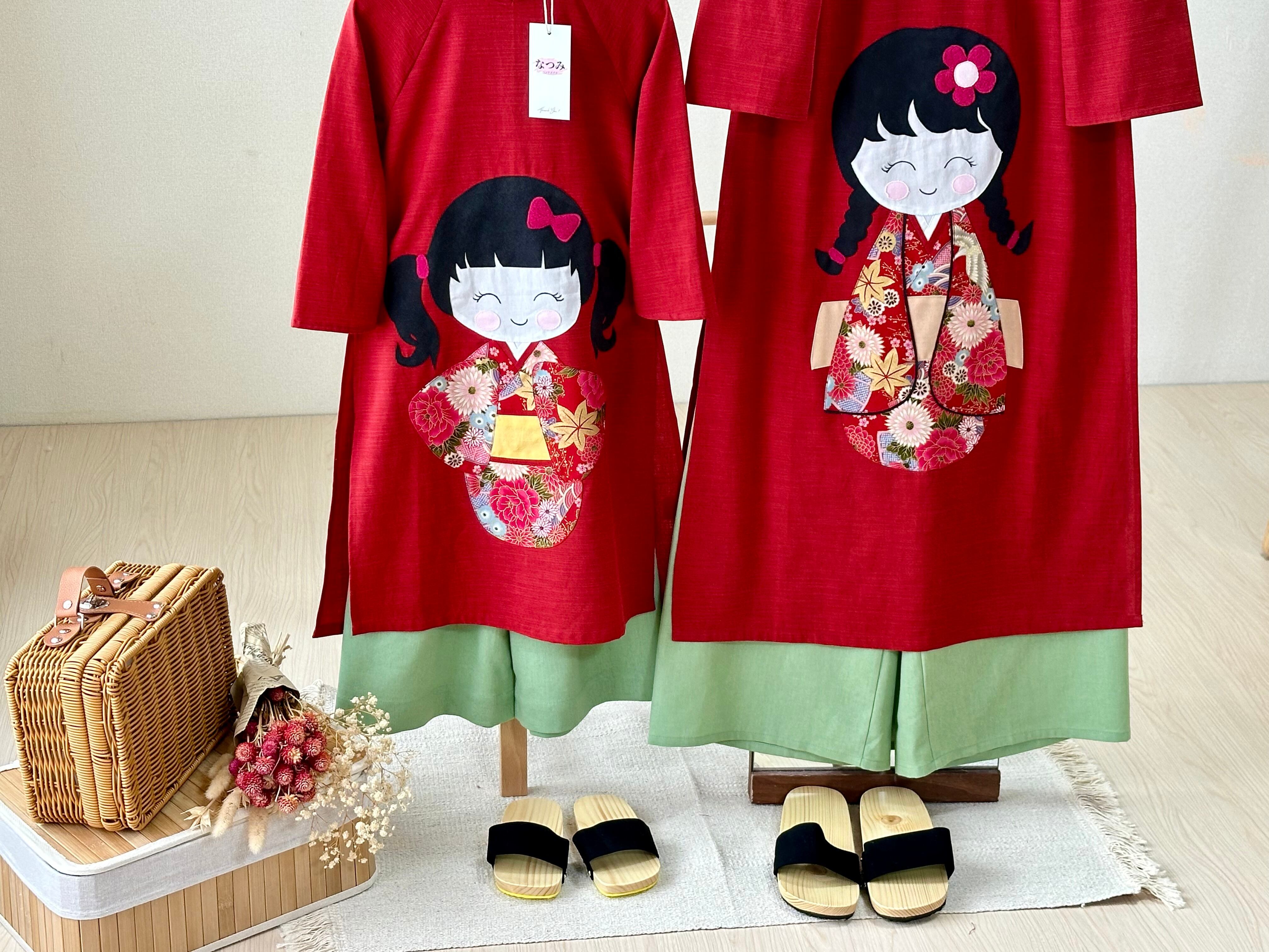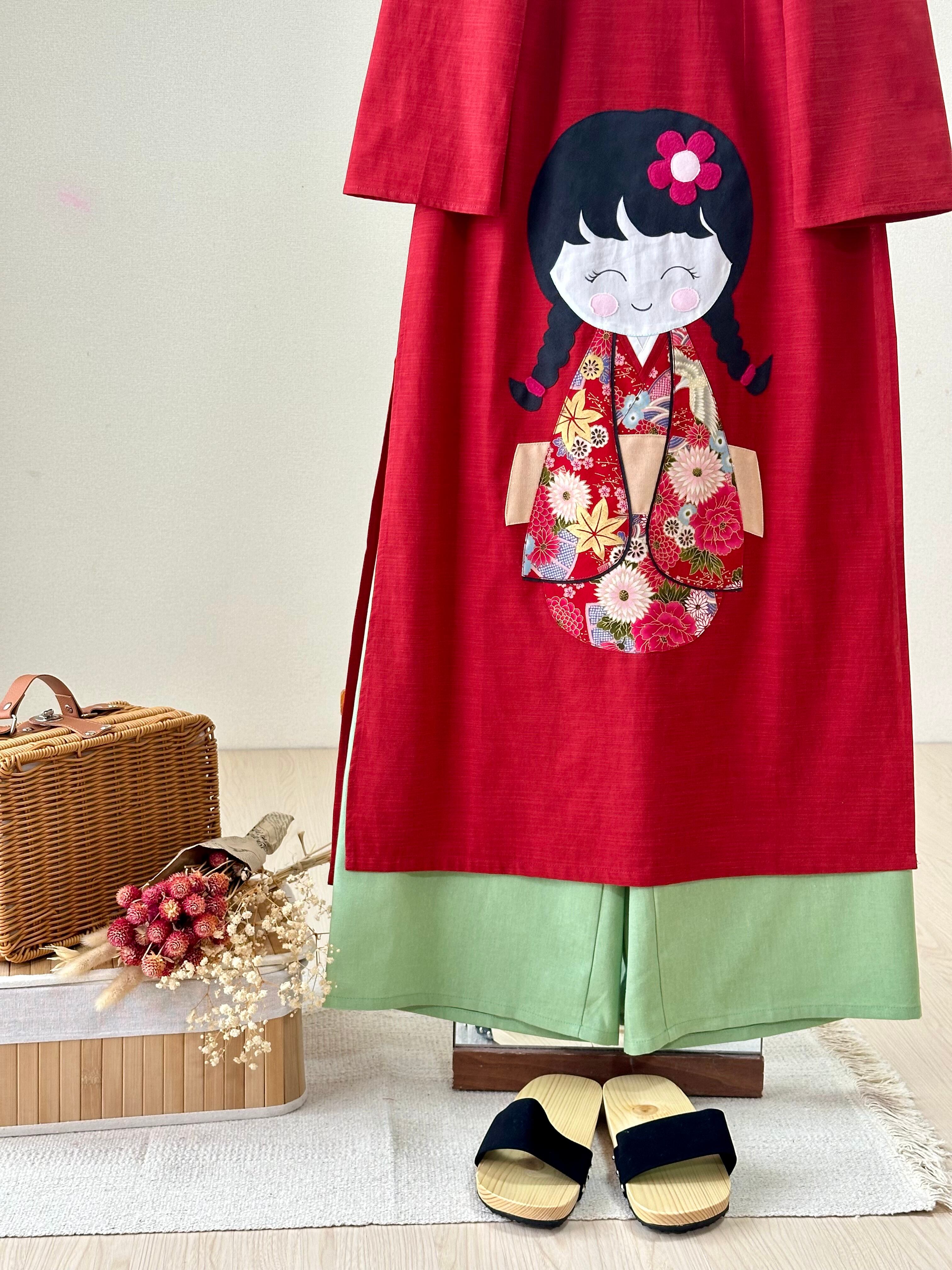 (レデイース)No.BB2519大人用リネンベトナムアオザイセット➖可愛いキルト