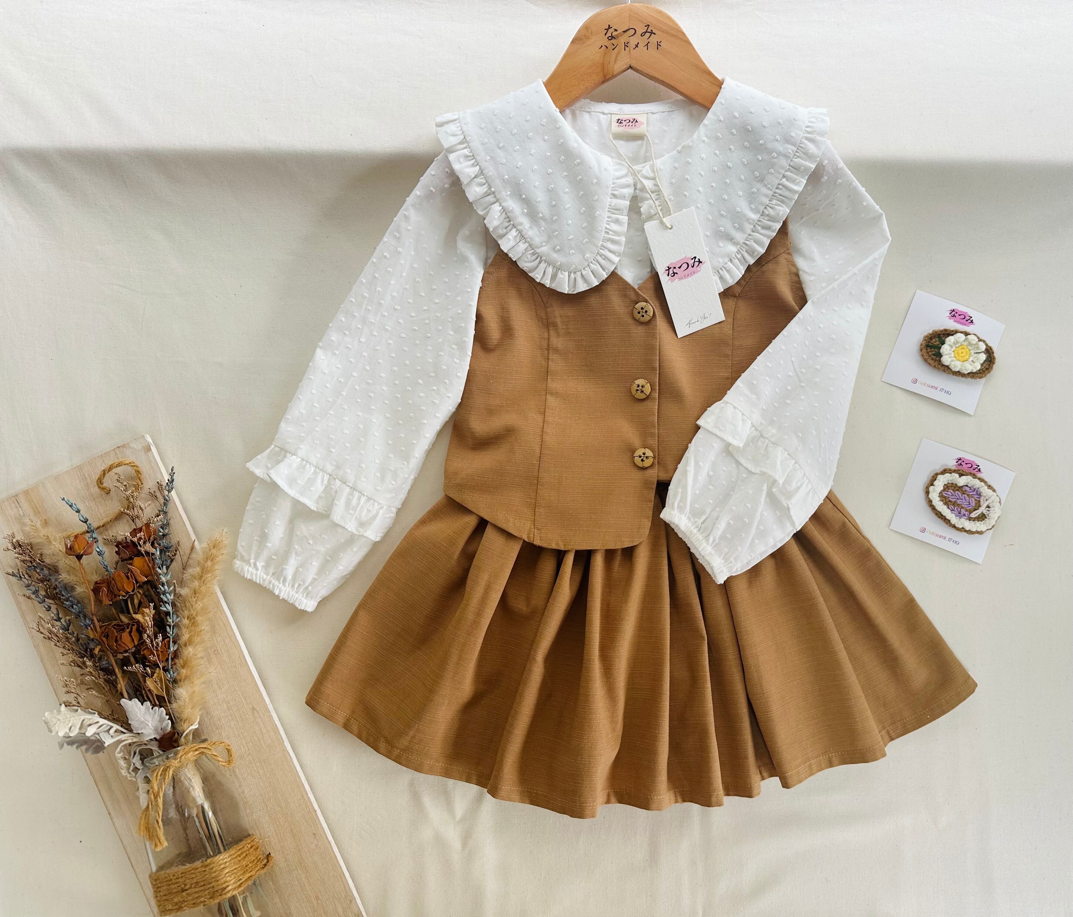 No.ST2414ハンドメイド女の子可愛いブラウン ベスト スカート 3点セット