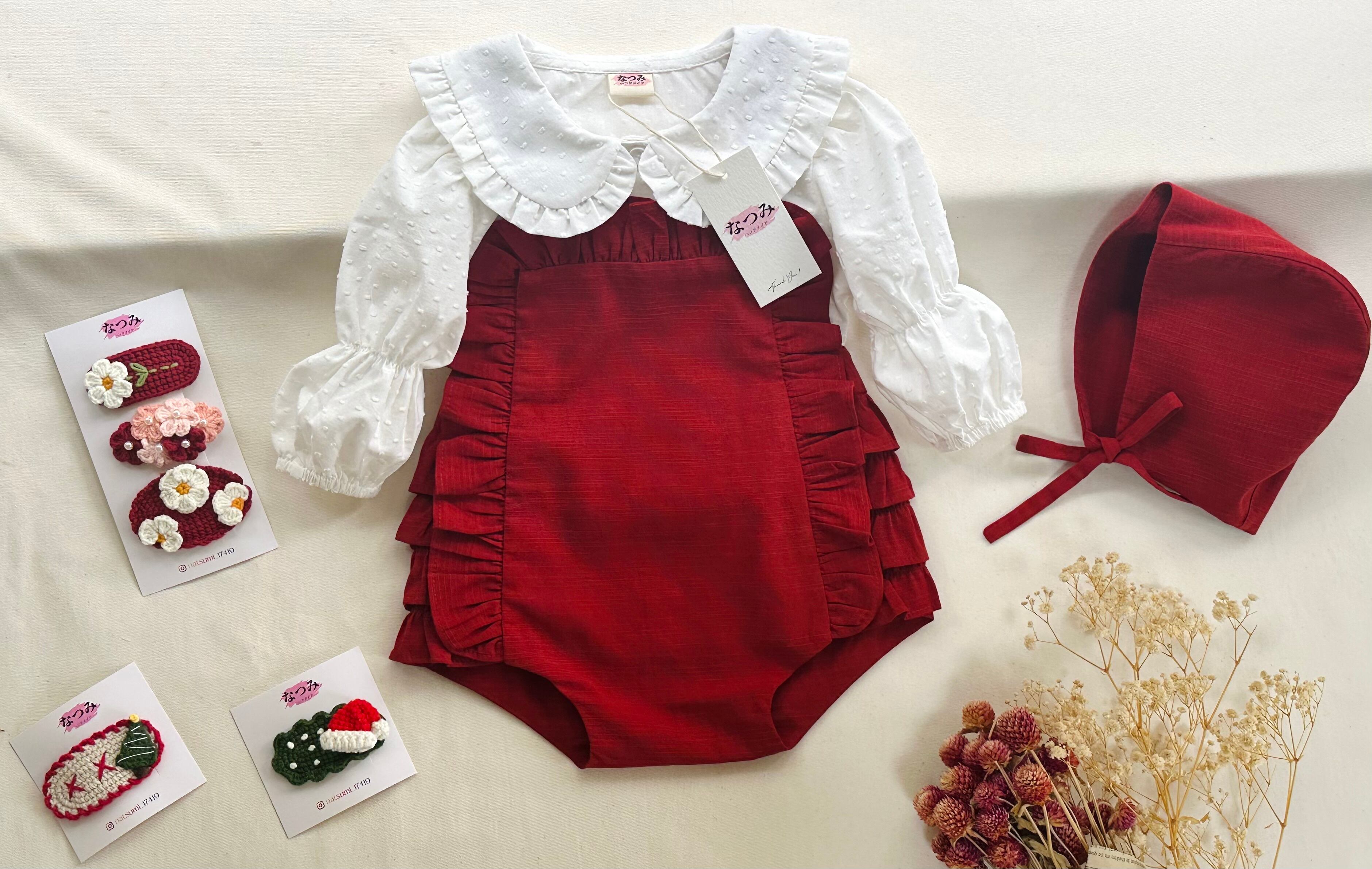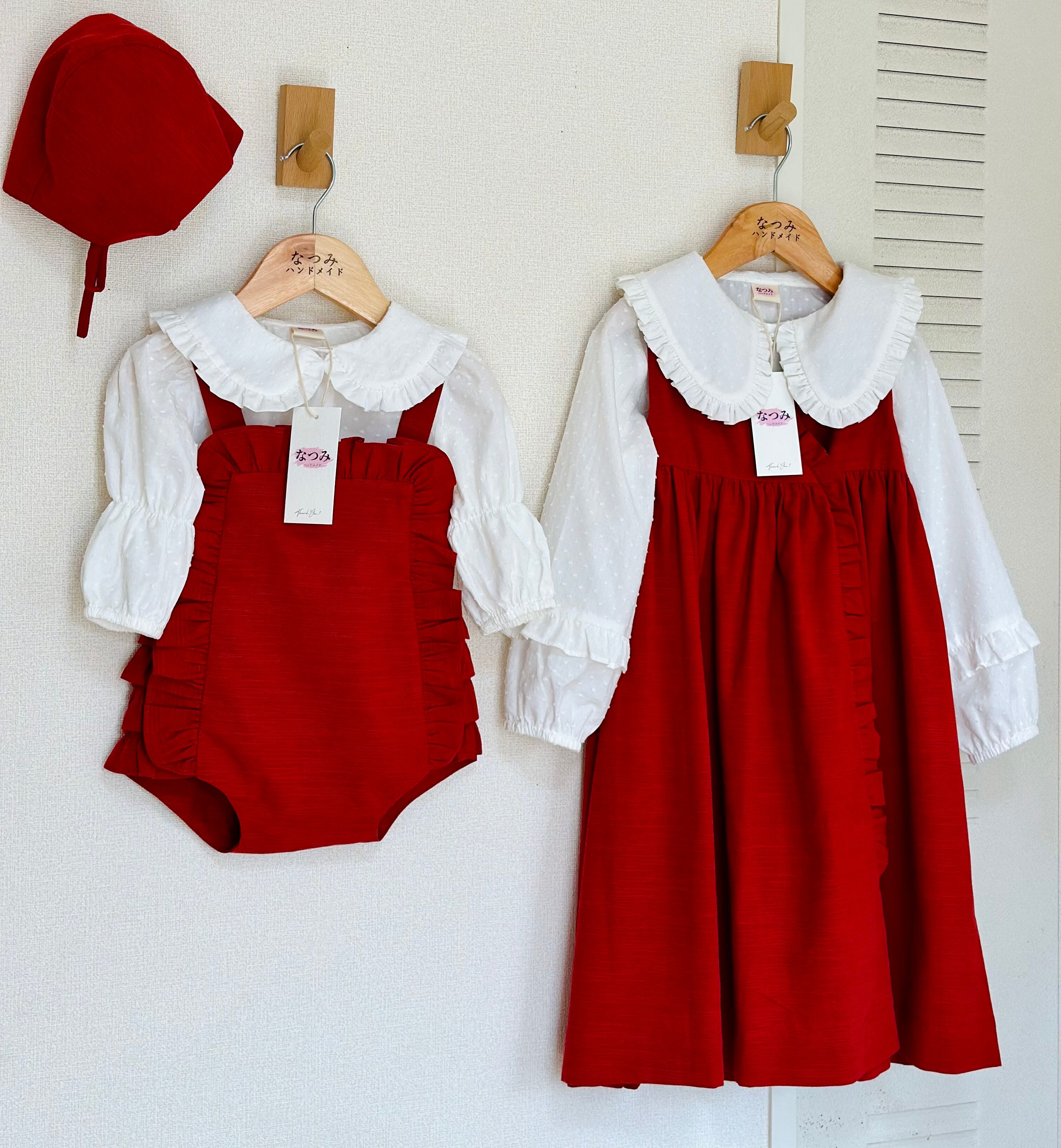 #なつみハンドメイド#オーダーメイド #ママ娘お揃いワンピース #ブラウン #ワンピース #セット #クリスマス #ダブルガーゼ #綿コットン #赤ちゃん #ボディスーツ #ベビーボンネットガーゼ #ベスト #プレゼント