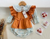 No.BB2403ハンドメイドベビーボディスーツ ベスト ベビーボンネットセット