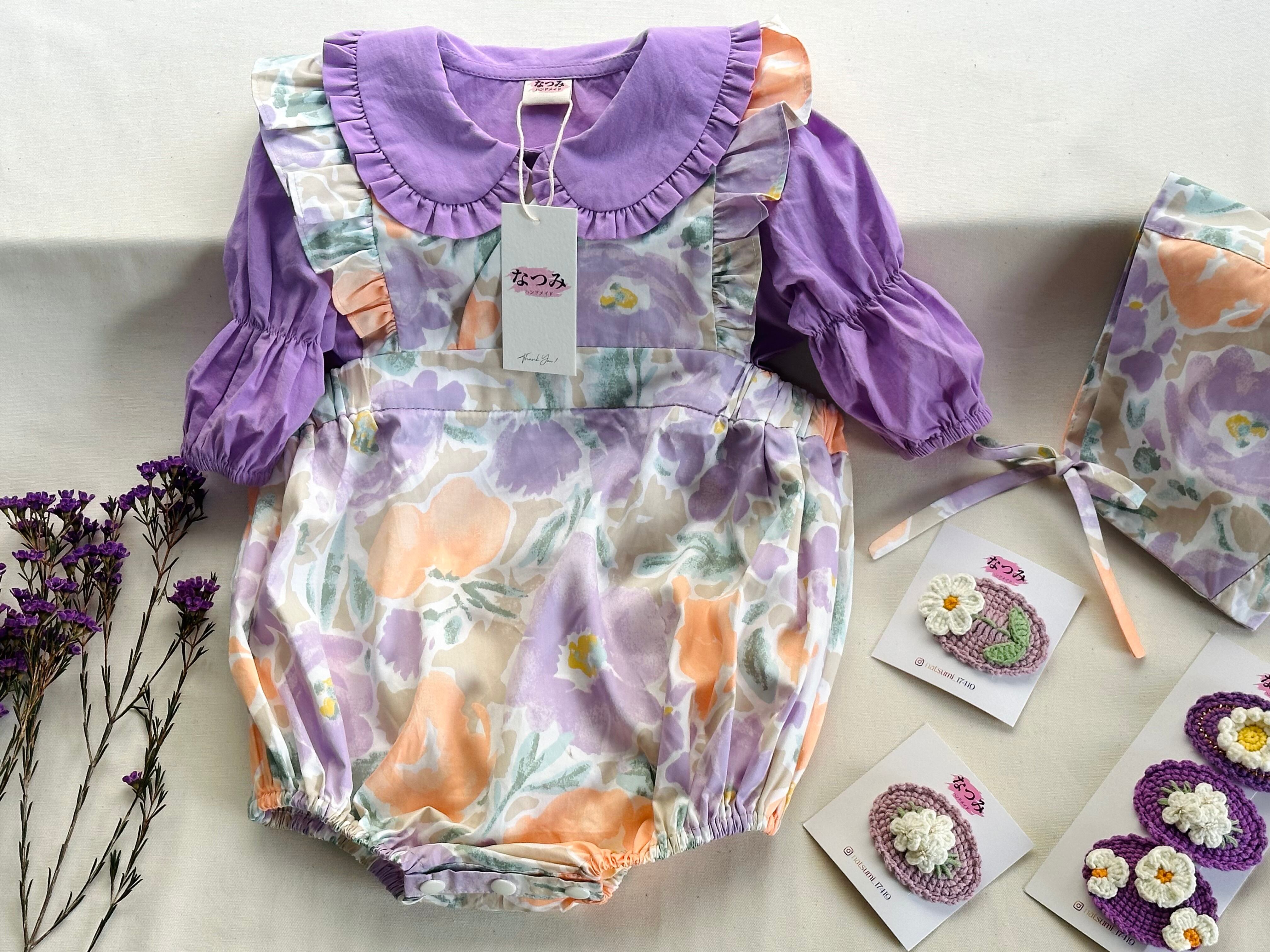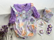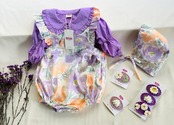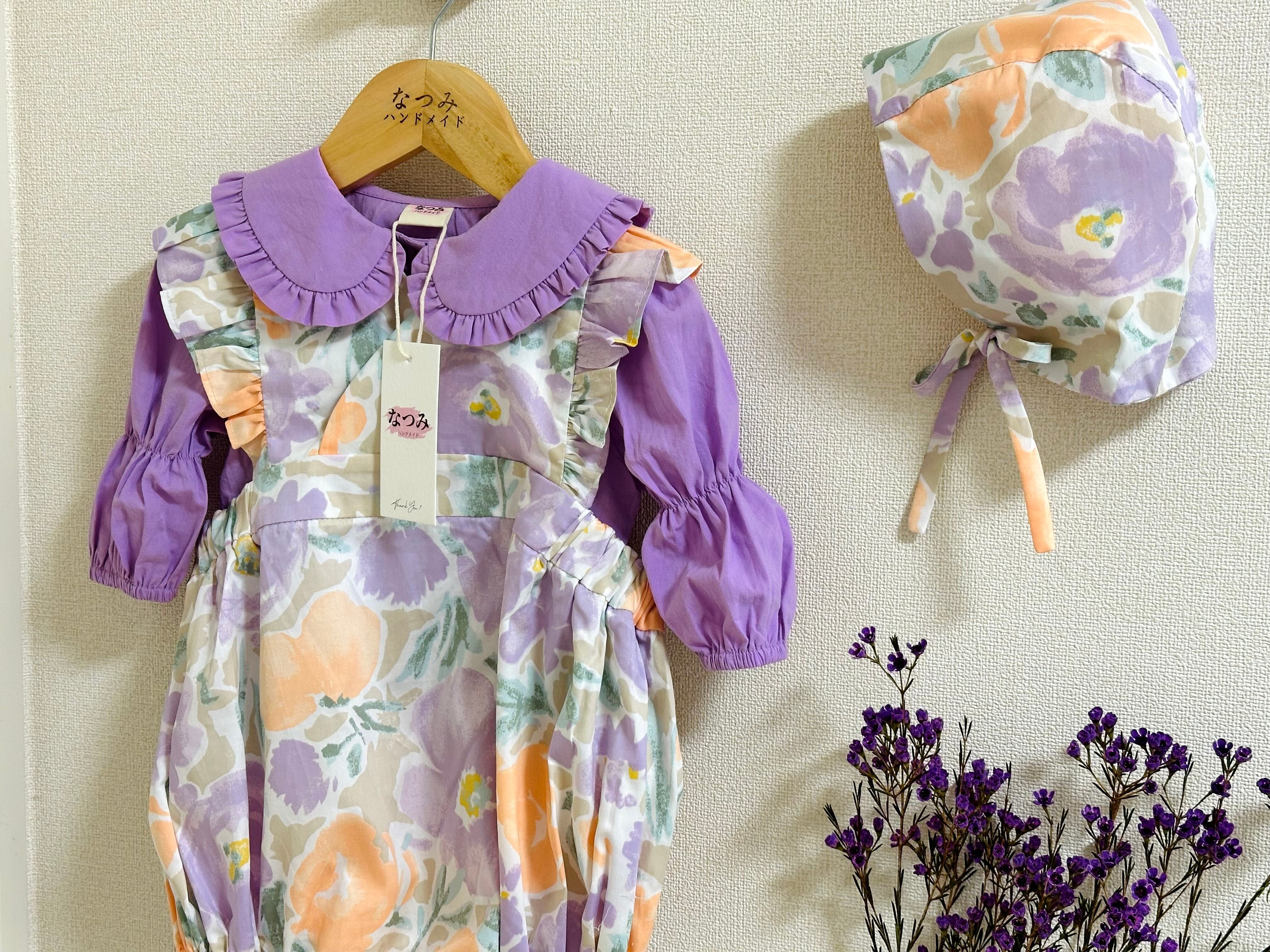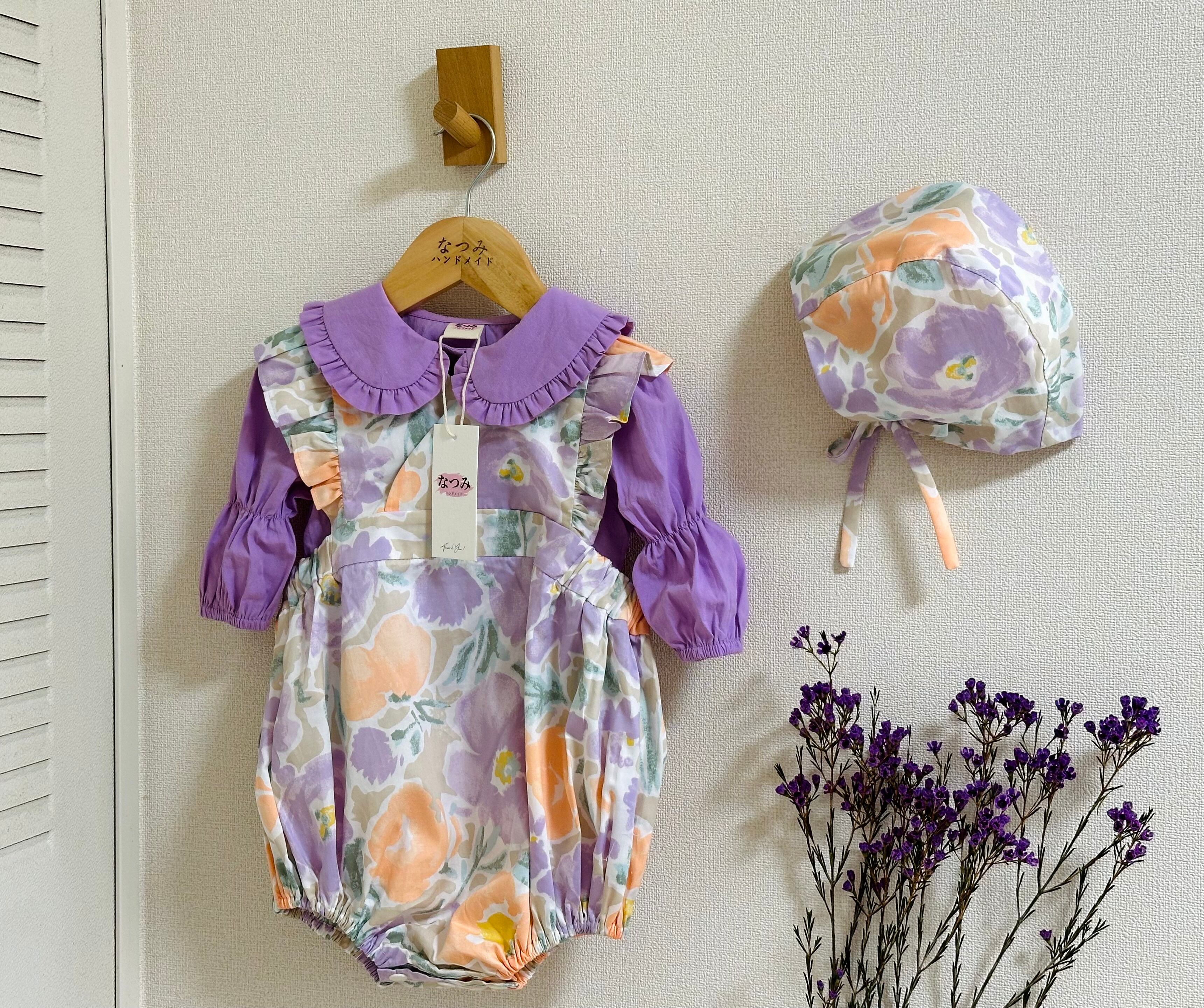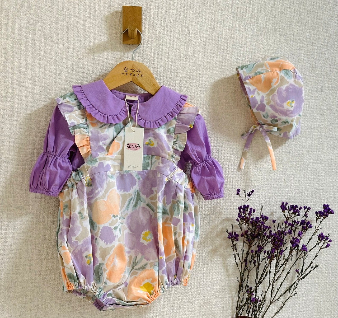 No.BB2405ハンドメイドベビーボディスーツブラウン ボンネットセット