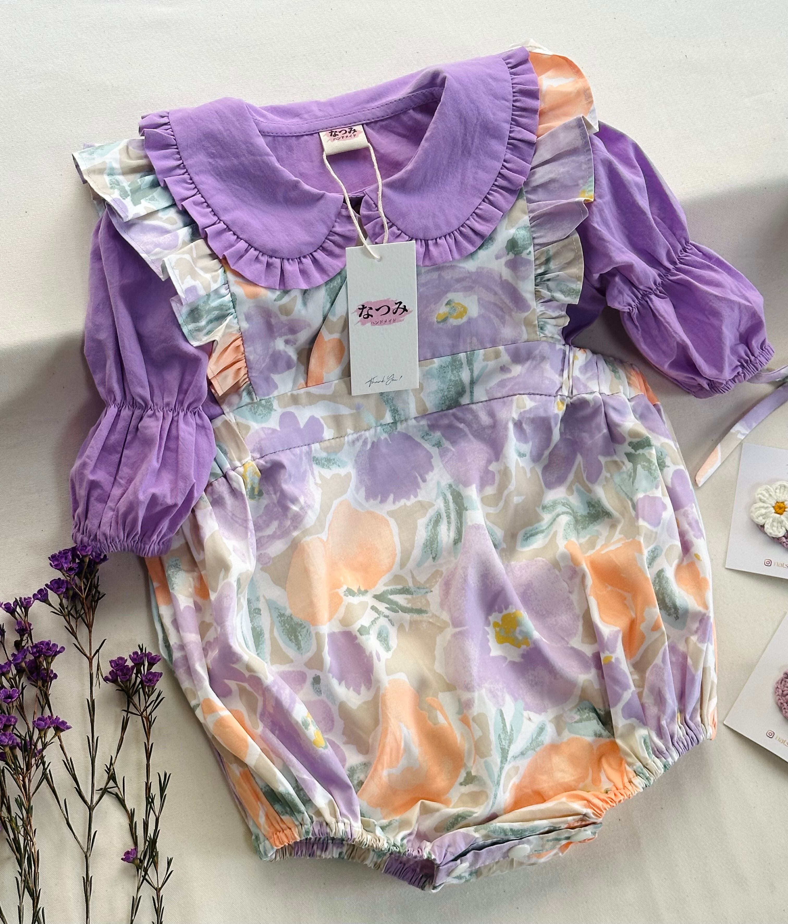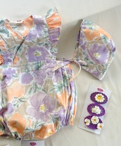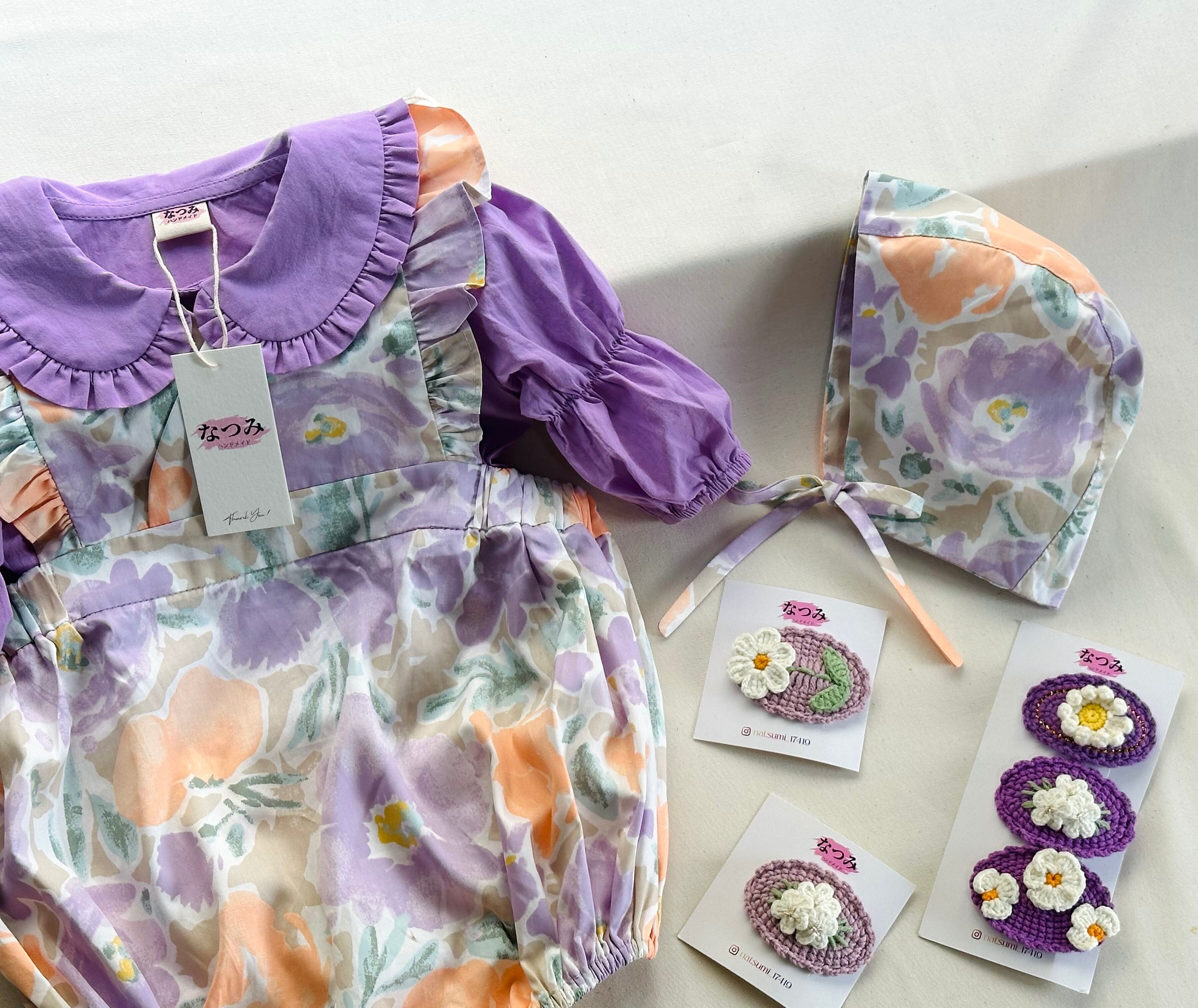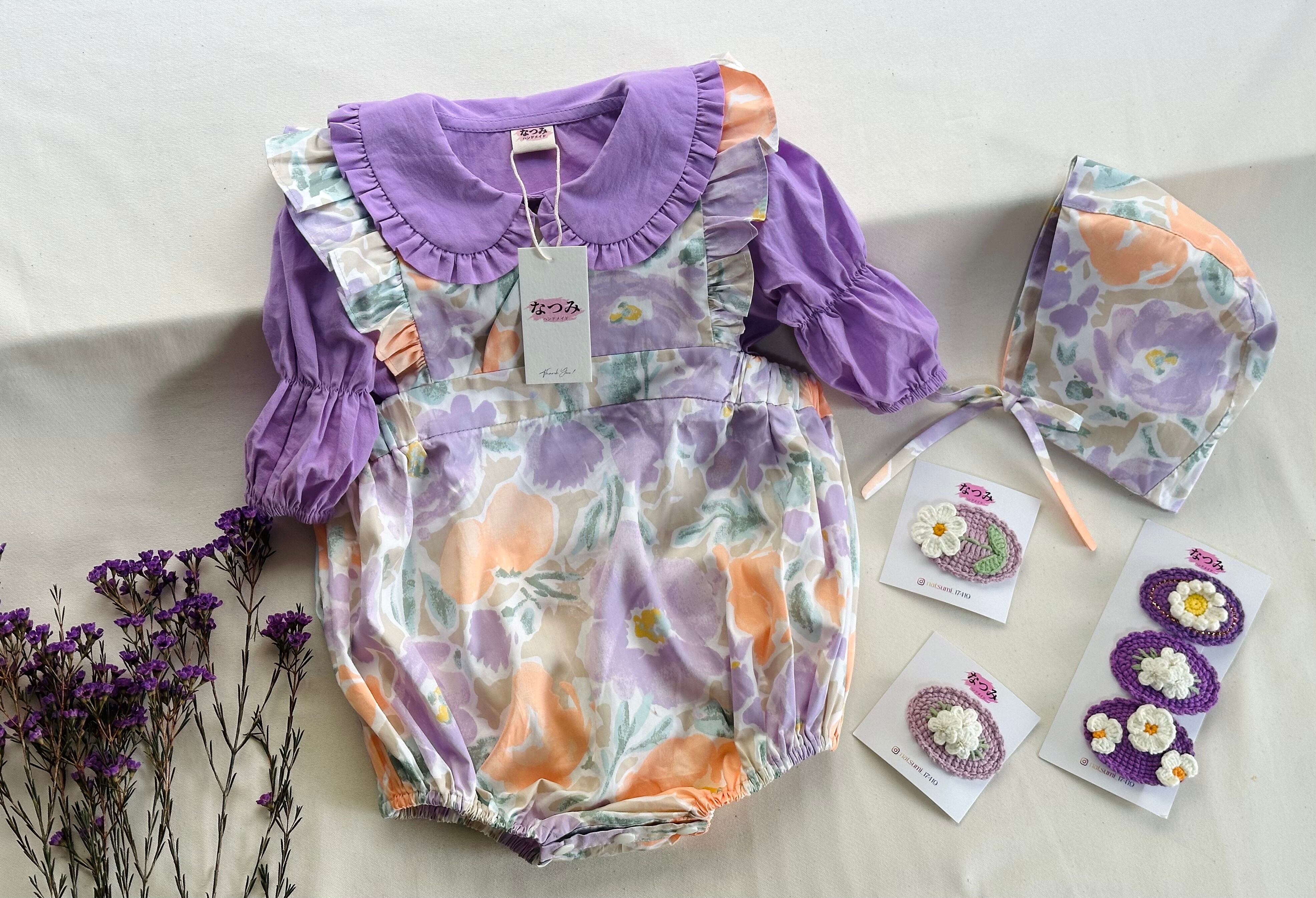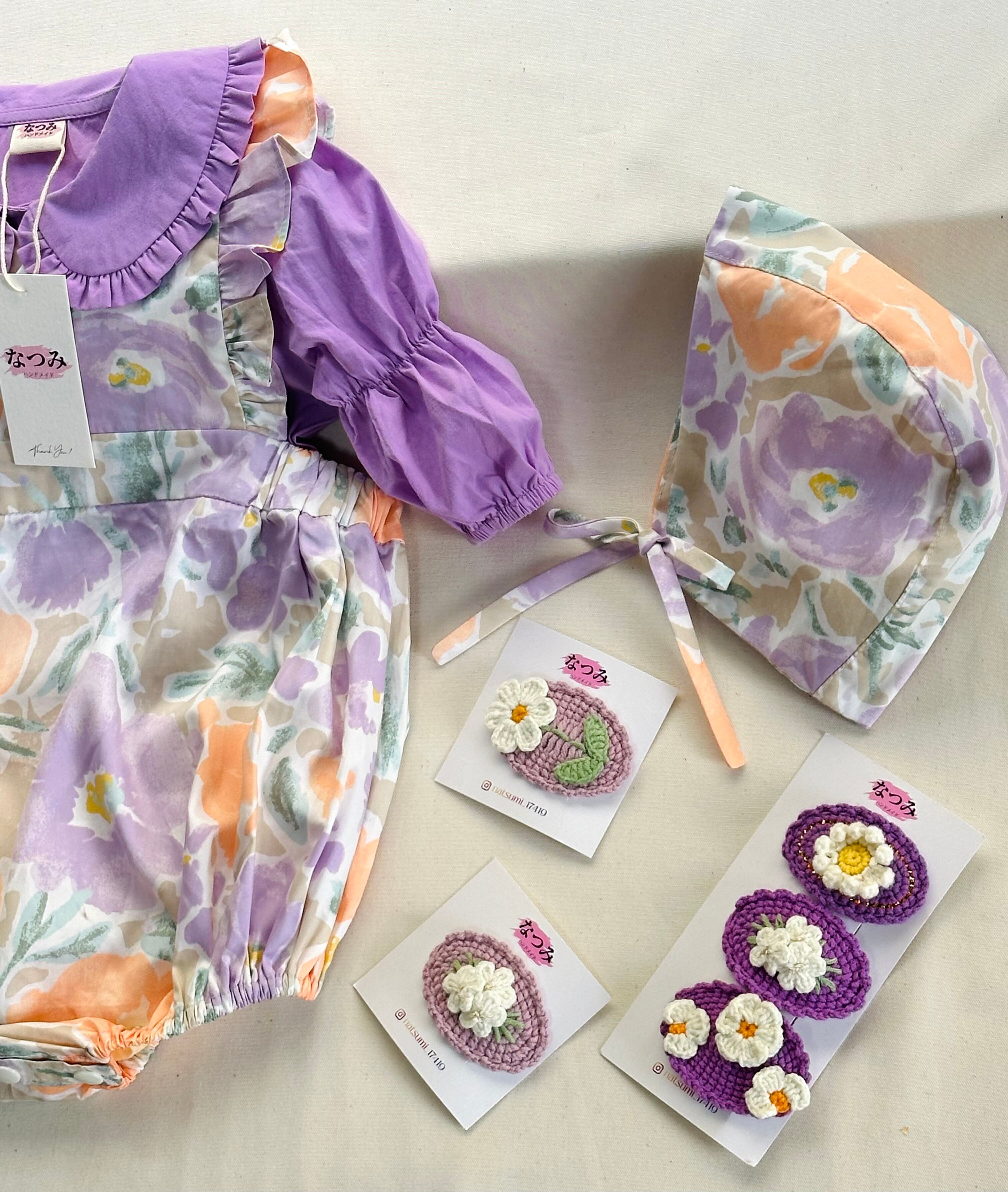 No.BB2405ハンドメイドベビーボディスーツブラウン ボンネットセット