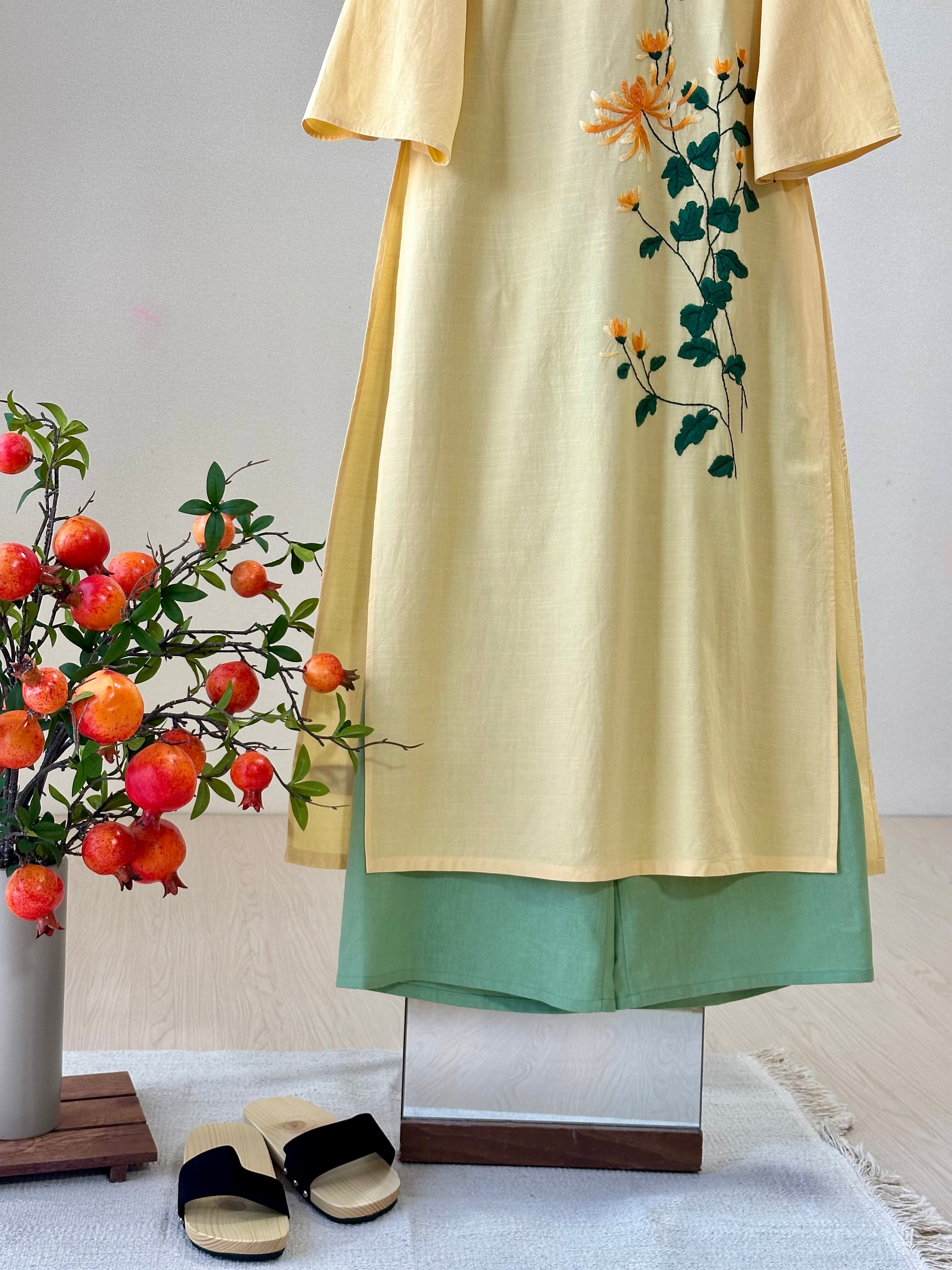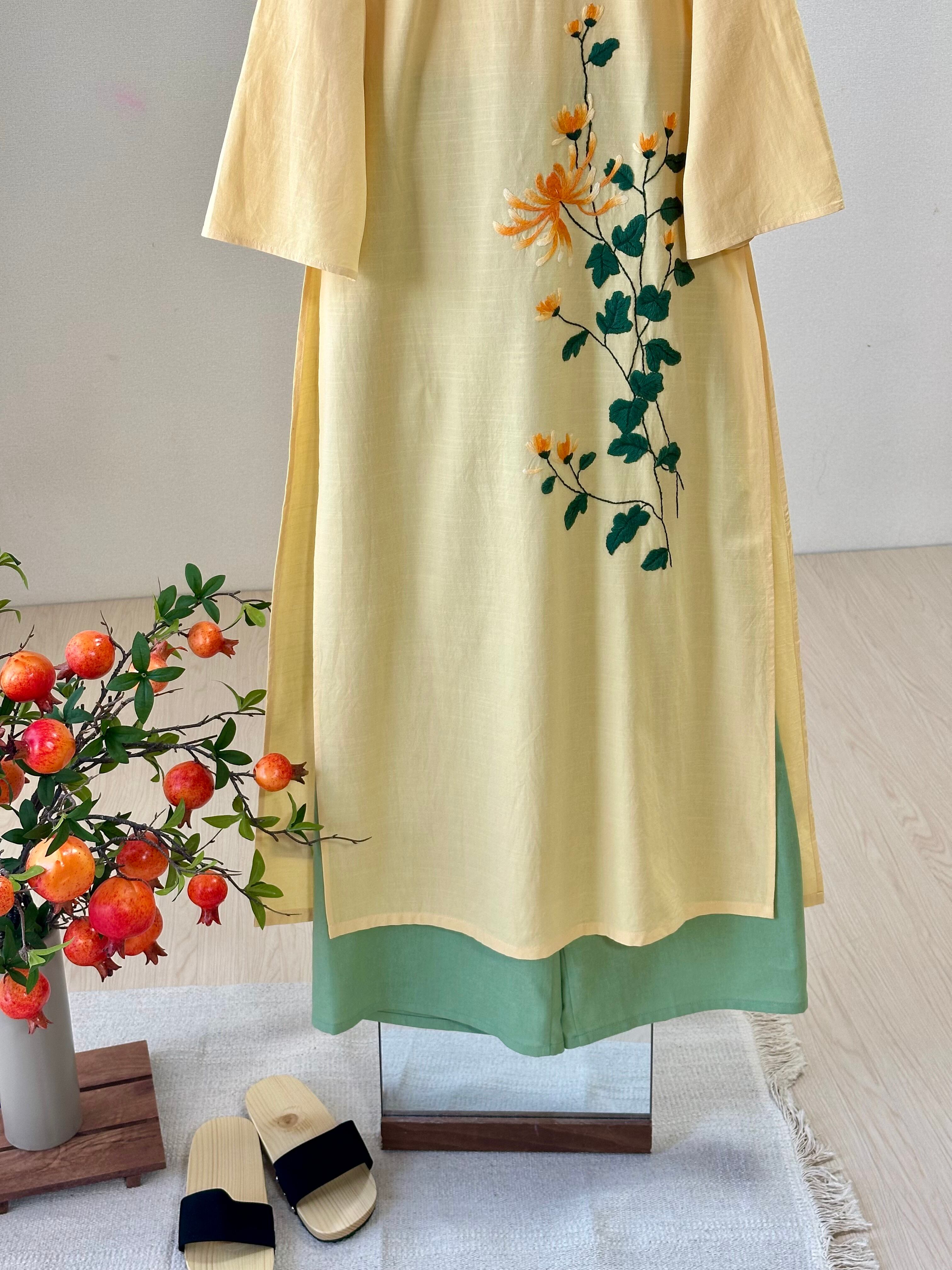 ➖デザイン: 昔から伝わってきました細身のシルエットと深いスリットが特徴で、シンプルのパンツを合わせて着こなすベトナムの正装になります