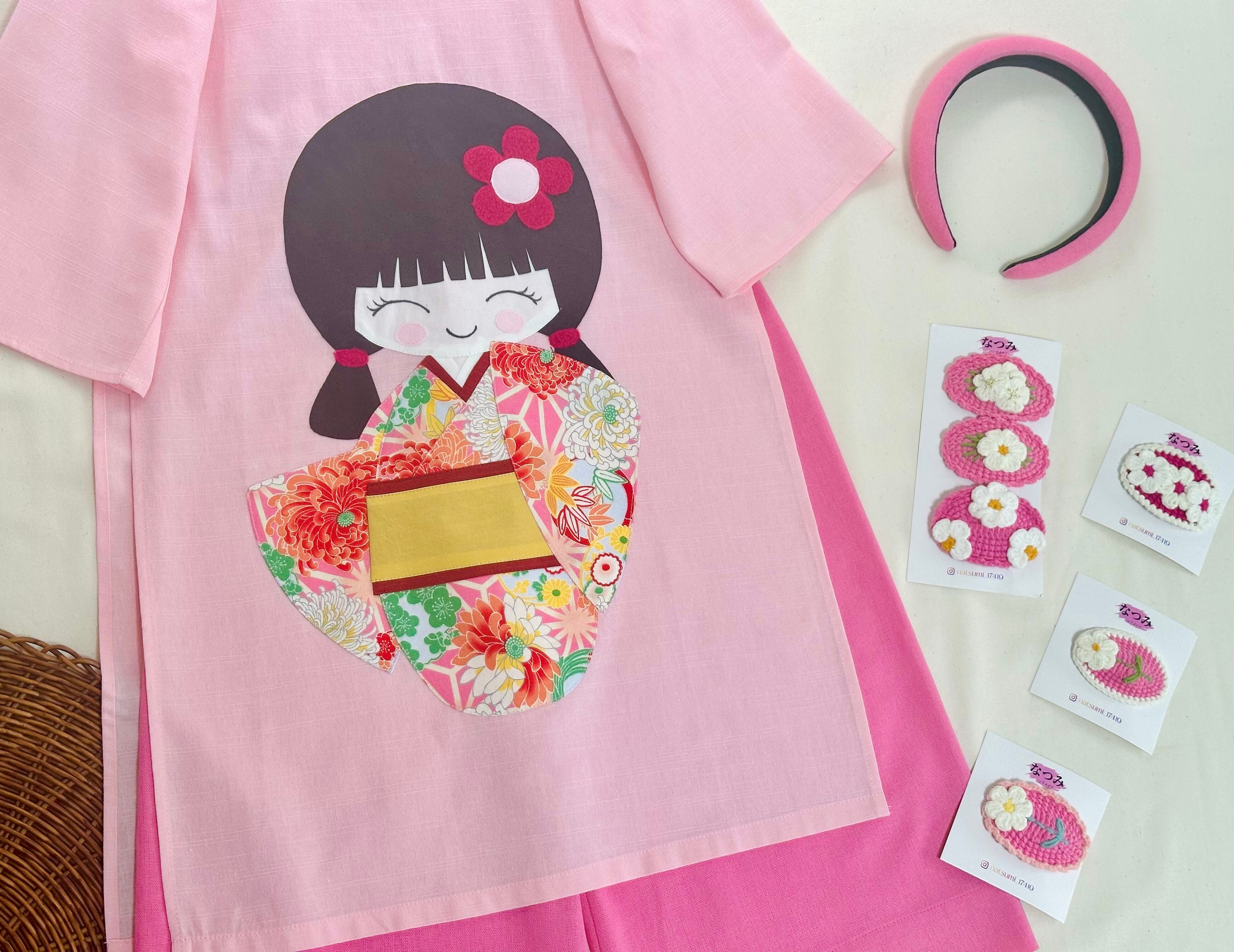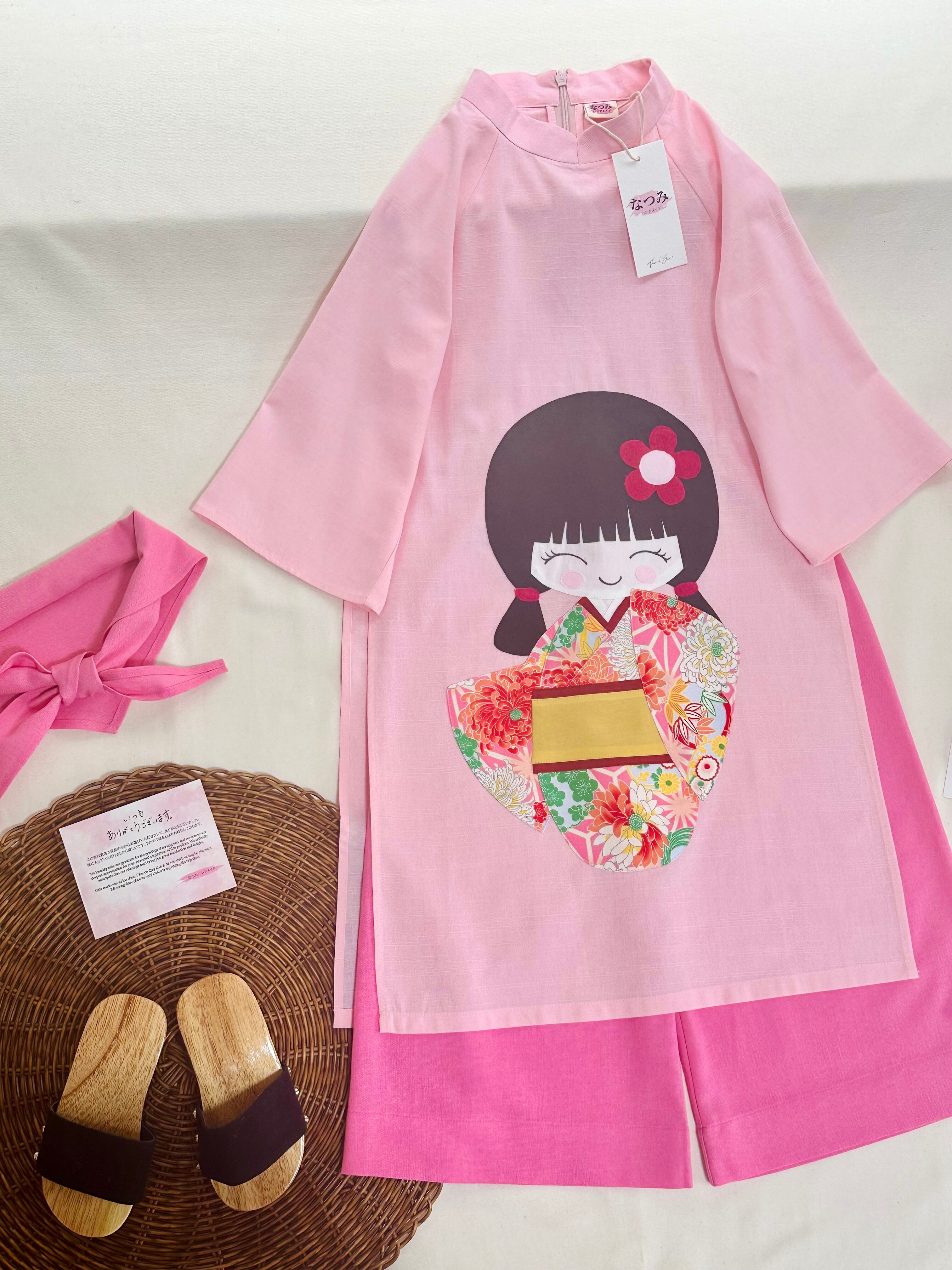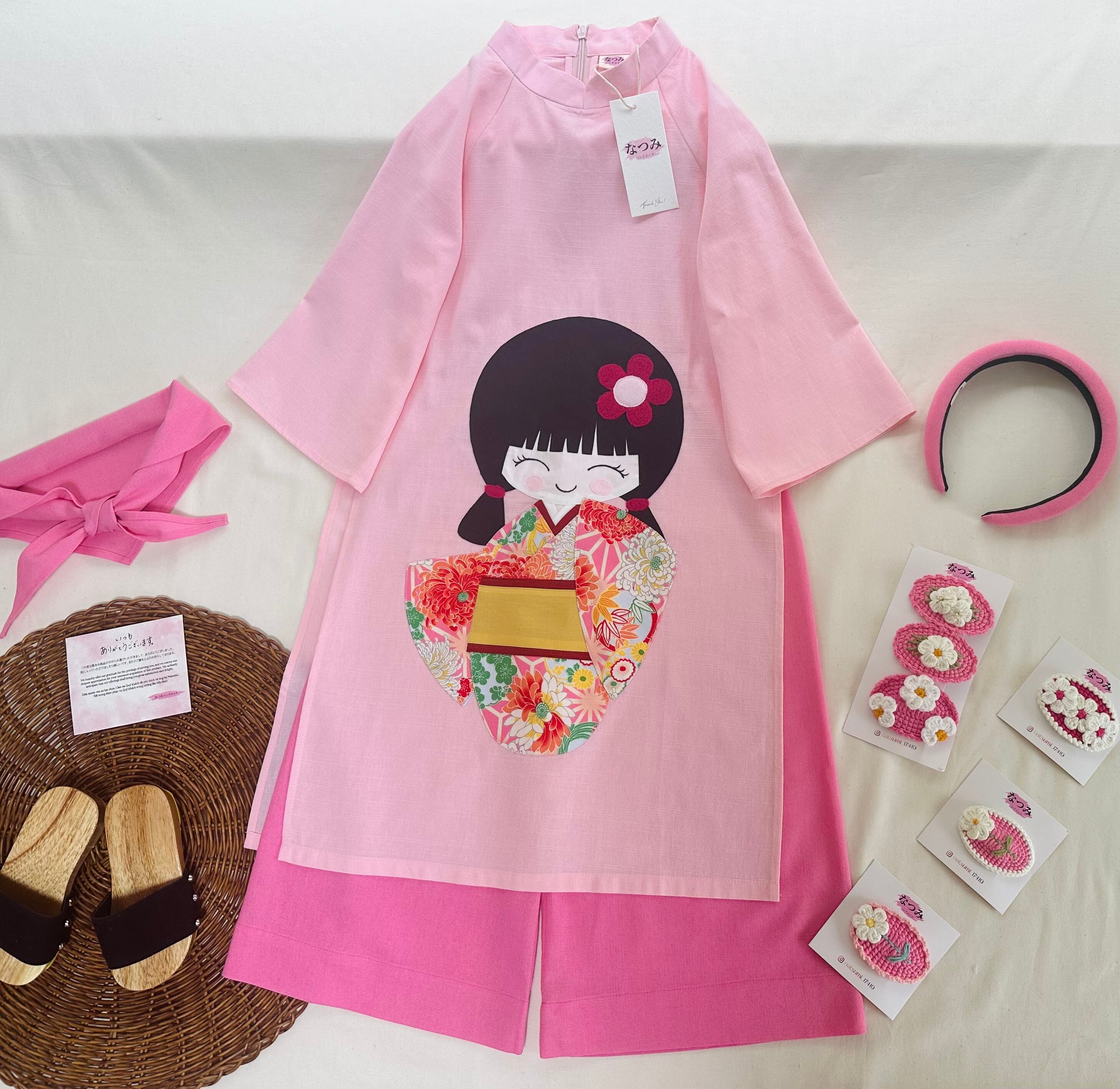 No.BB2523ハンドメイド女の子リネンベトナムアオザイセット➖可愛いキルト