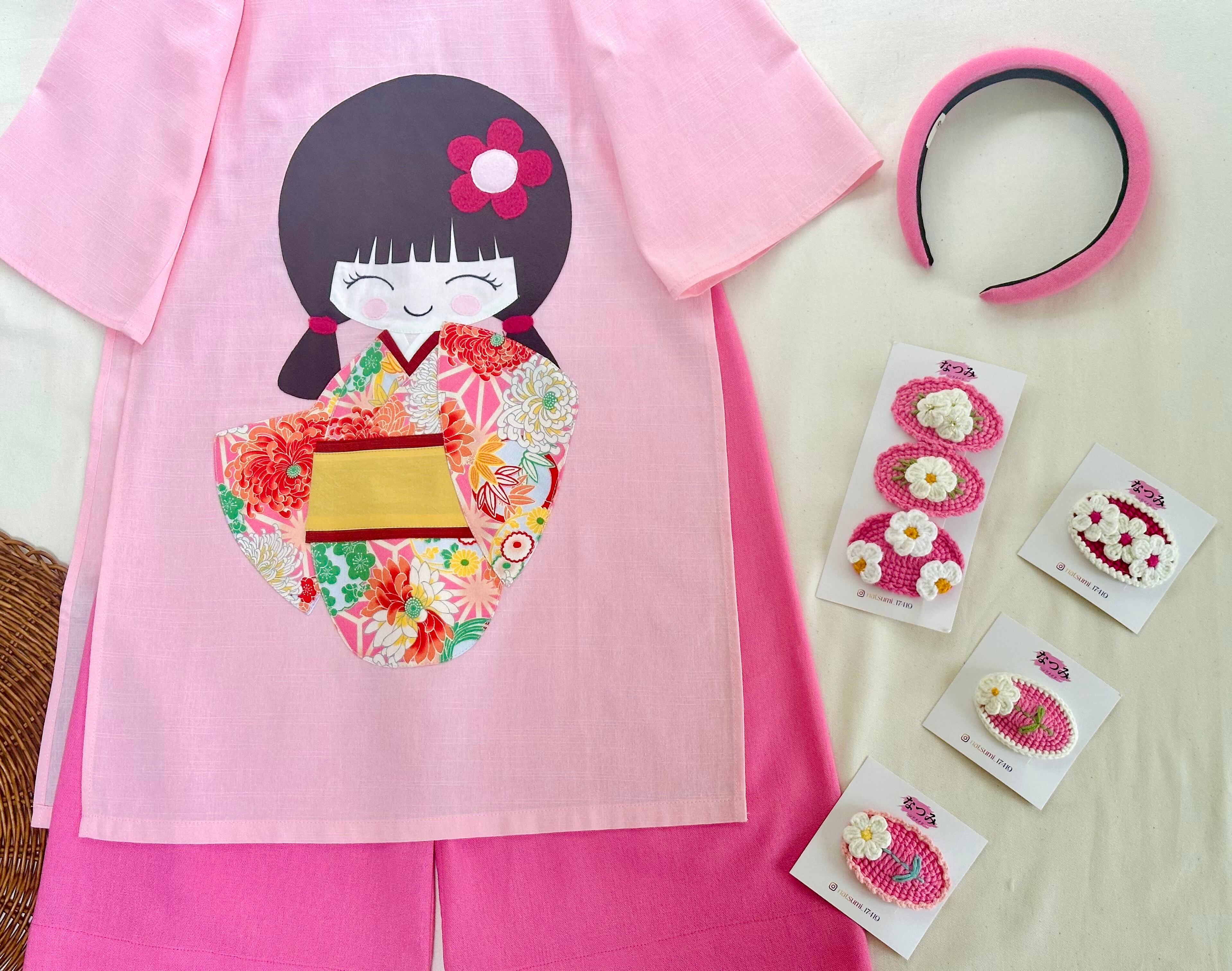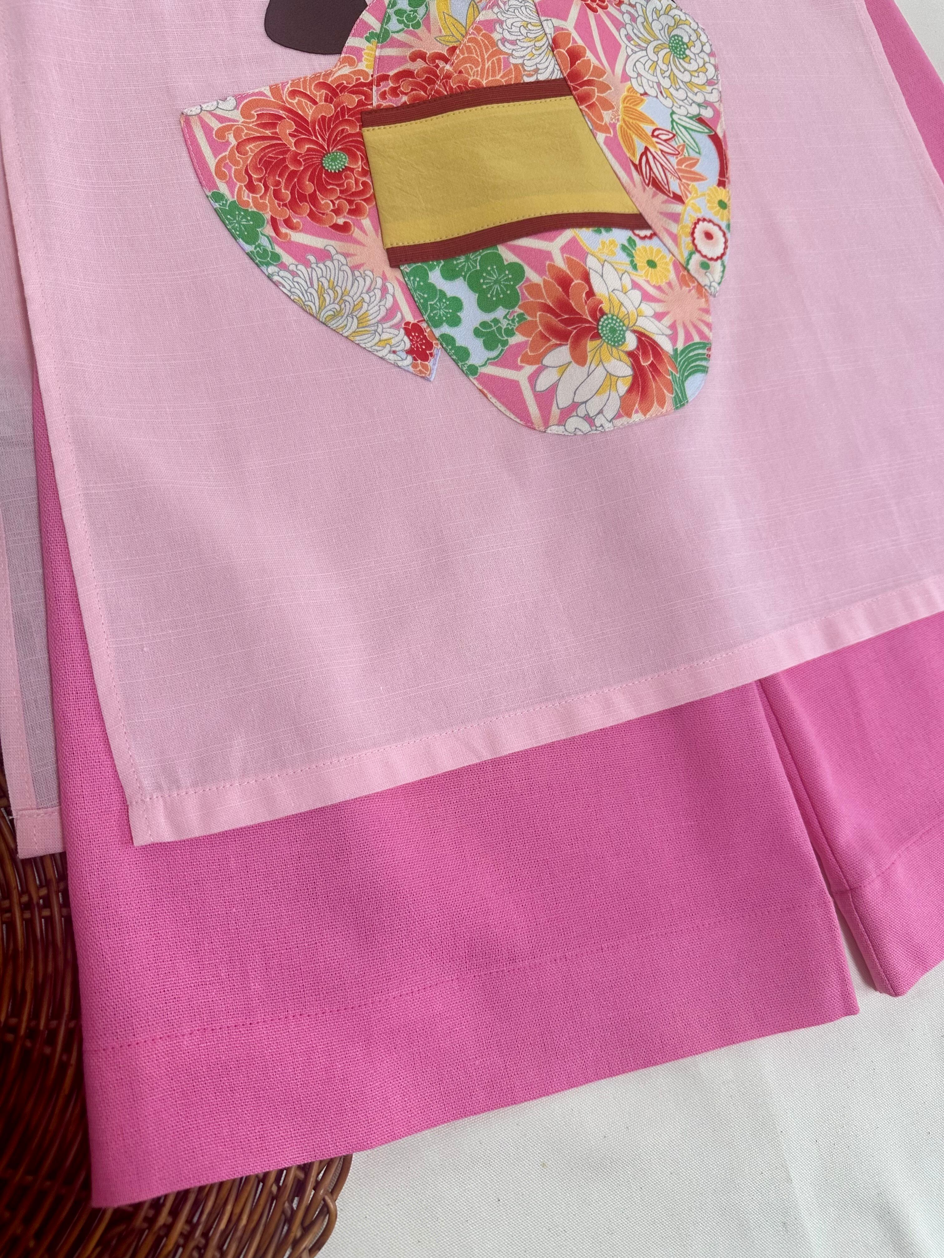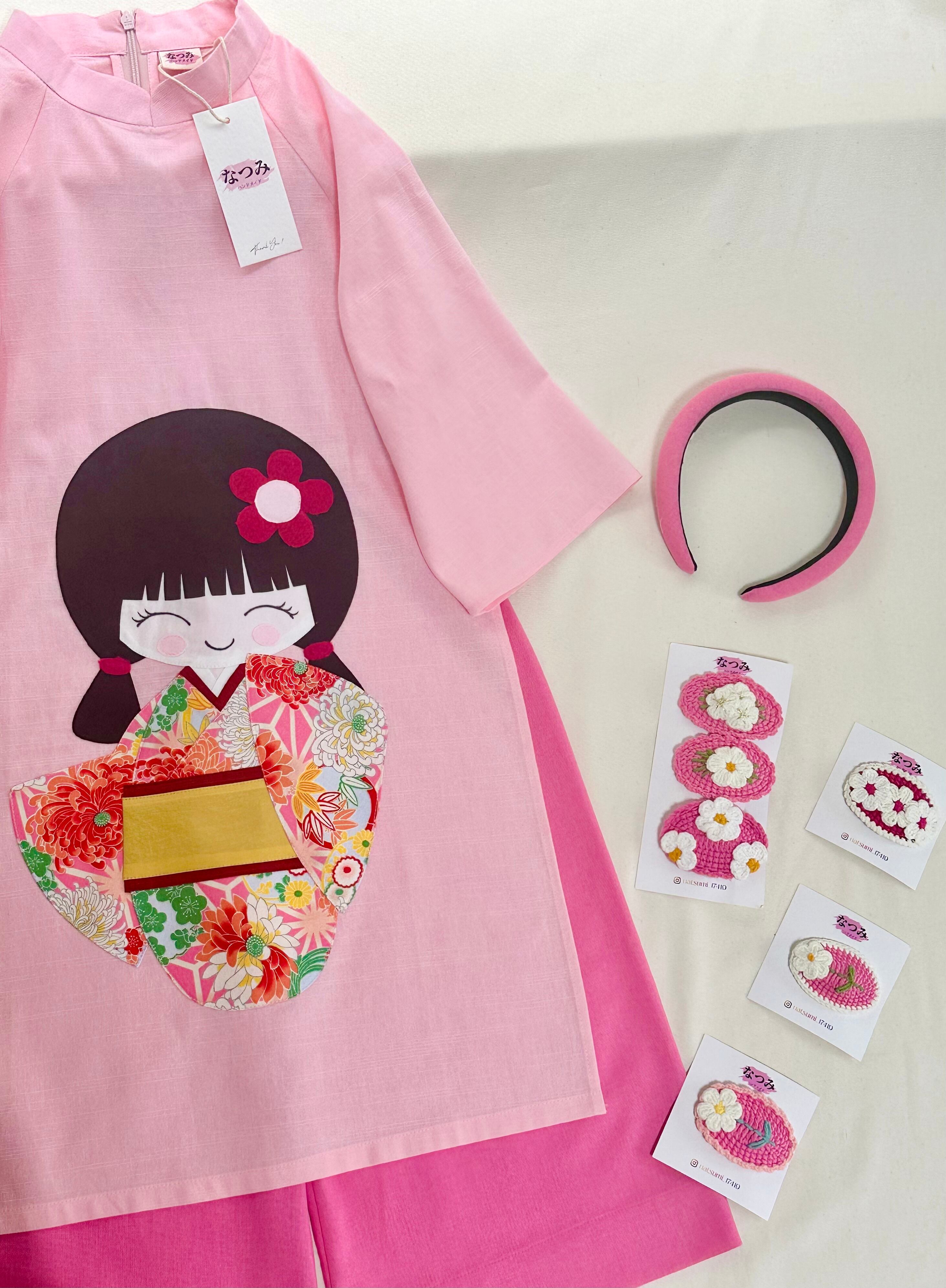 No.BB2523ハンドメイド女の子リネンベトナムアオザイセット➖可愛いキルト