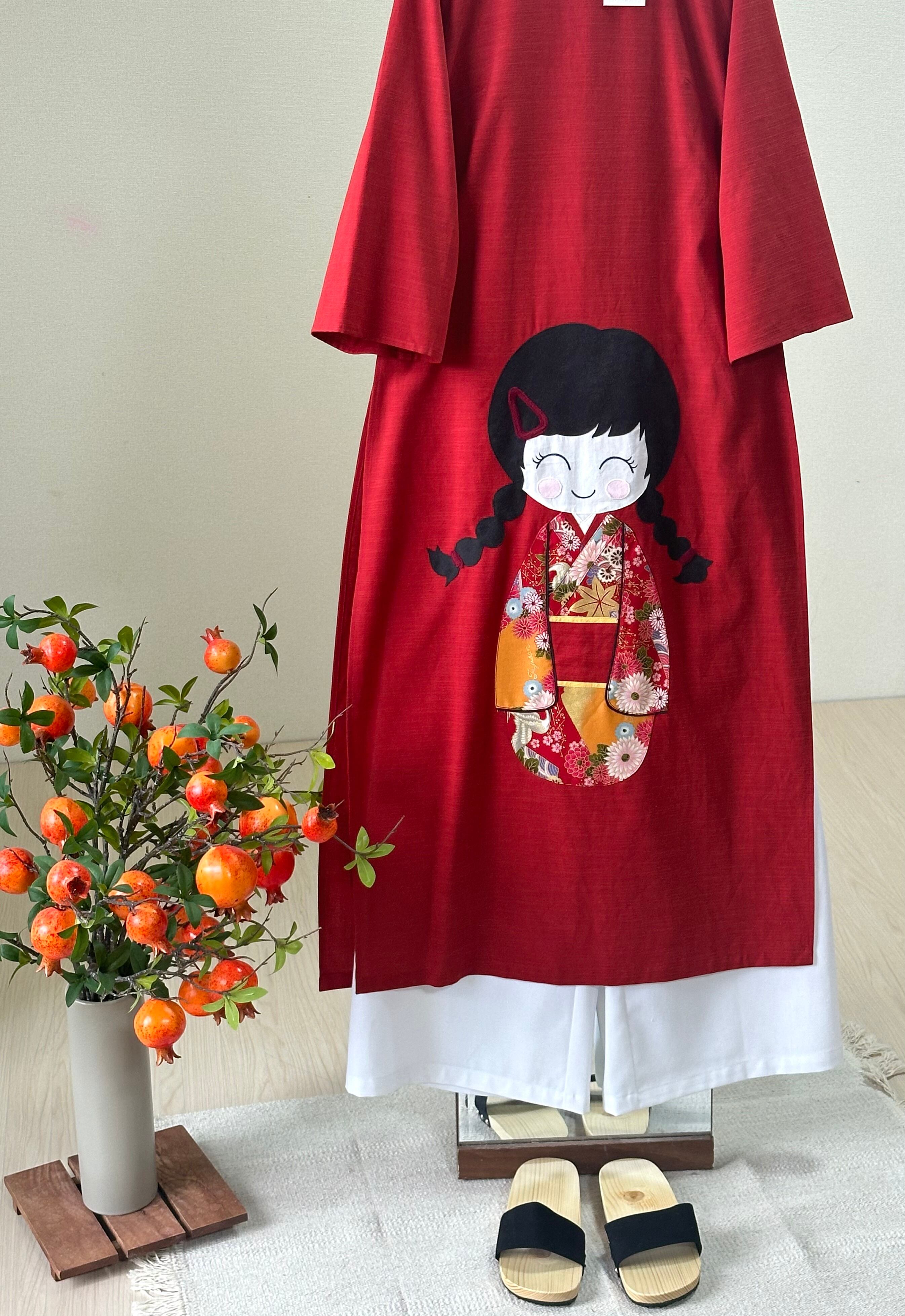 (レデイース)No.BB2524大人用リネンベトナムアオザイセット➖可愛いキルト