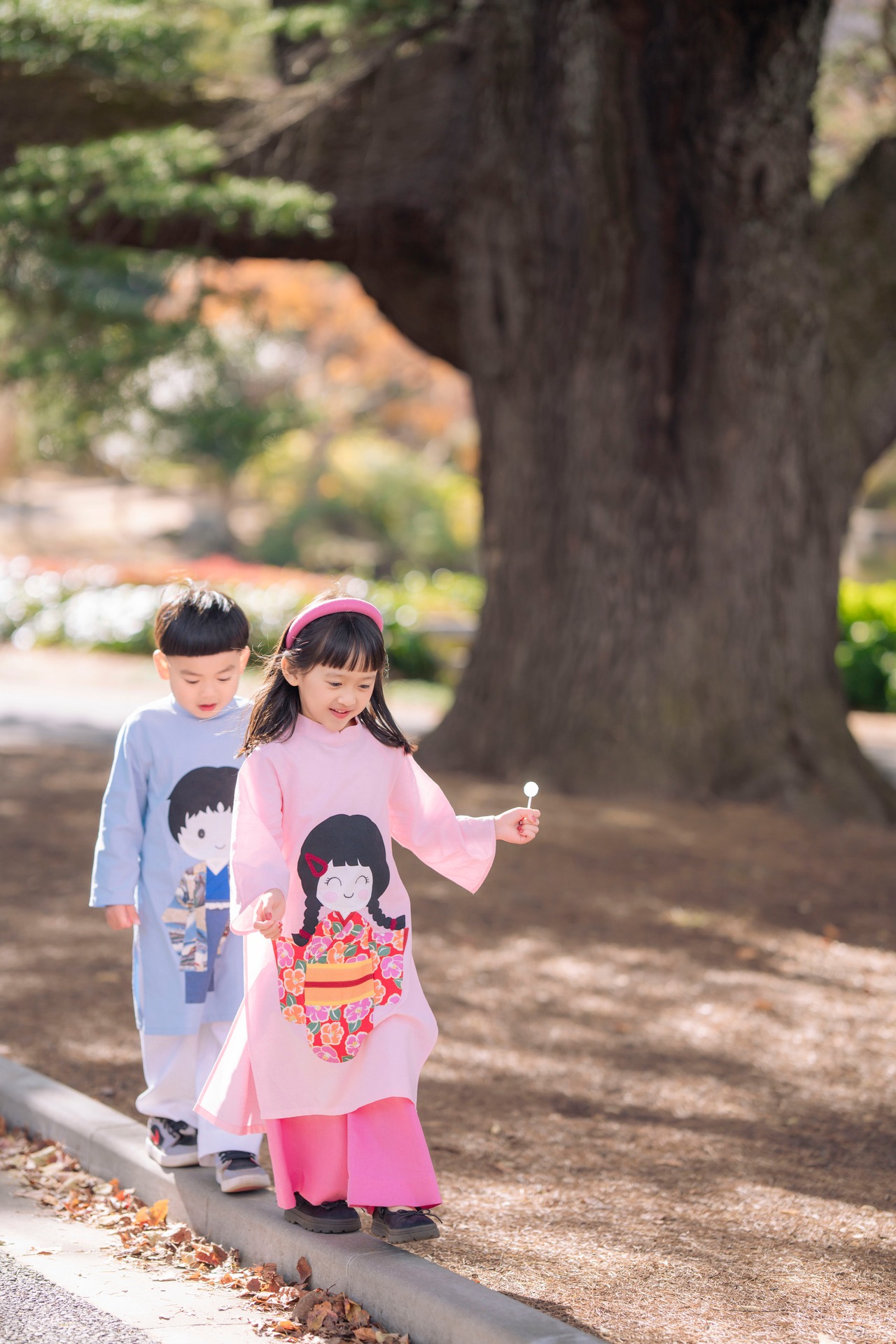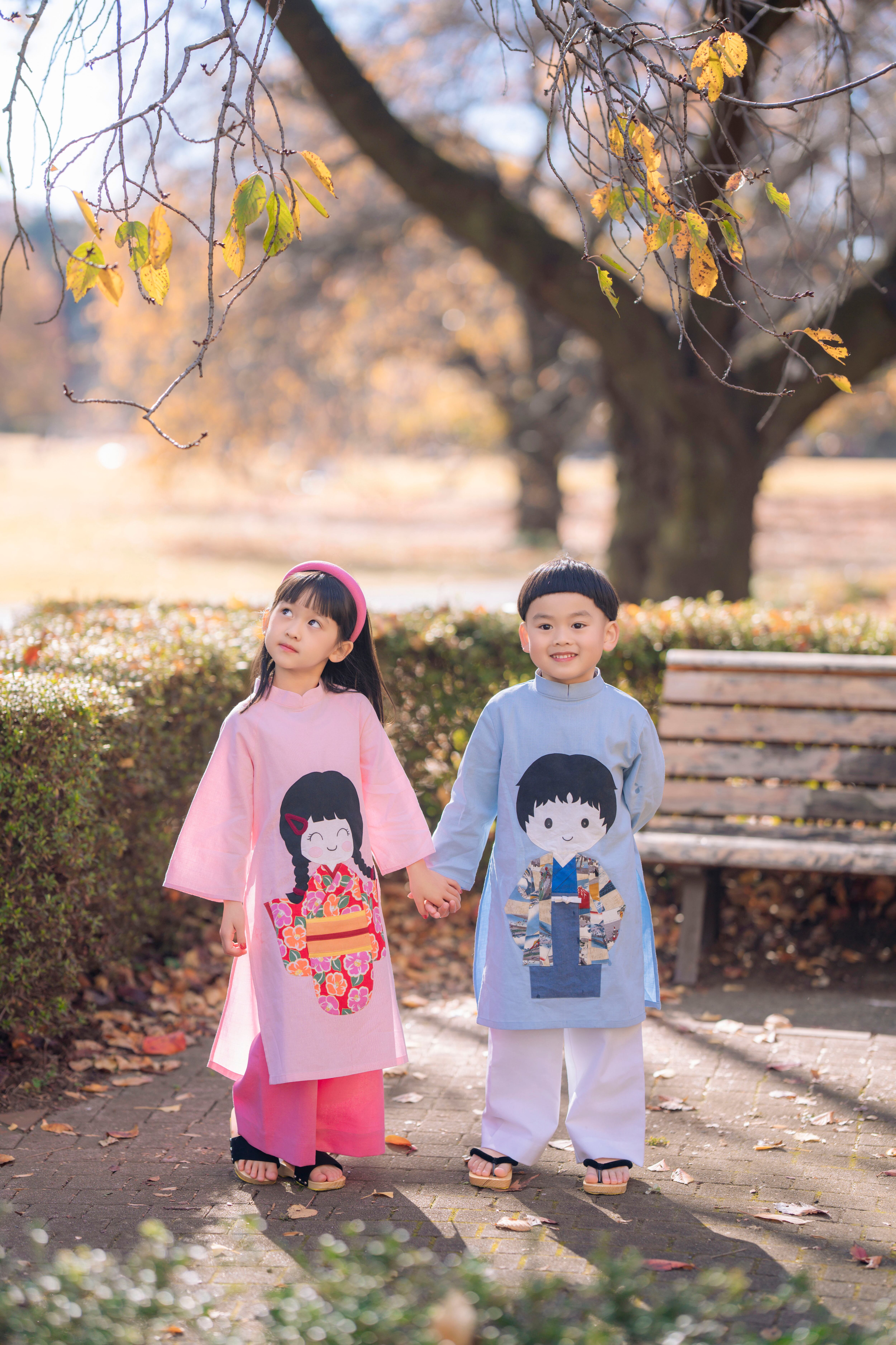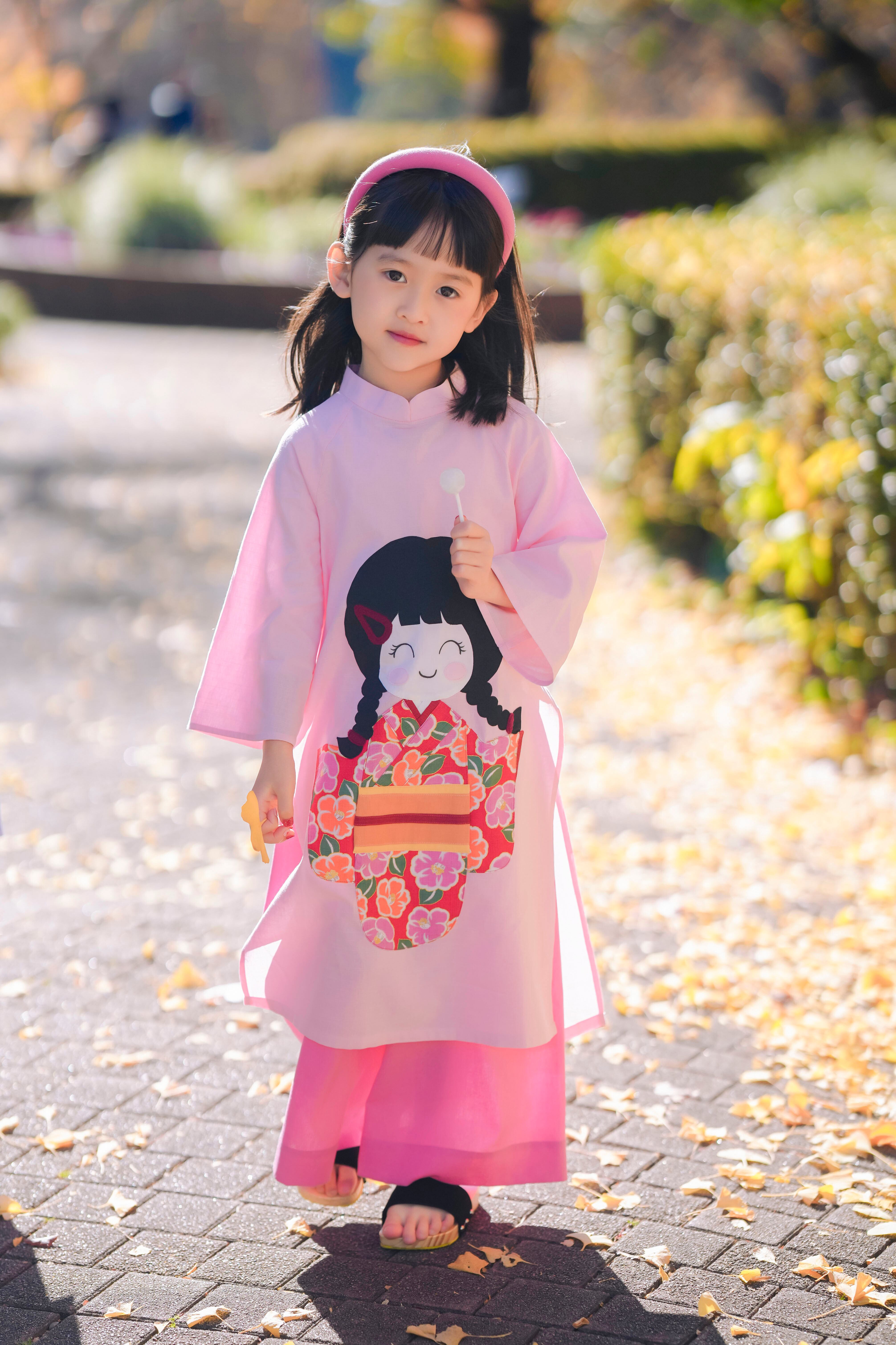 こちらの子供用アオザイは、普段着としても楽しめるように、ワンピースのような可愛らしいデザインに仕上げました。