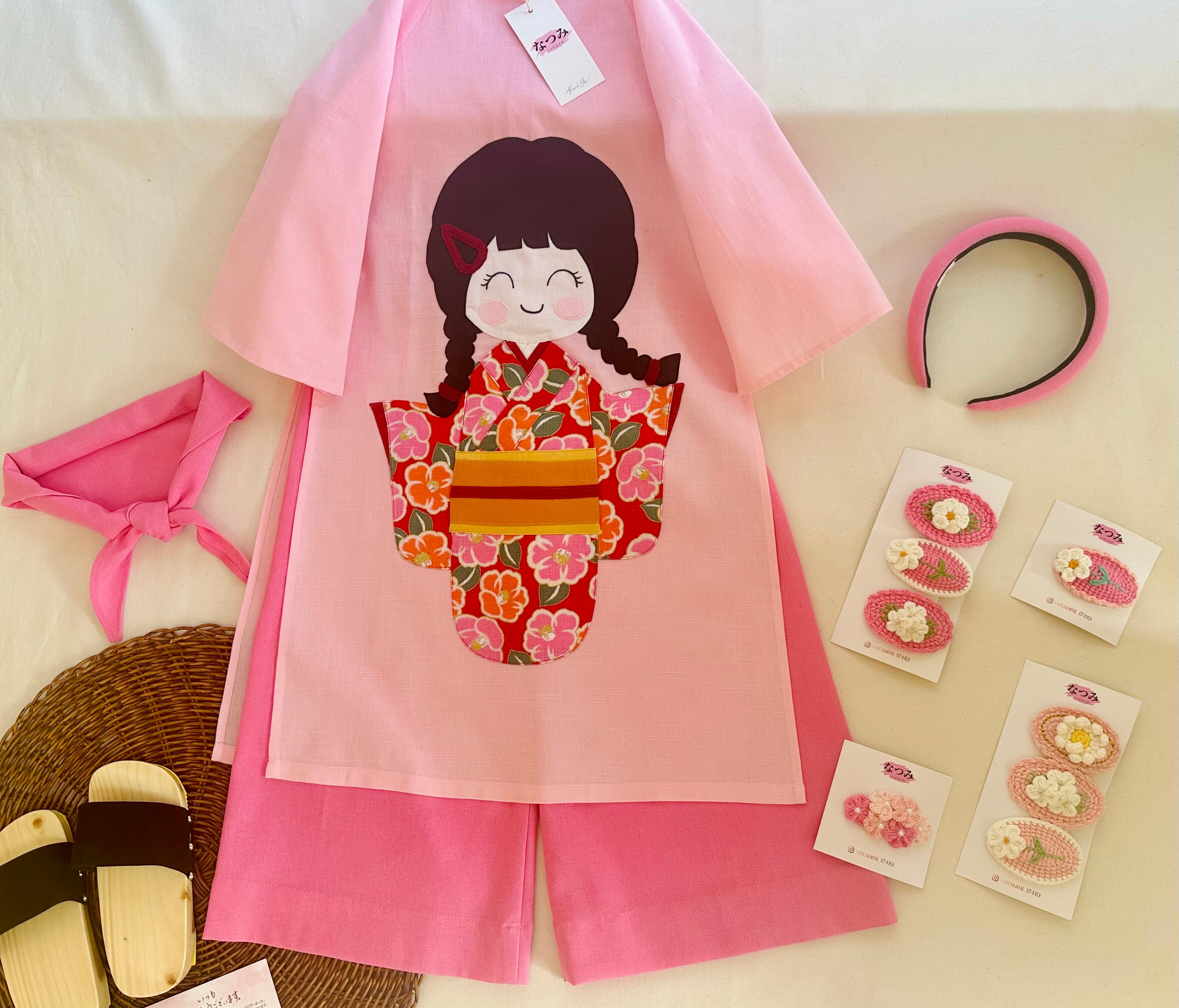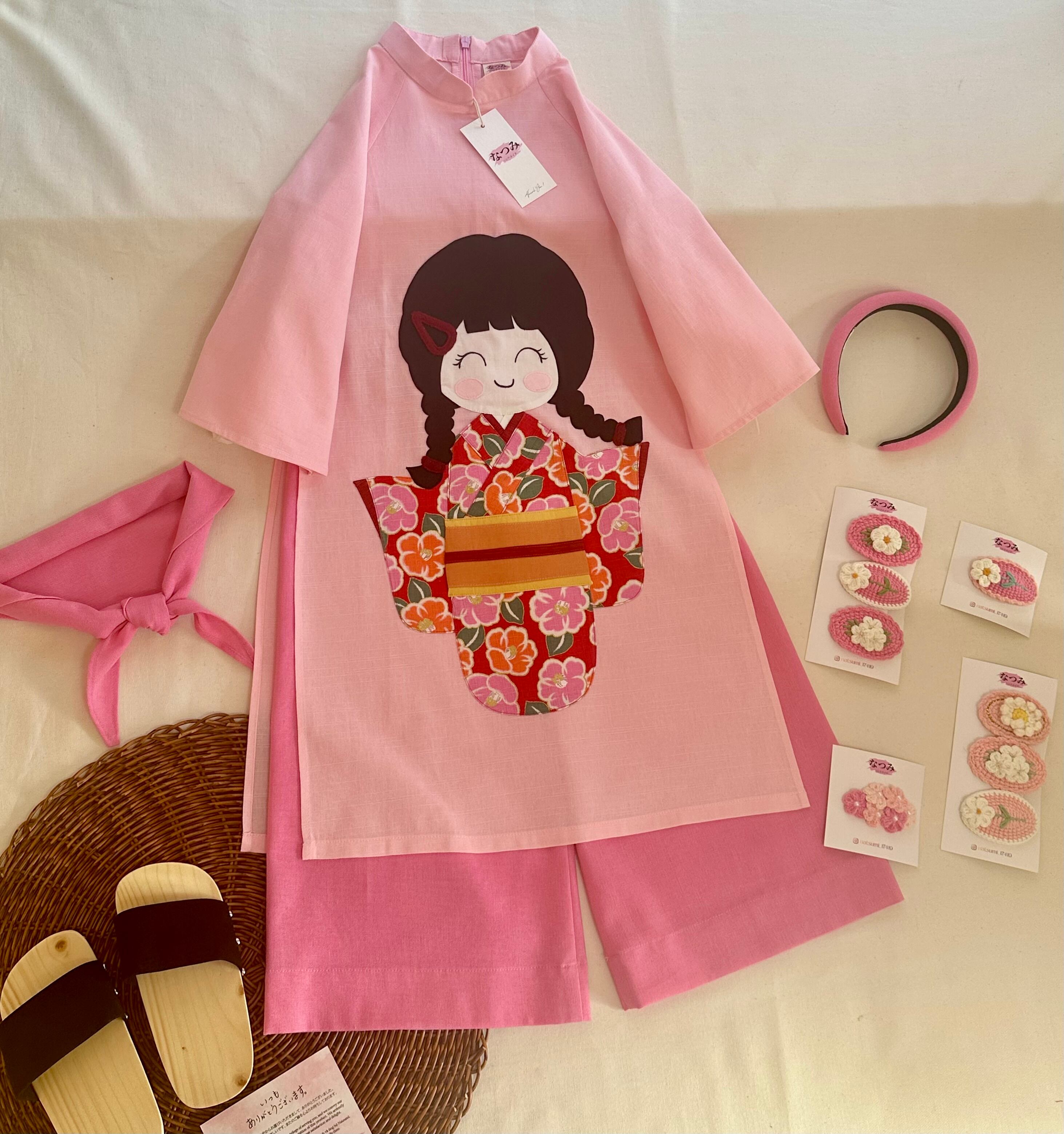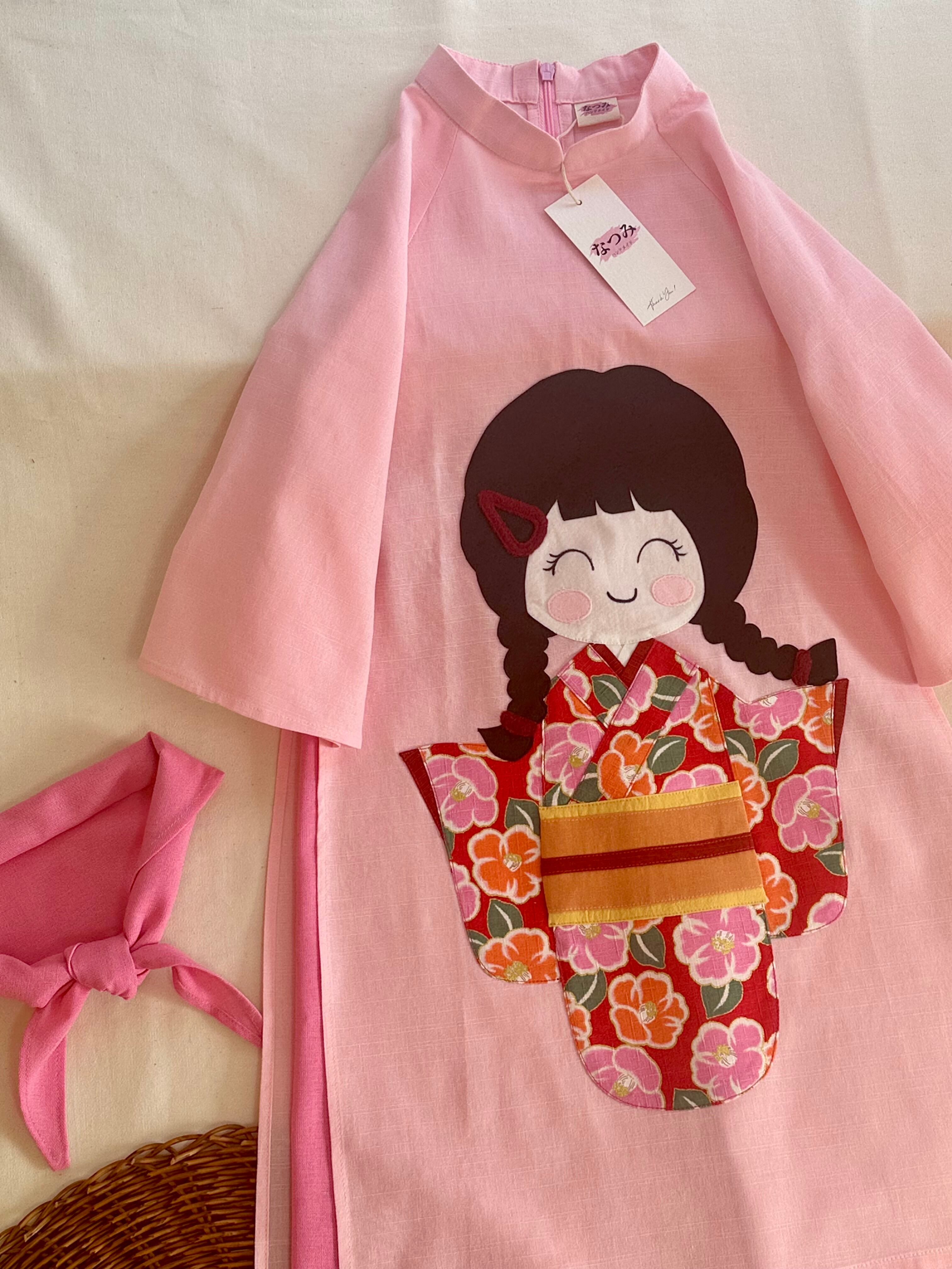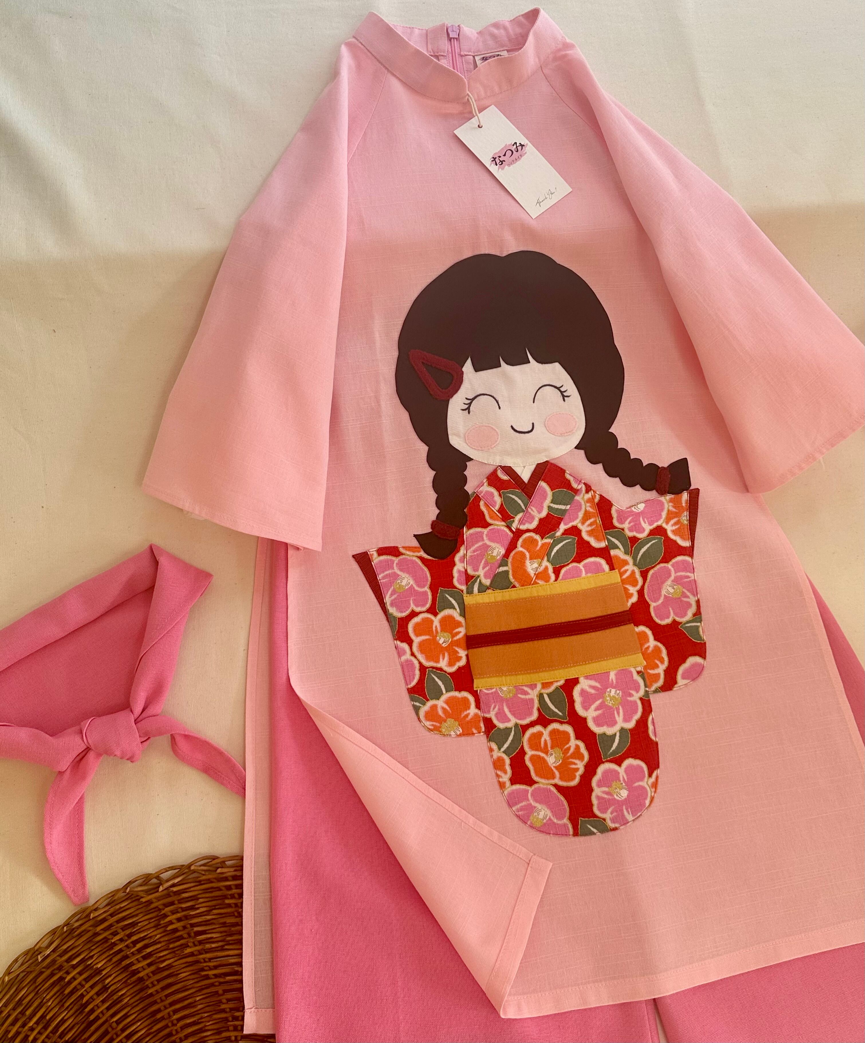 No.BB2527女の子リネンベトナムアオザイセット➖可愛いキルト
