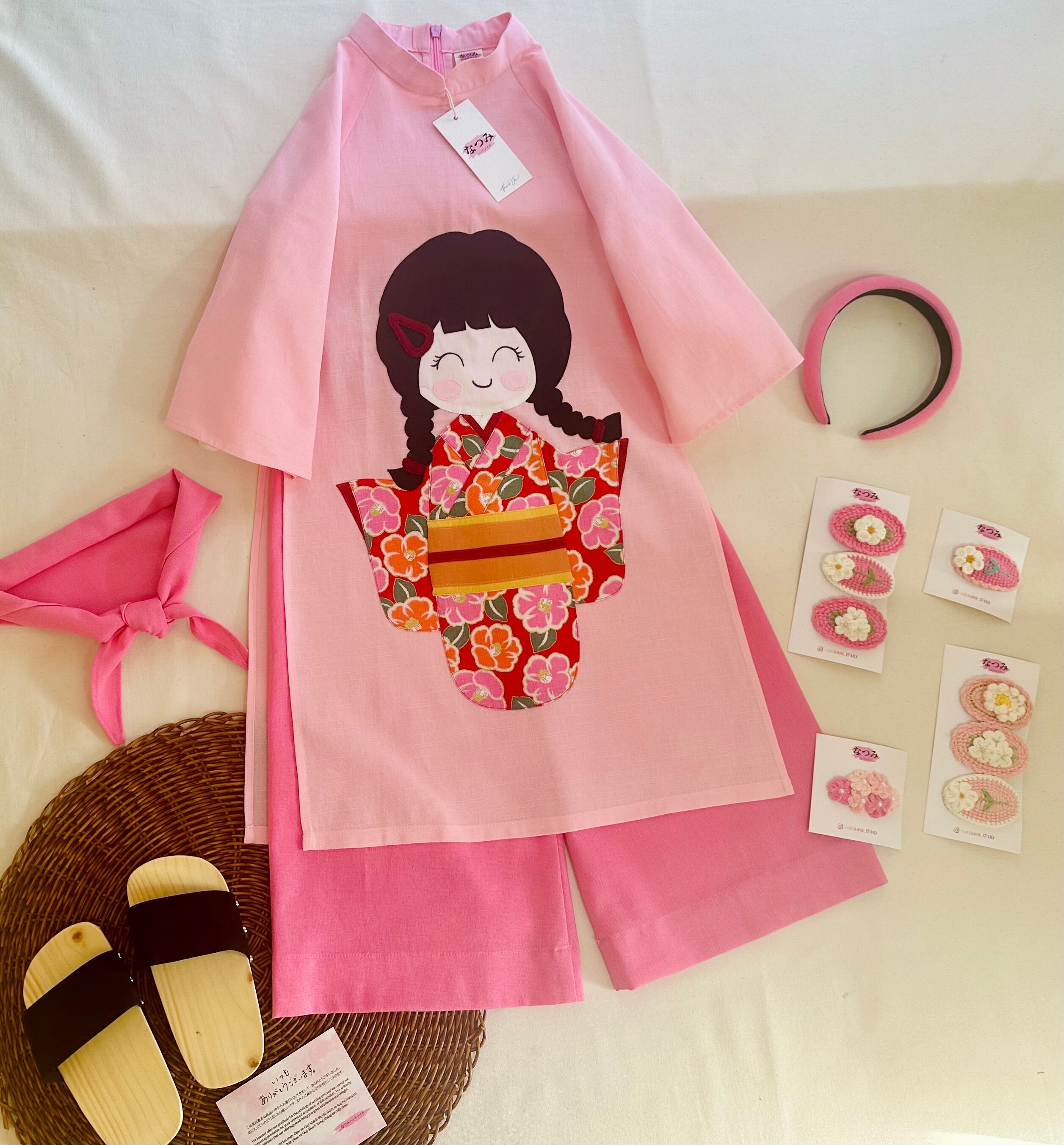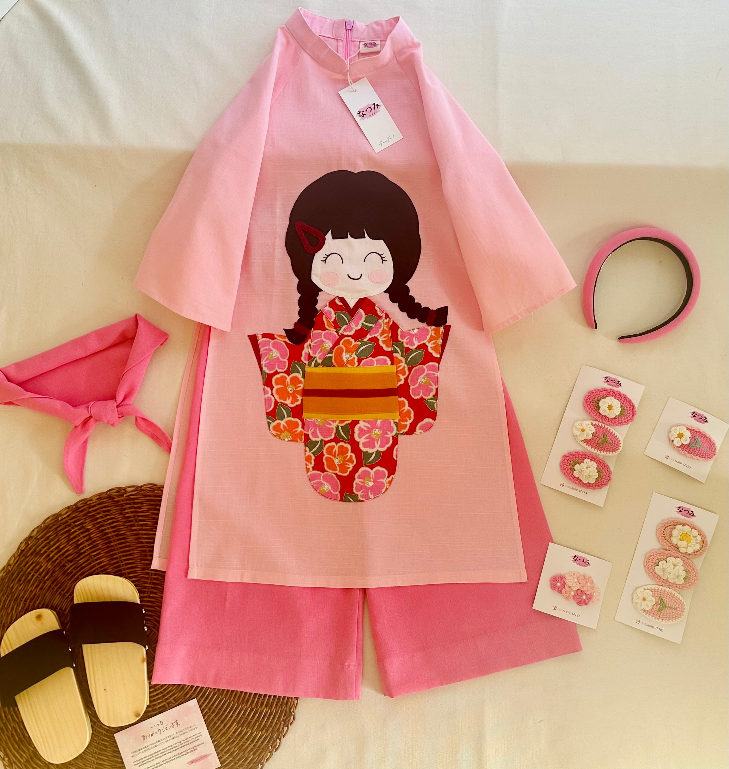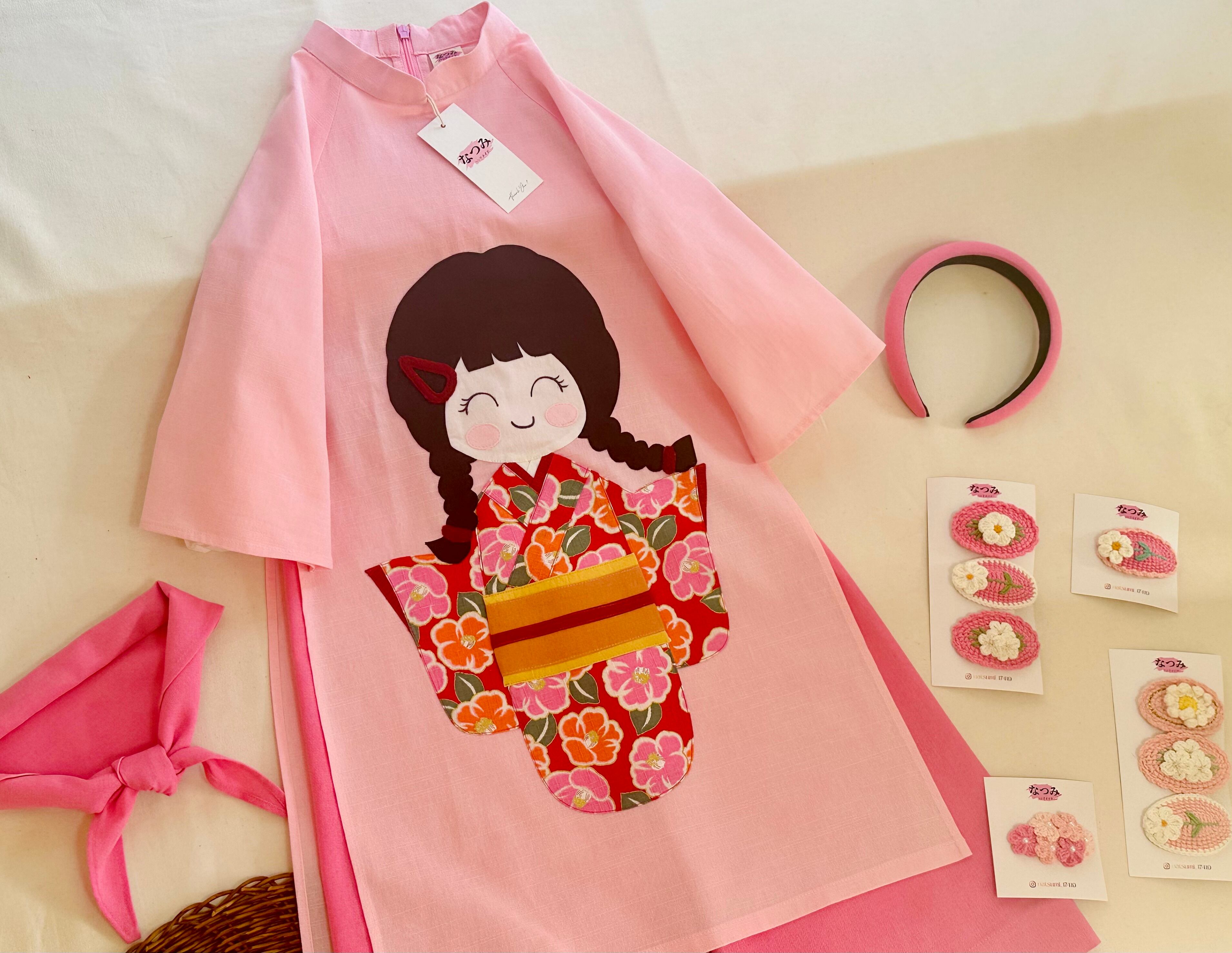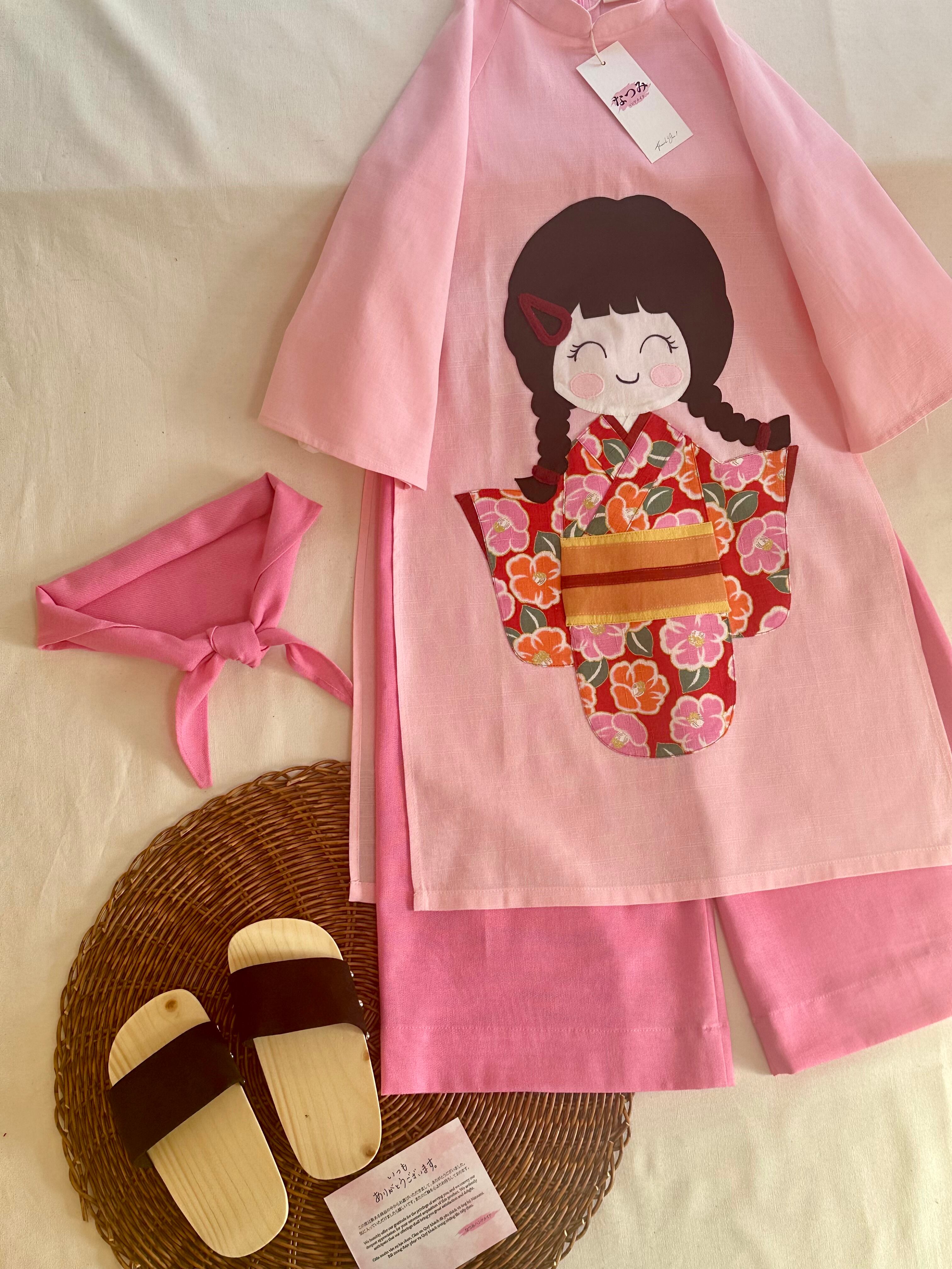 No.BB2527女の子リネンベトナムアオザイセット➖可愛いキルト