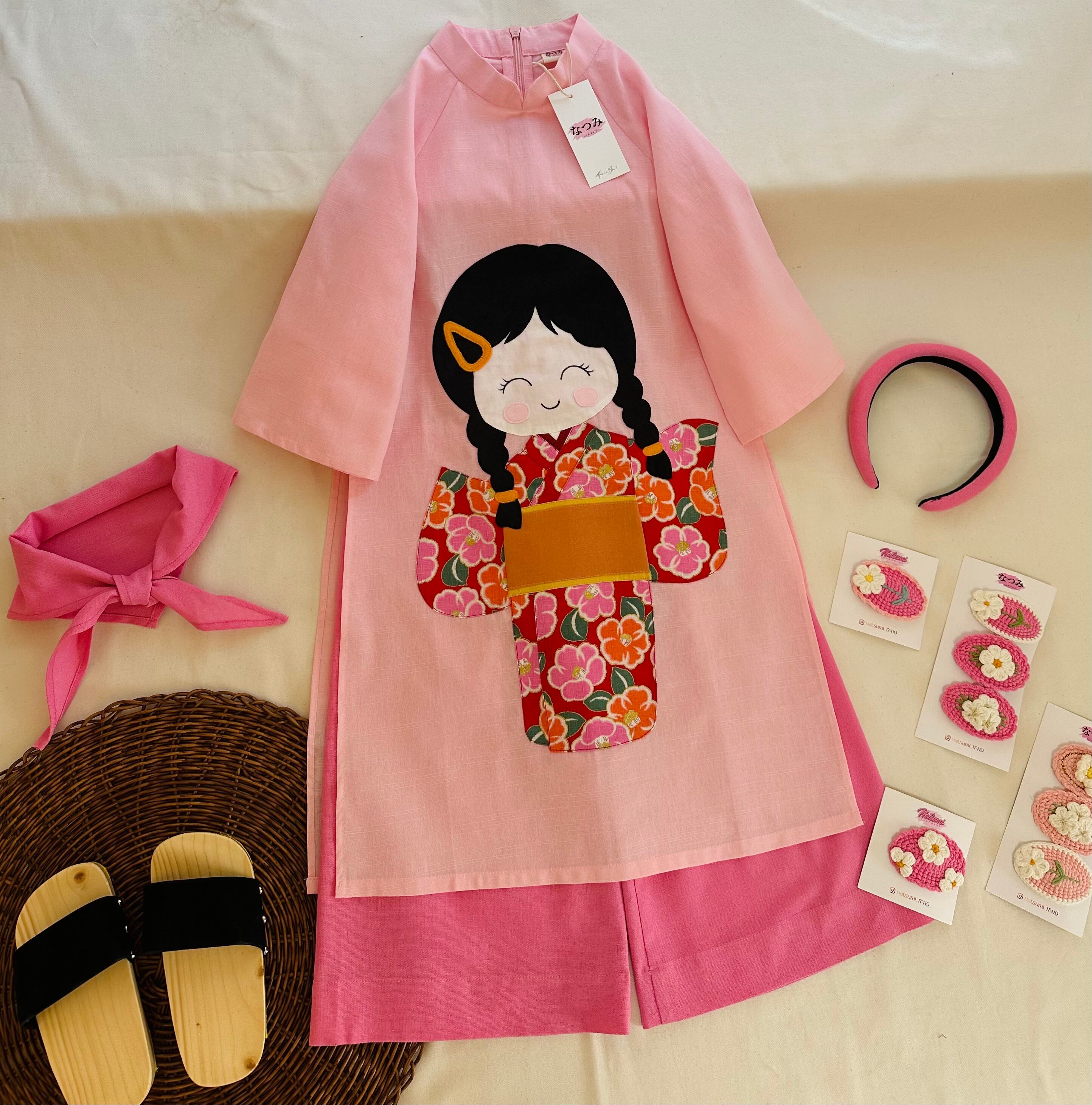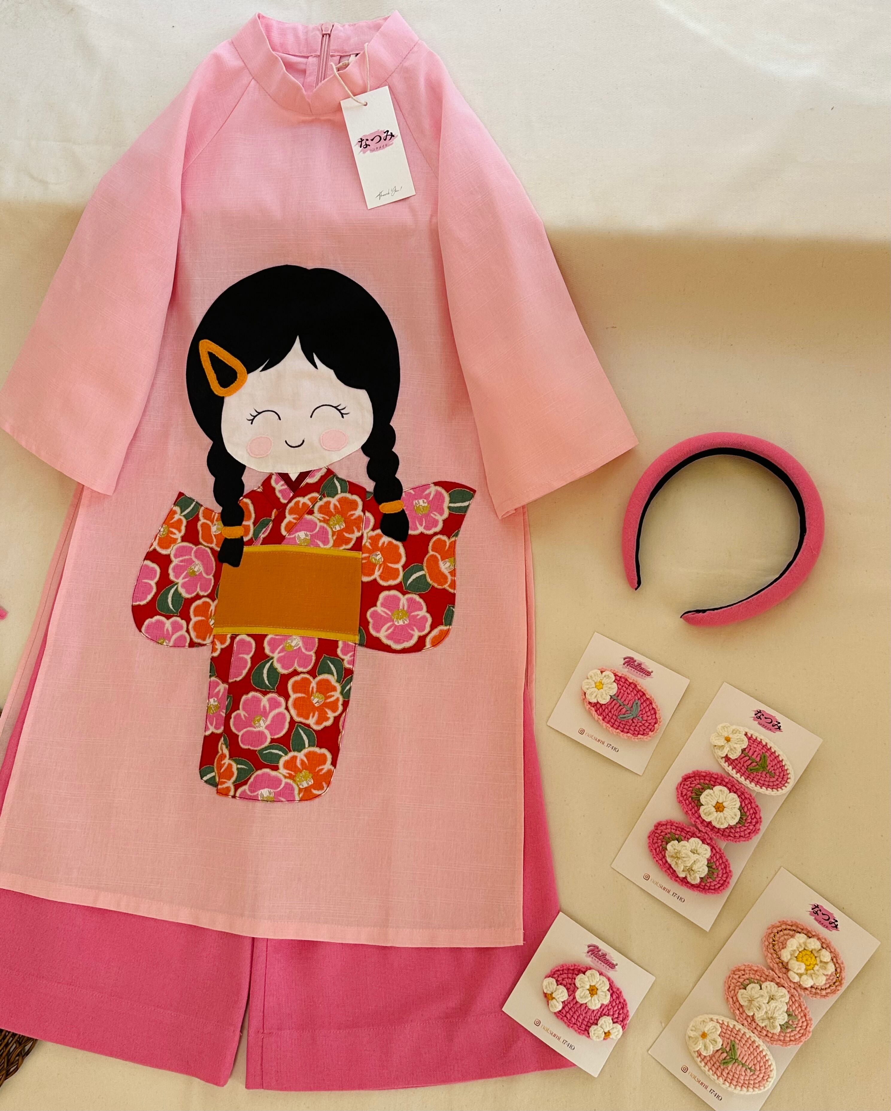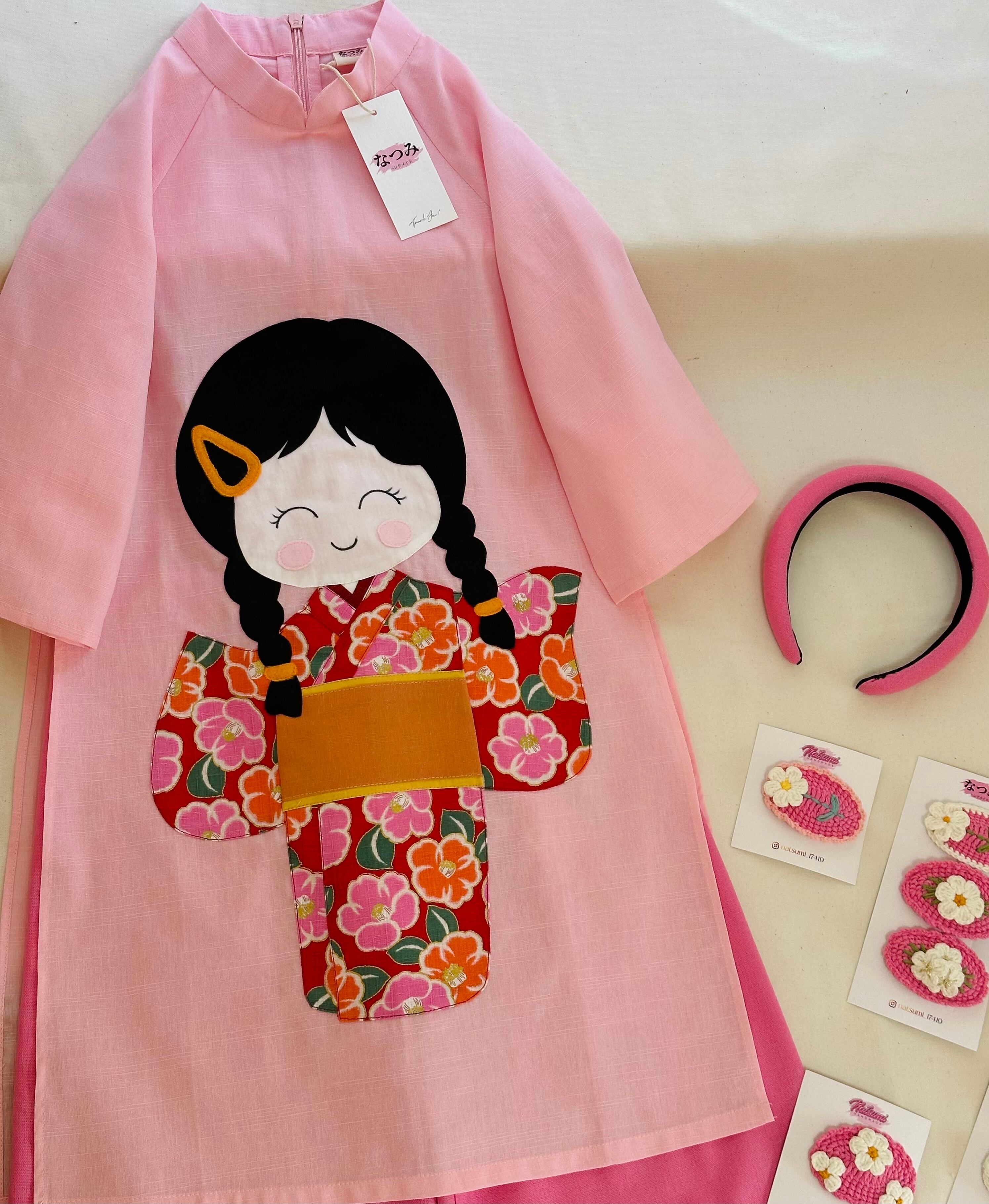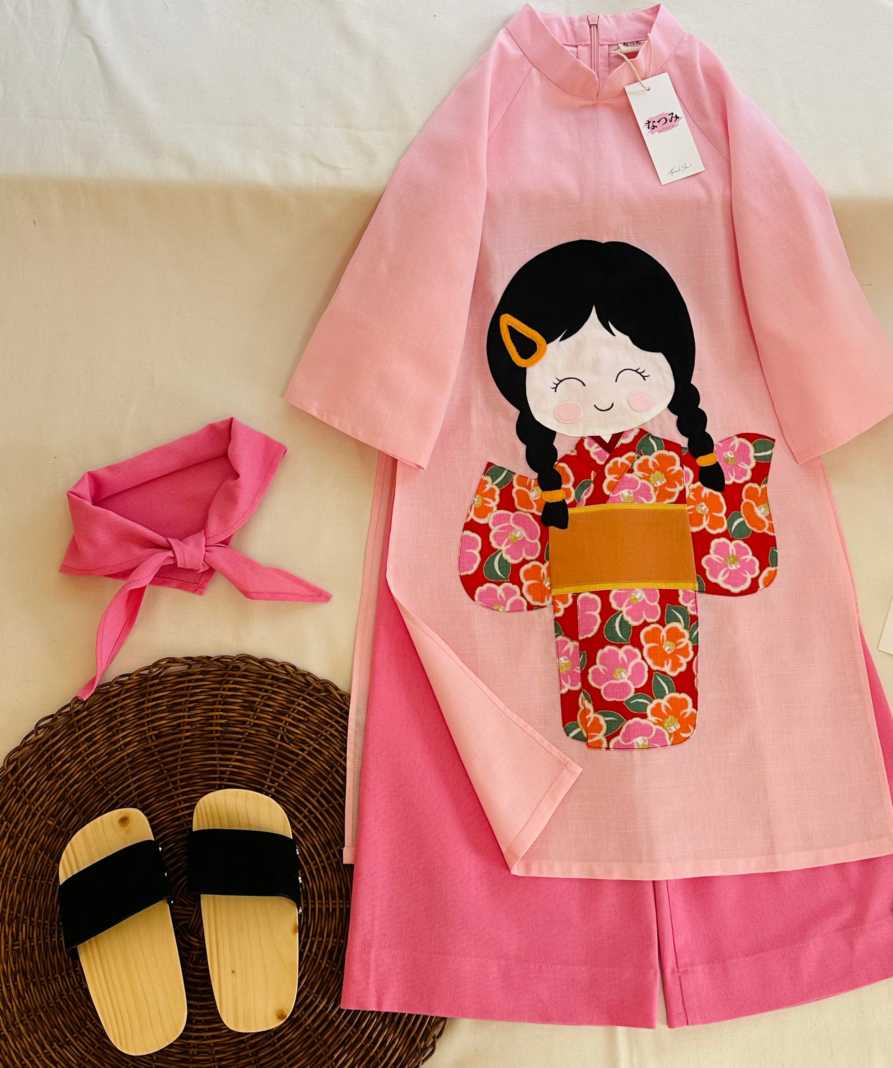 No.BB2530女の子リネンベトナムアオザイセット➖可愛いキルト