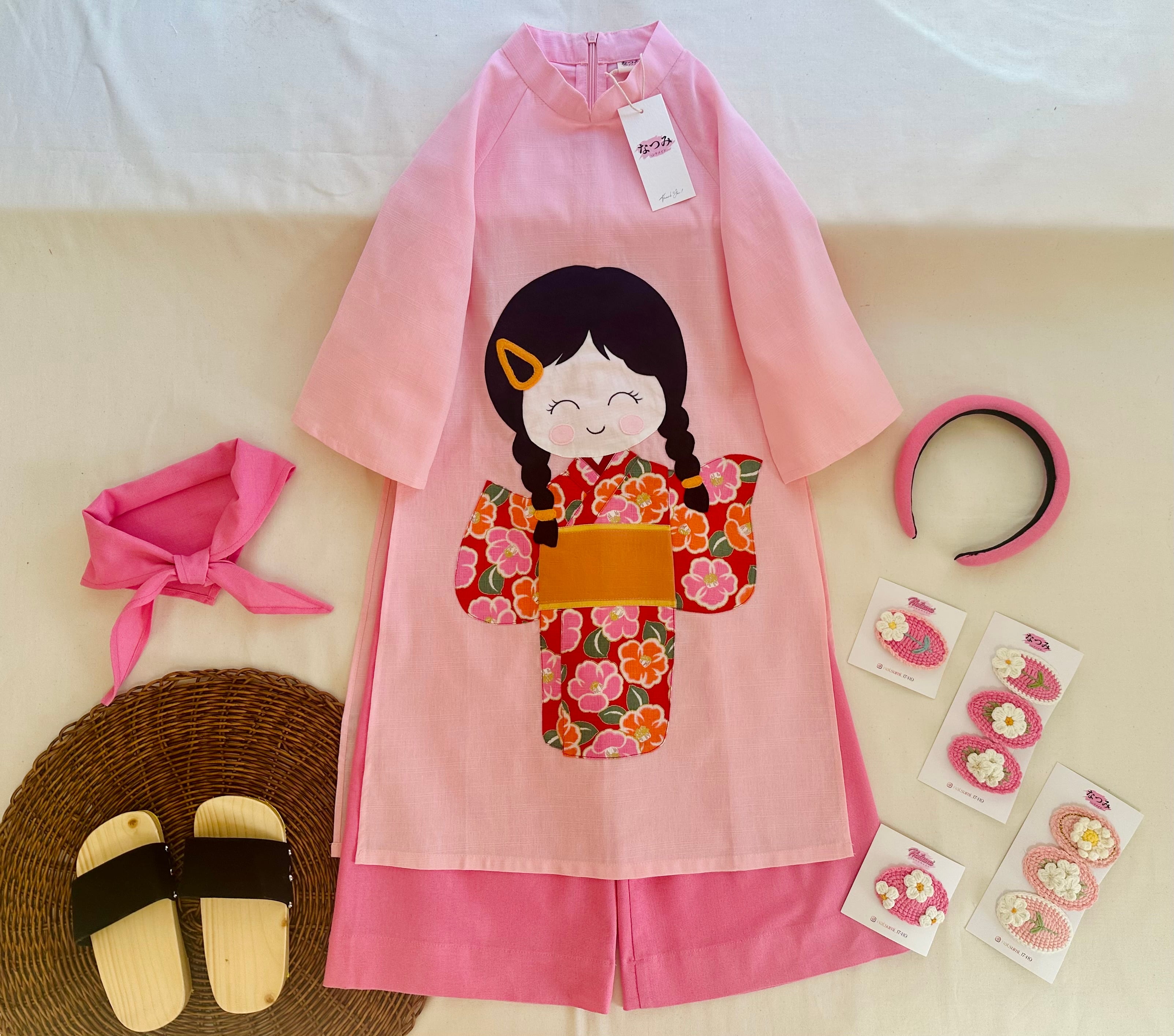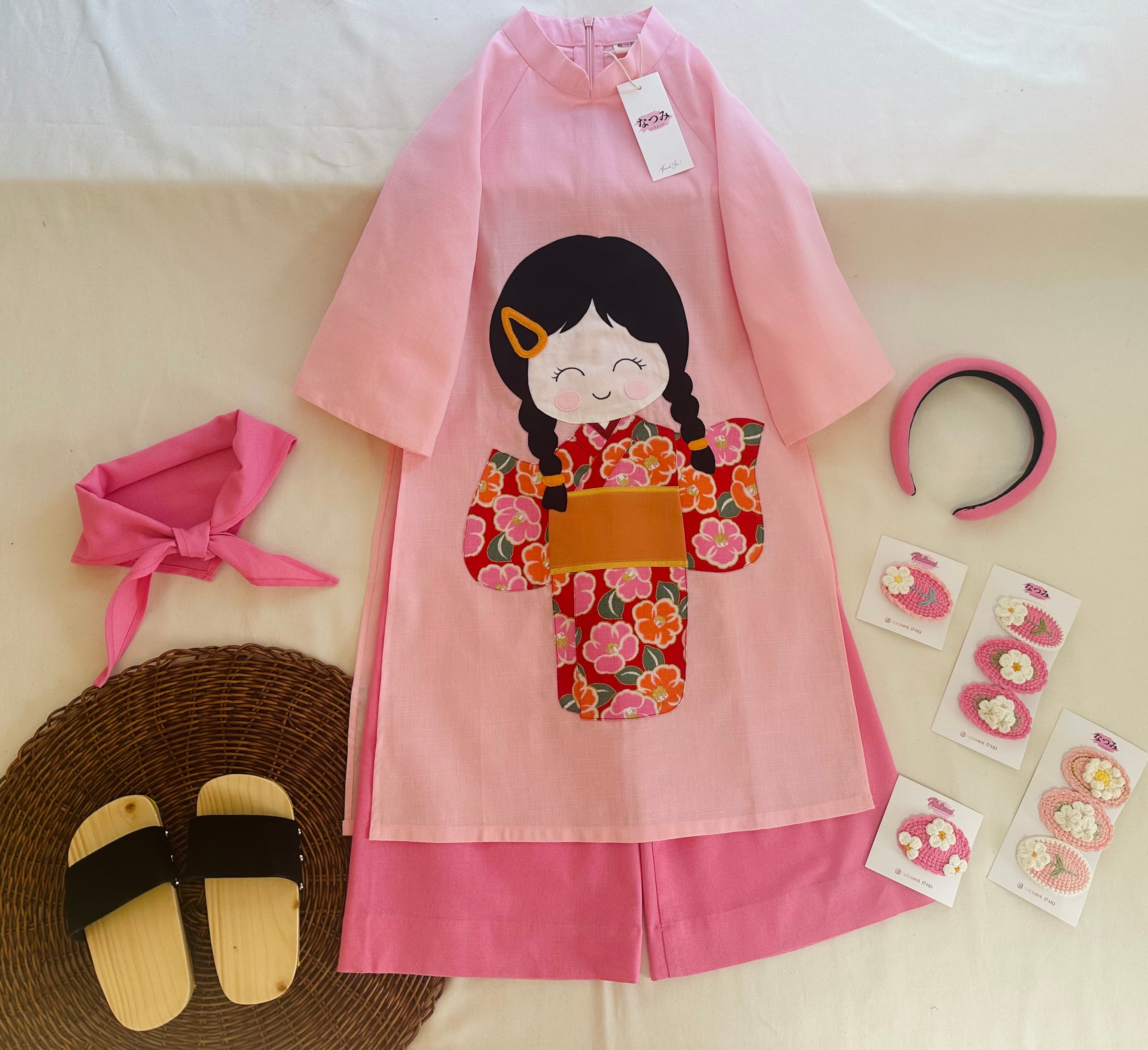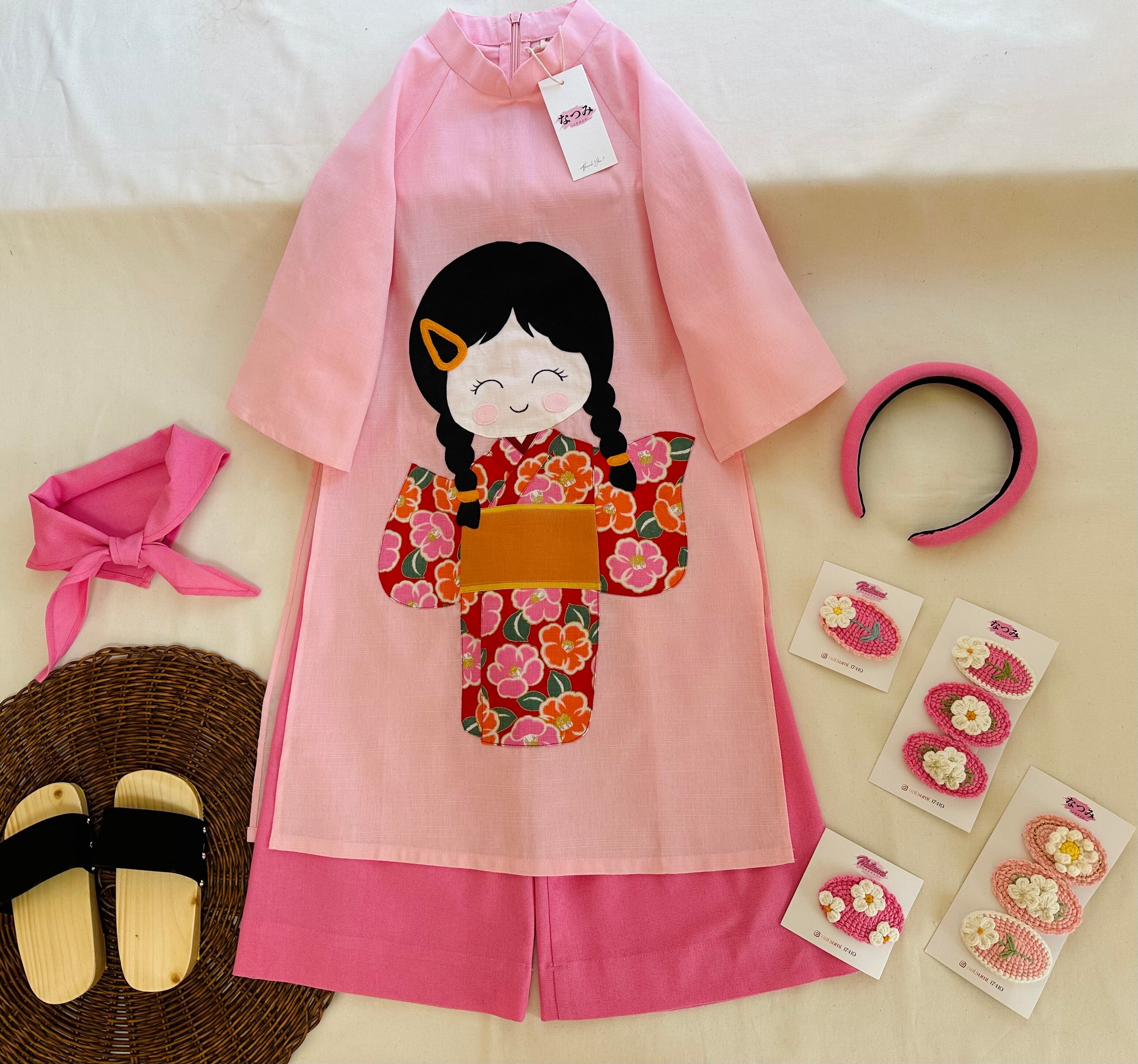 No.BB2530女の子リネンベトナムアオザイセット➖可愛いキルト