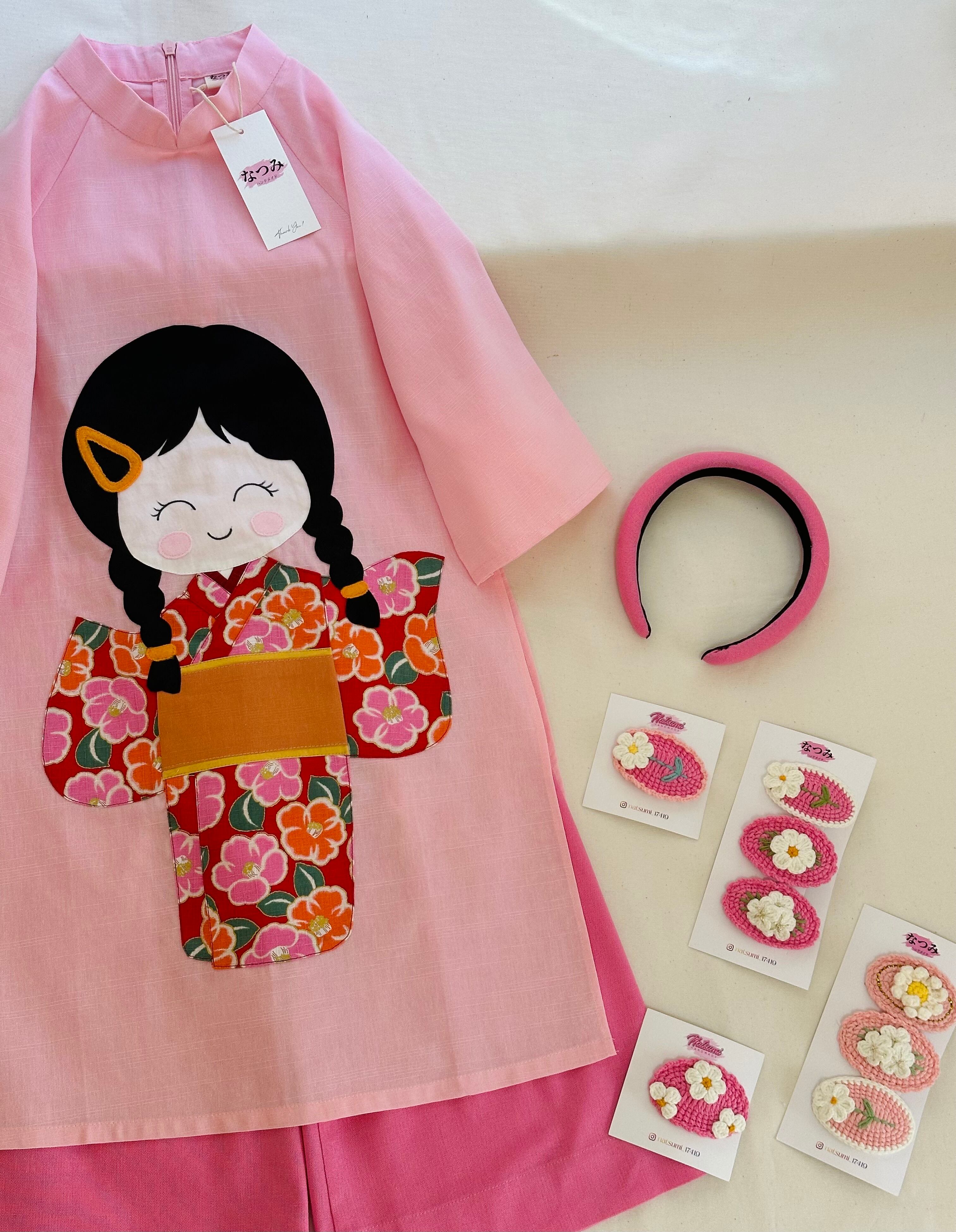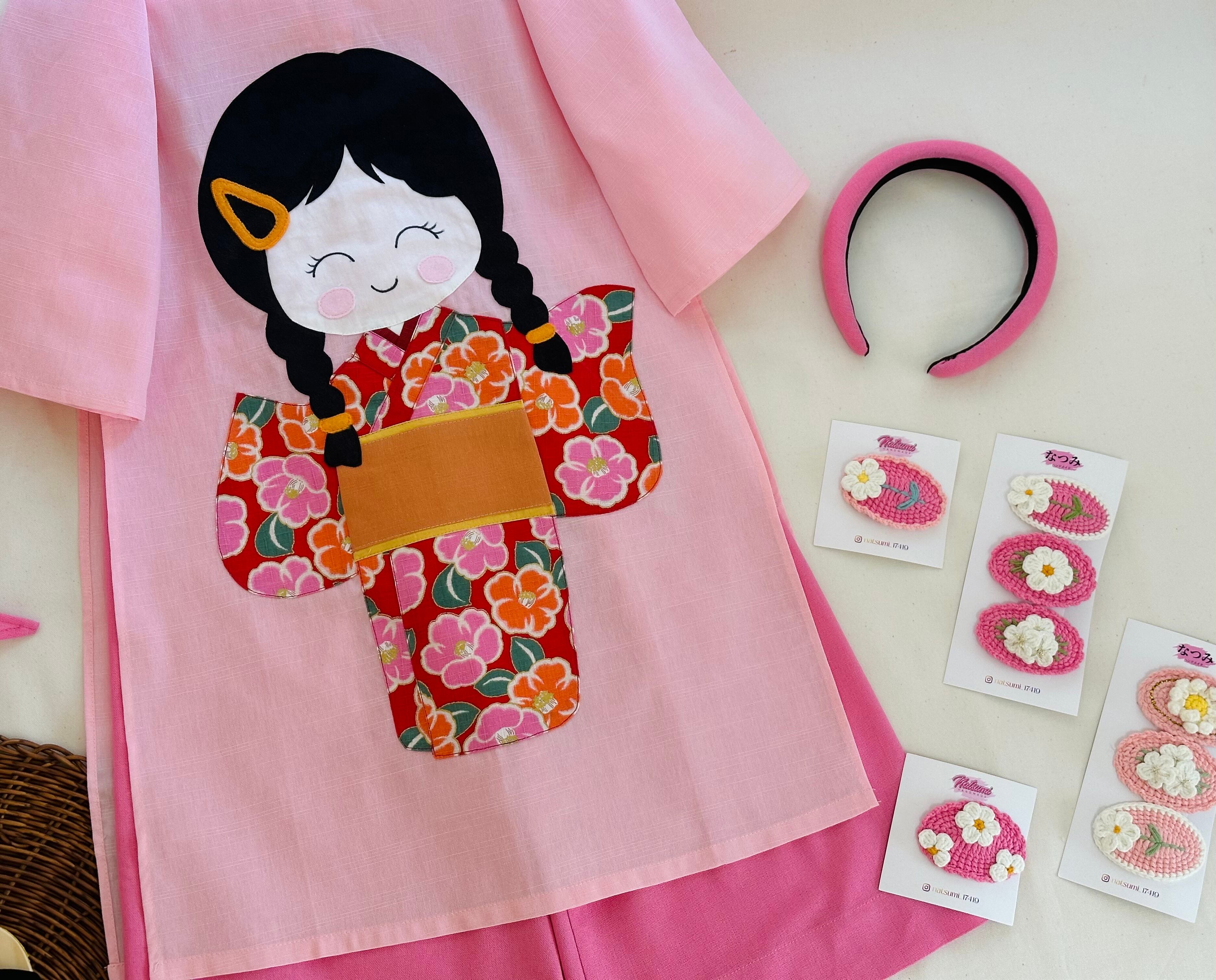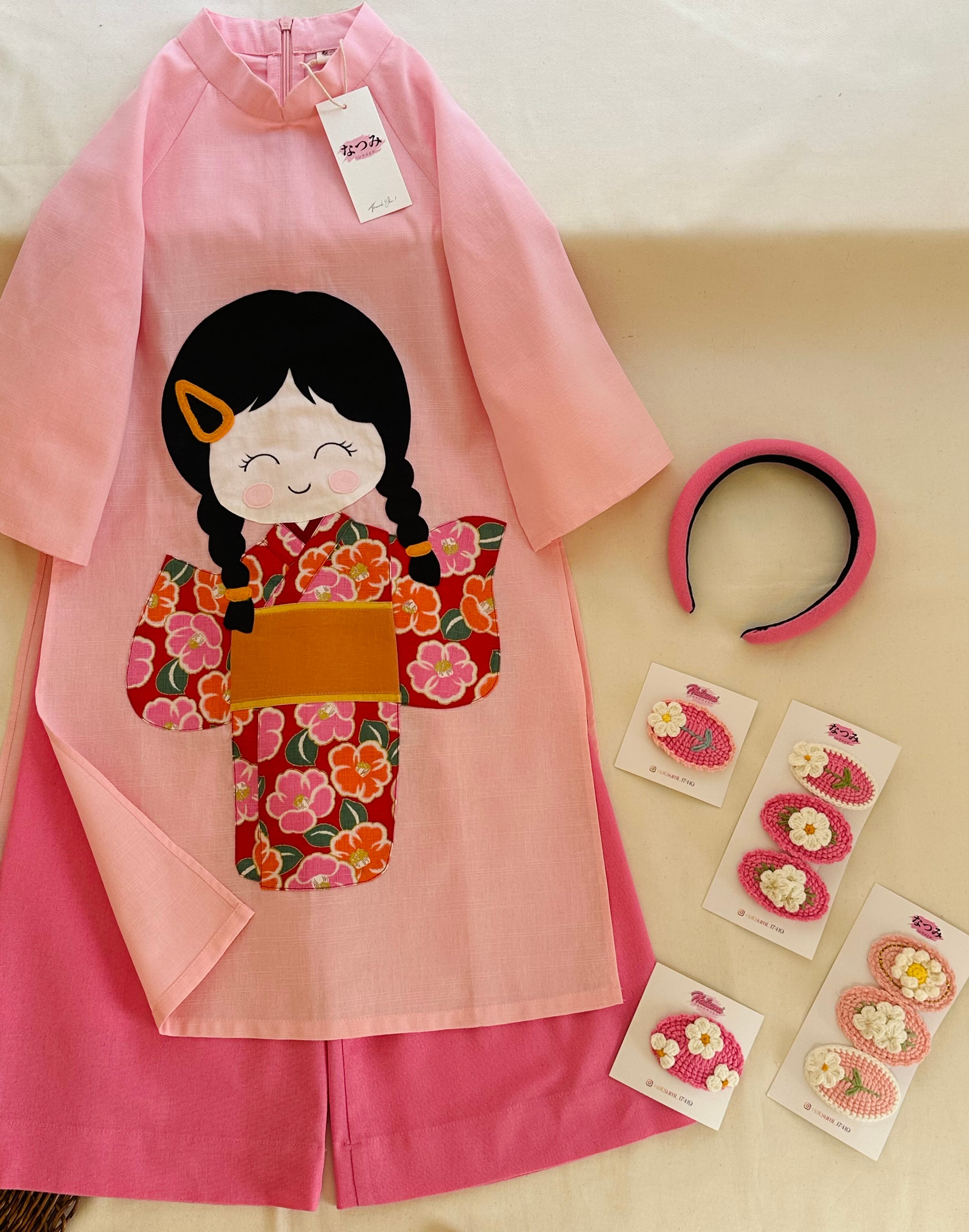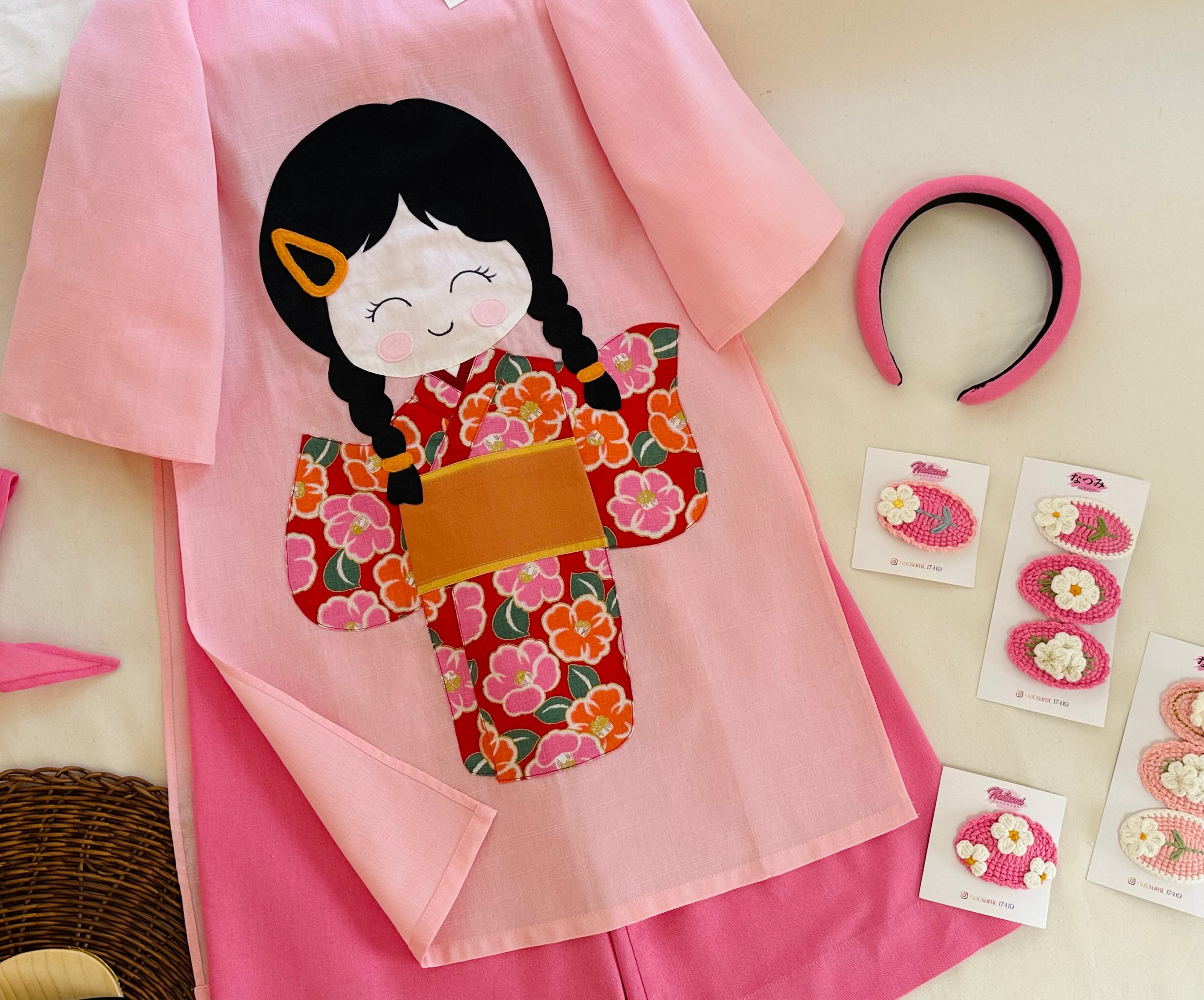 No.BB2530女の子リネンベトナムアオザイセット➖可愛いキルト
