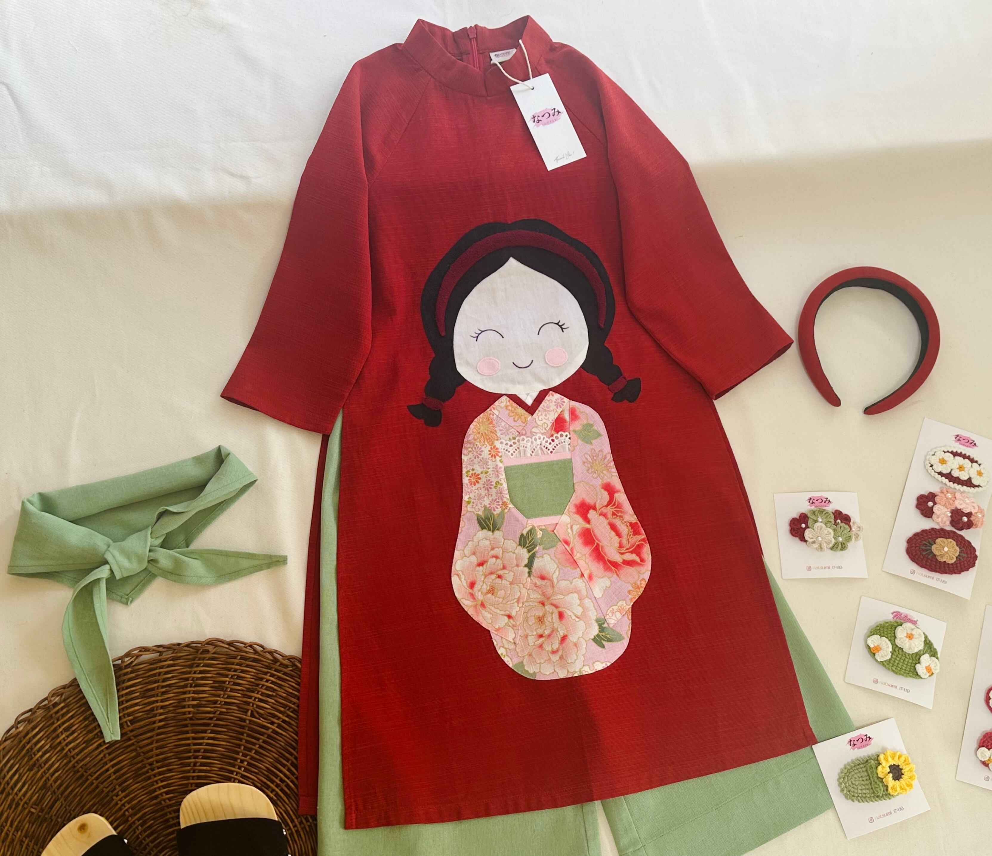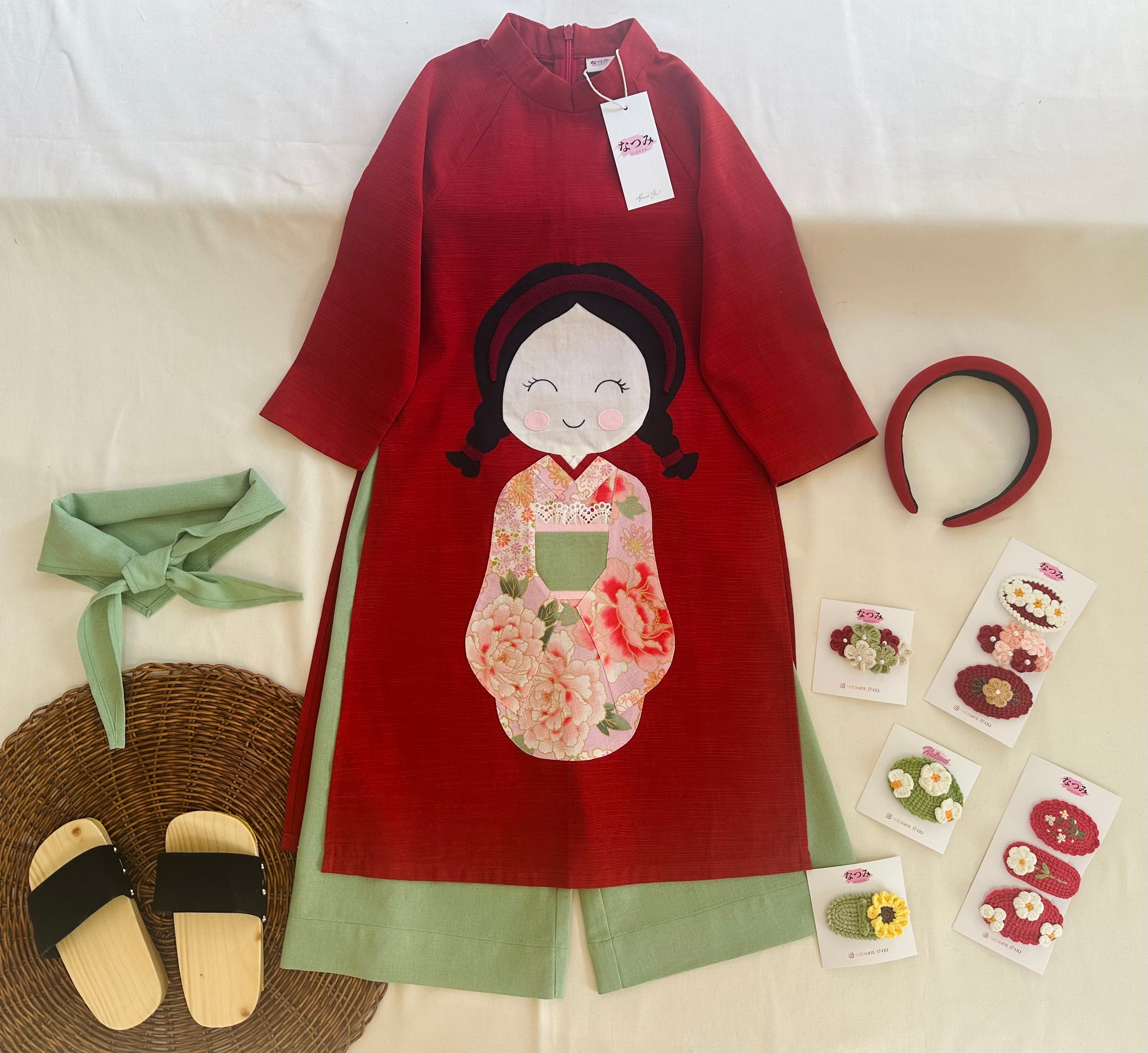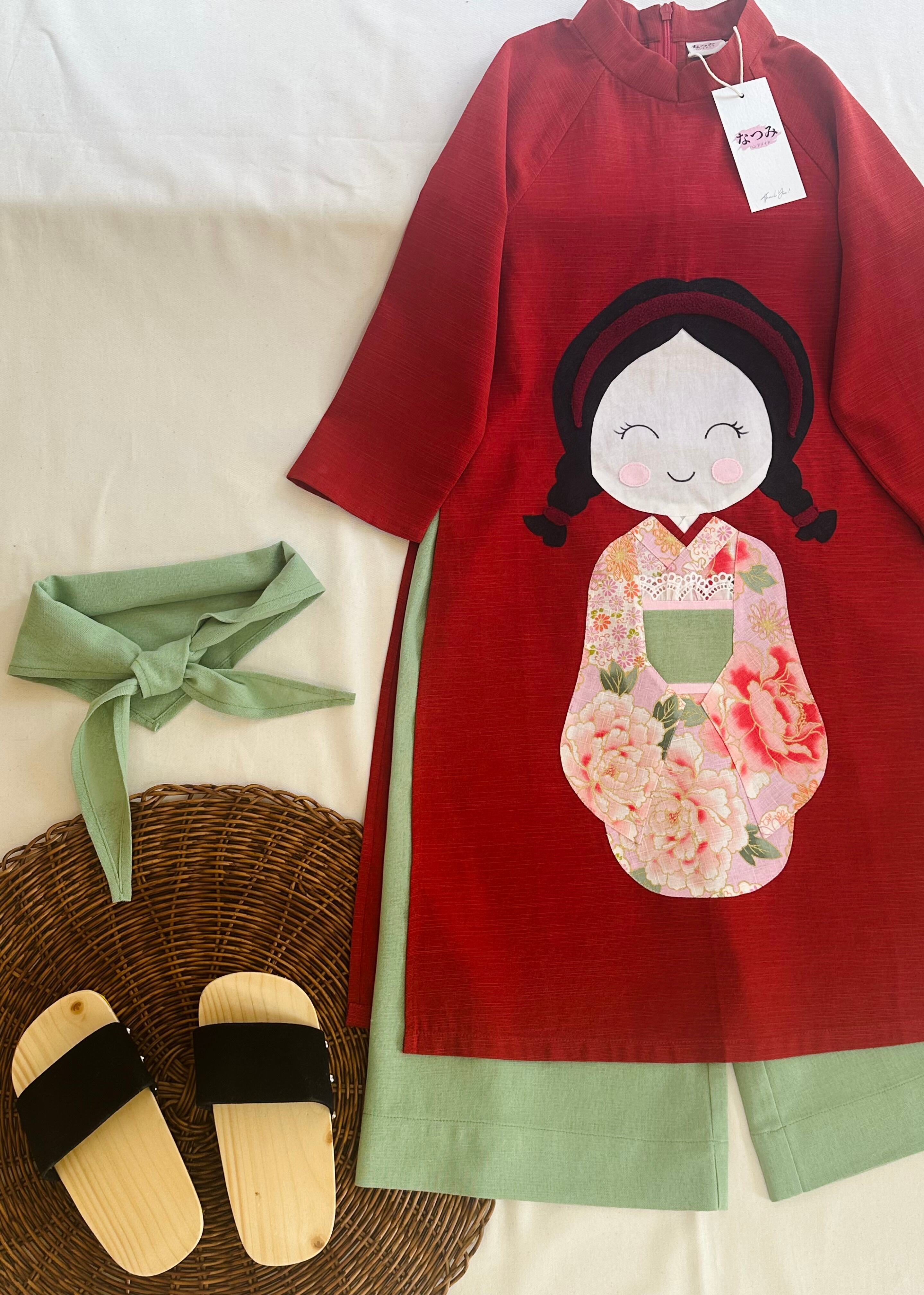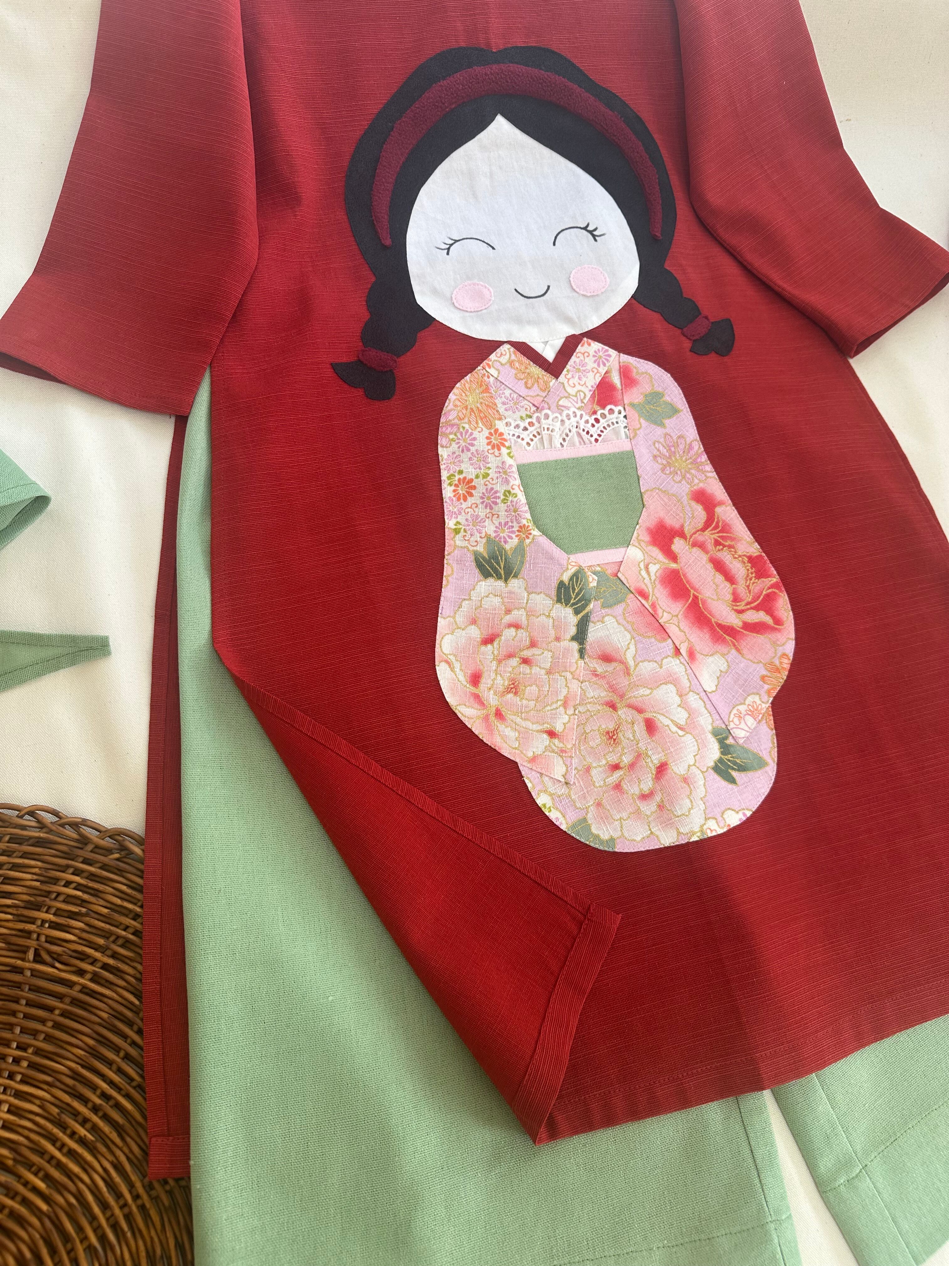 No.BB2531女の子リネンベトナムアオザイセット➖可愛いキルト
