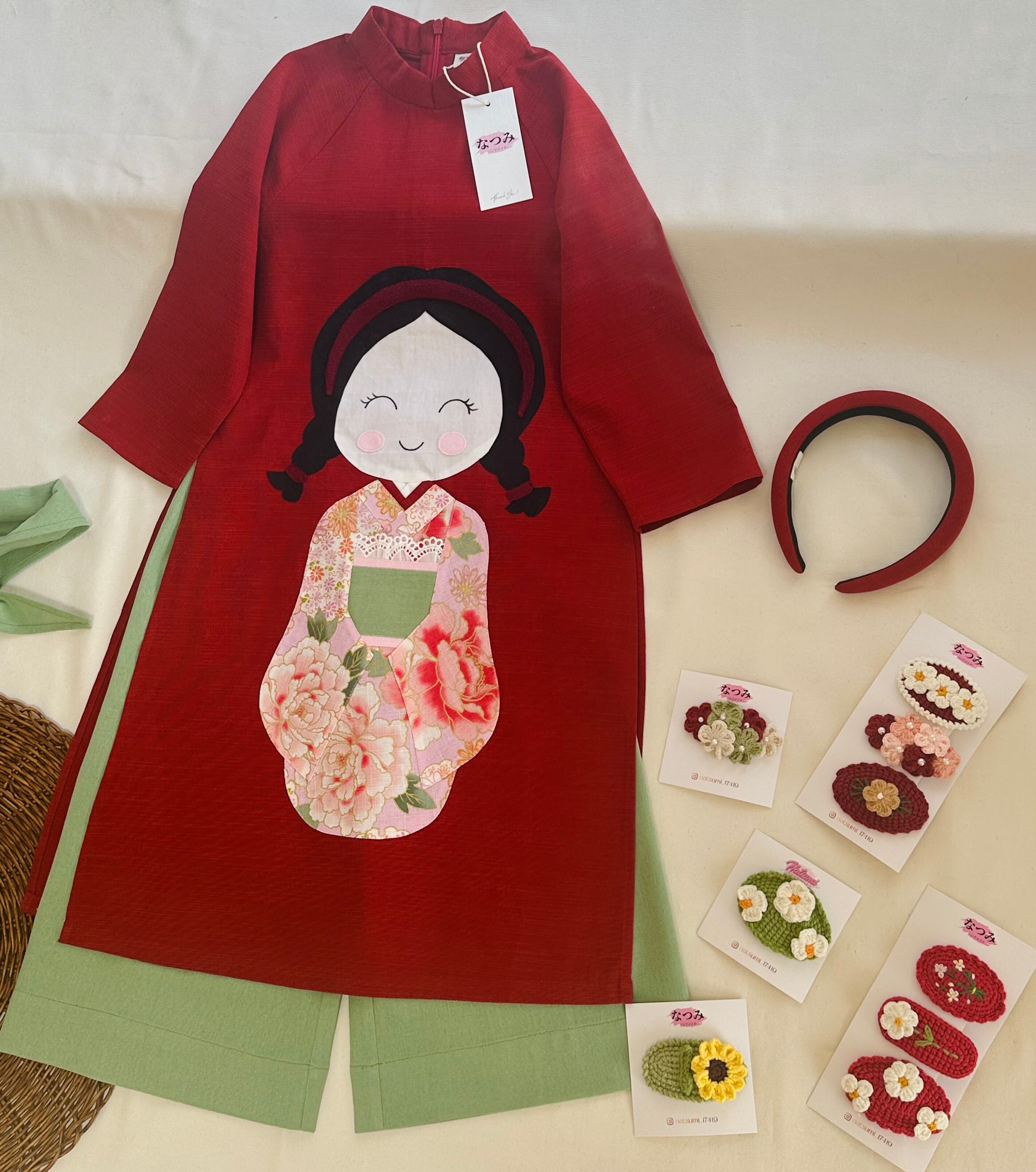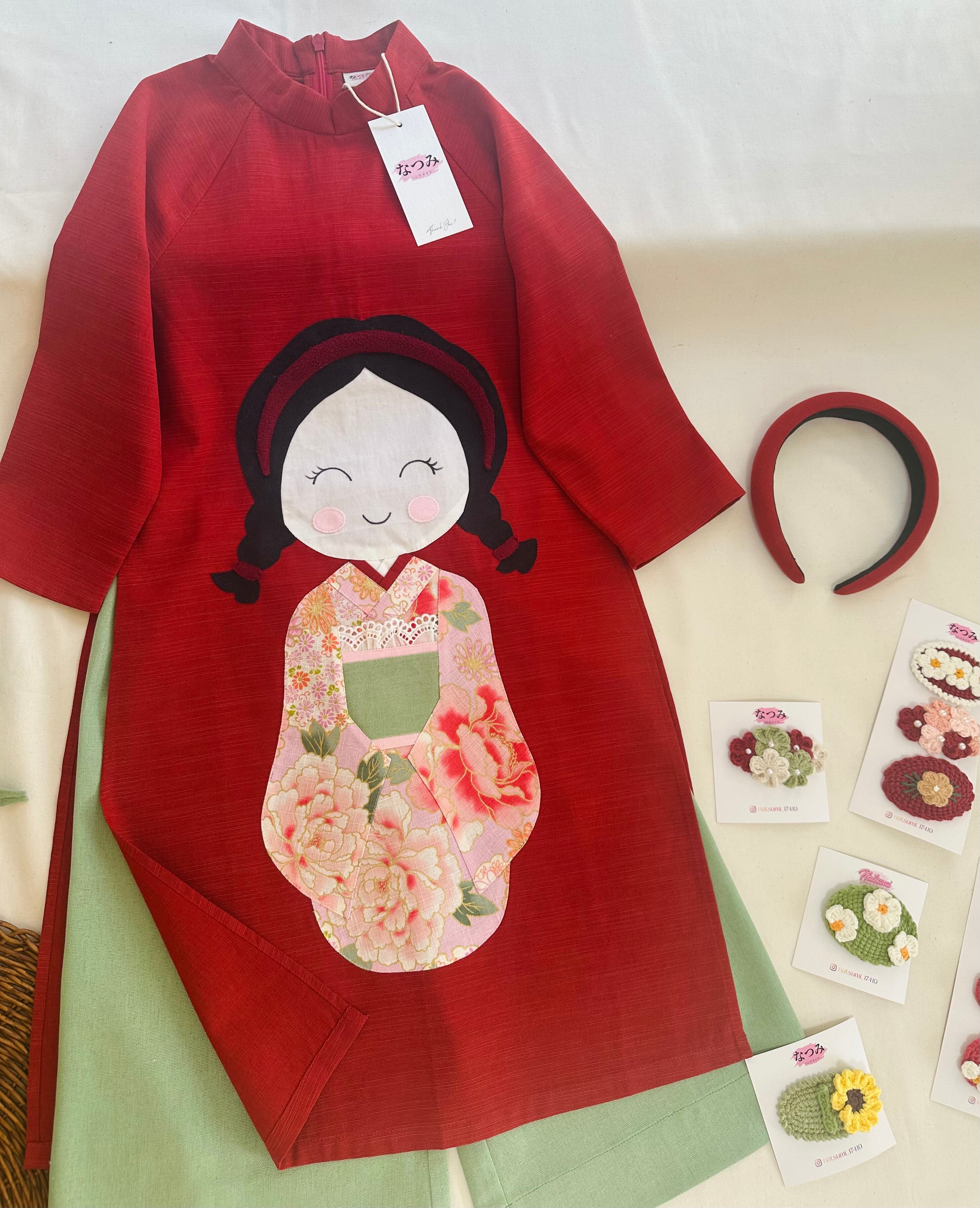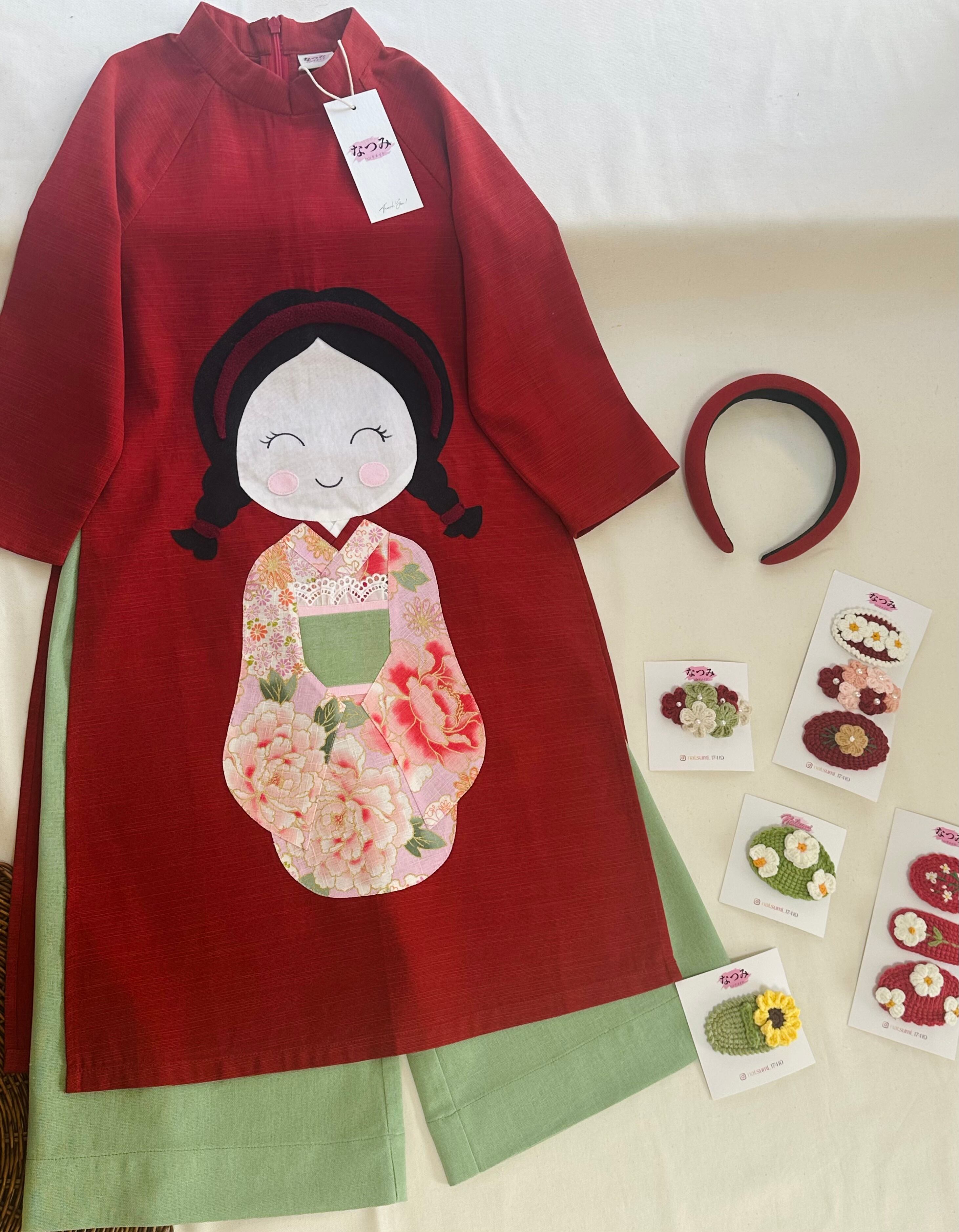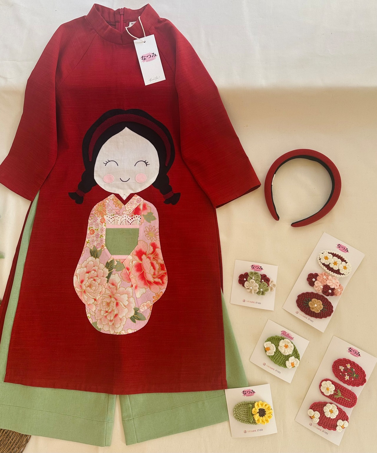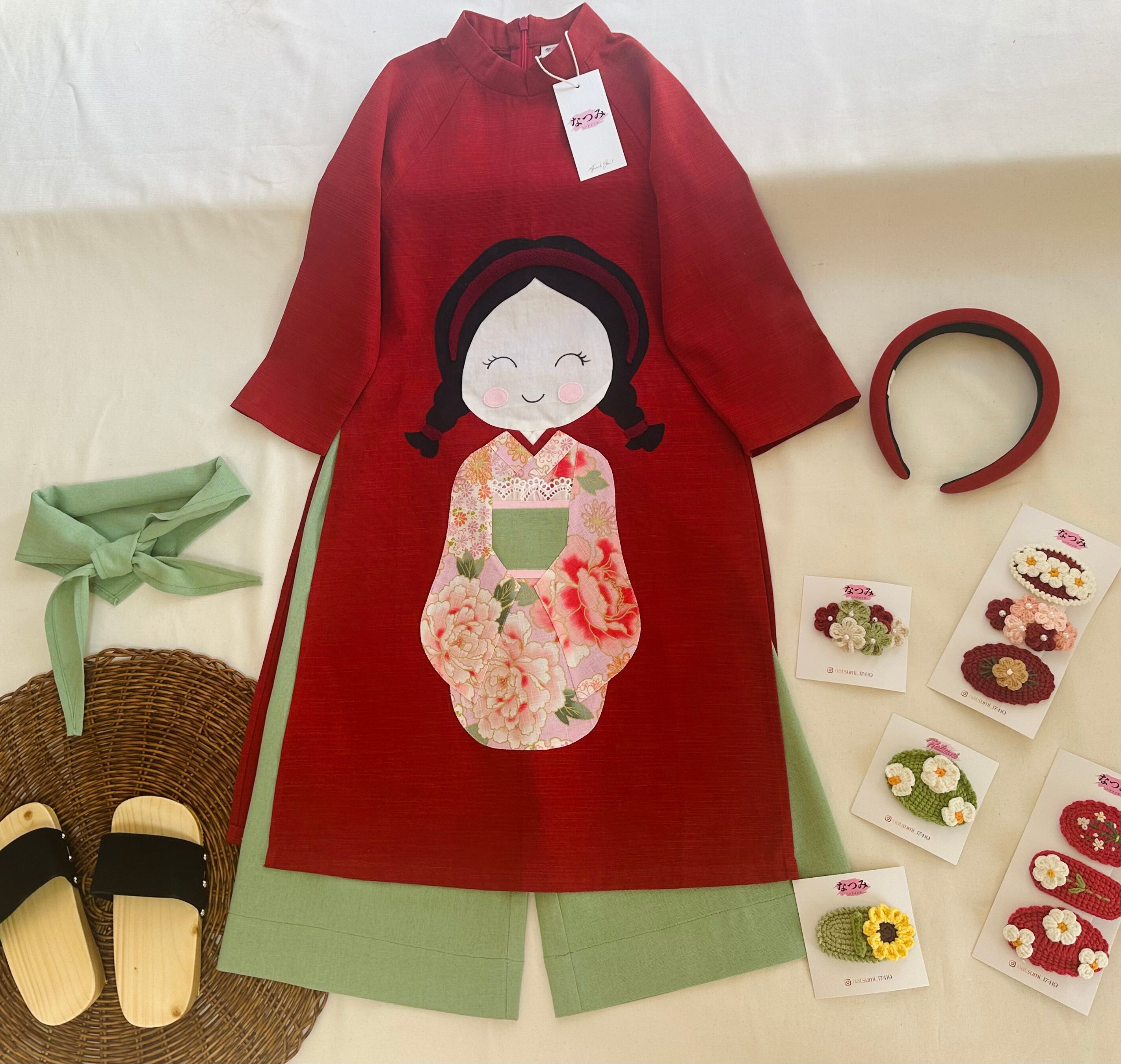 No.BB2531女の子リネンベトナムアオザイセット➖可愛いキルト