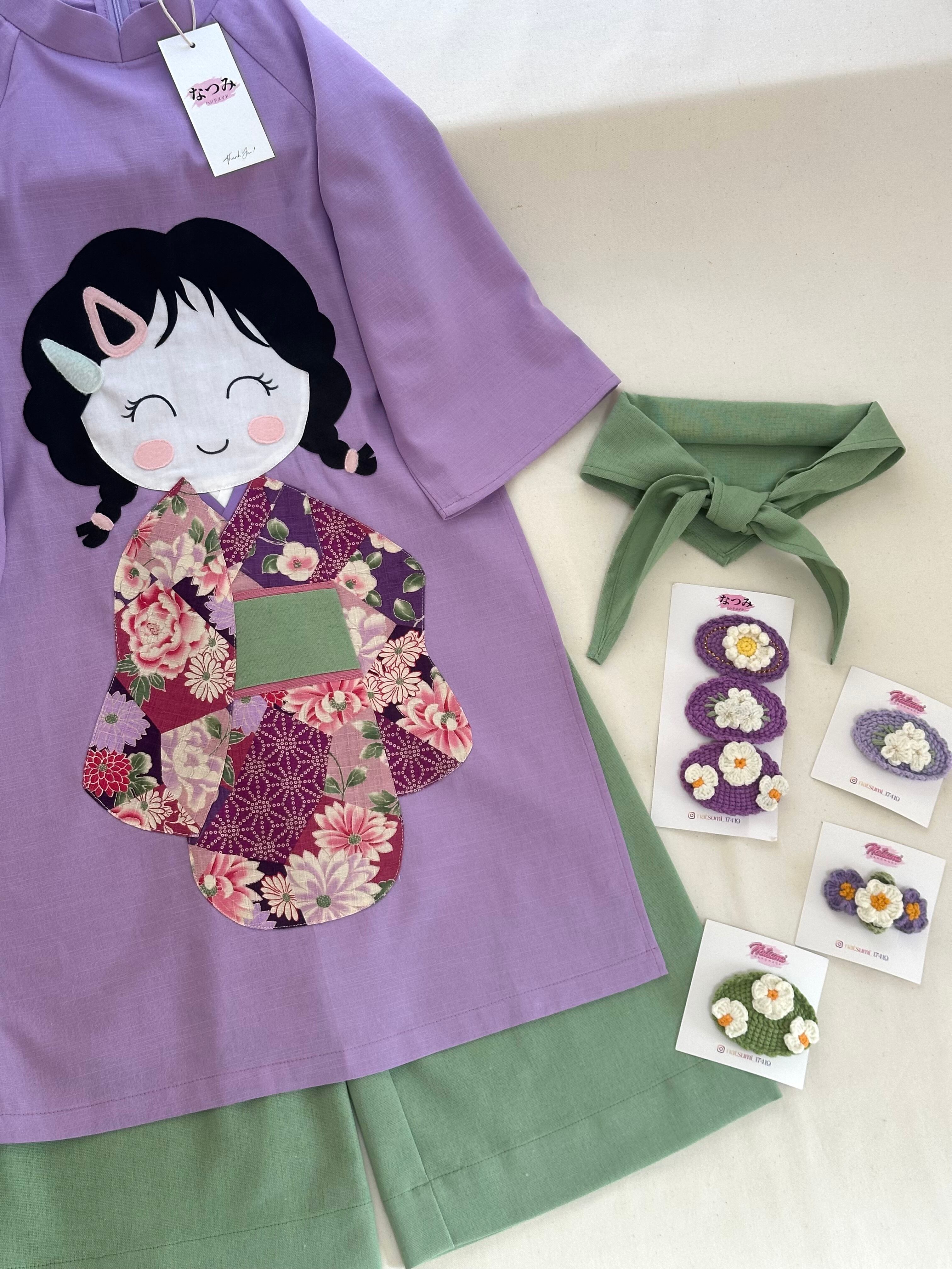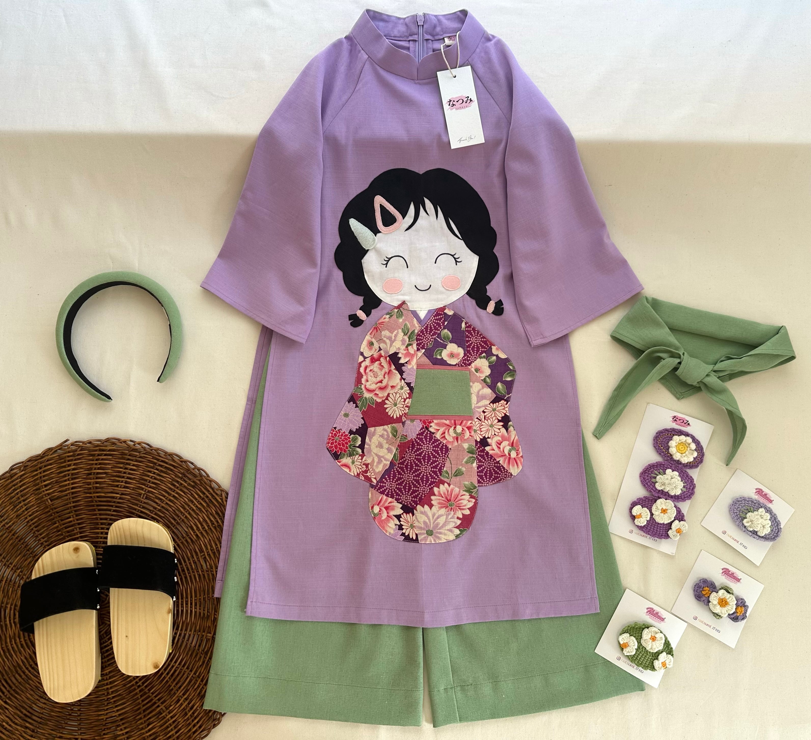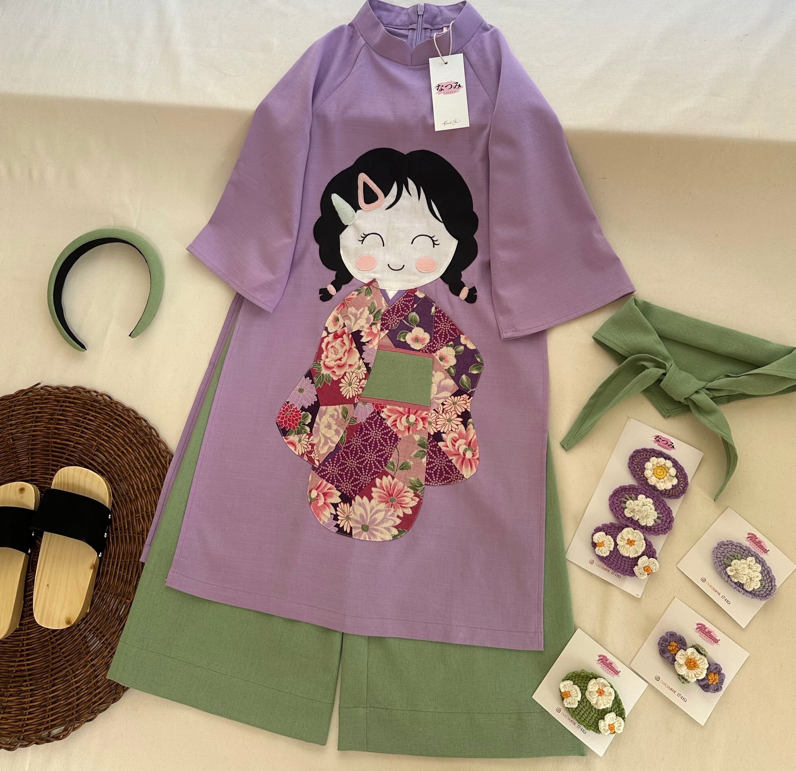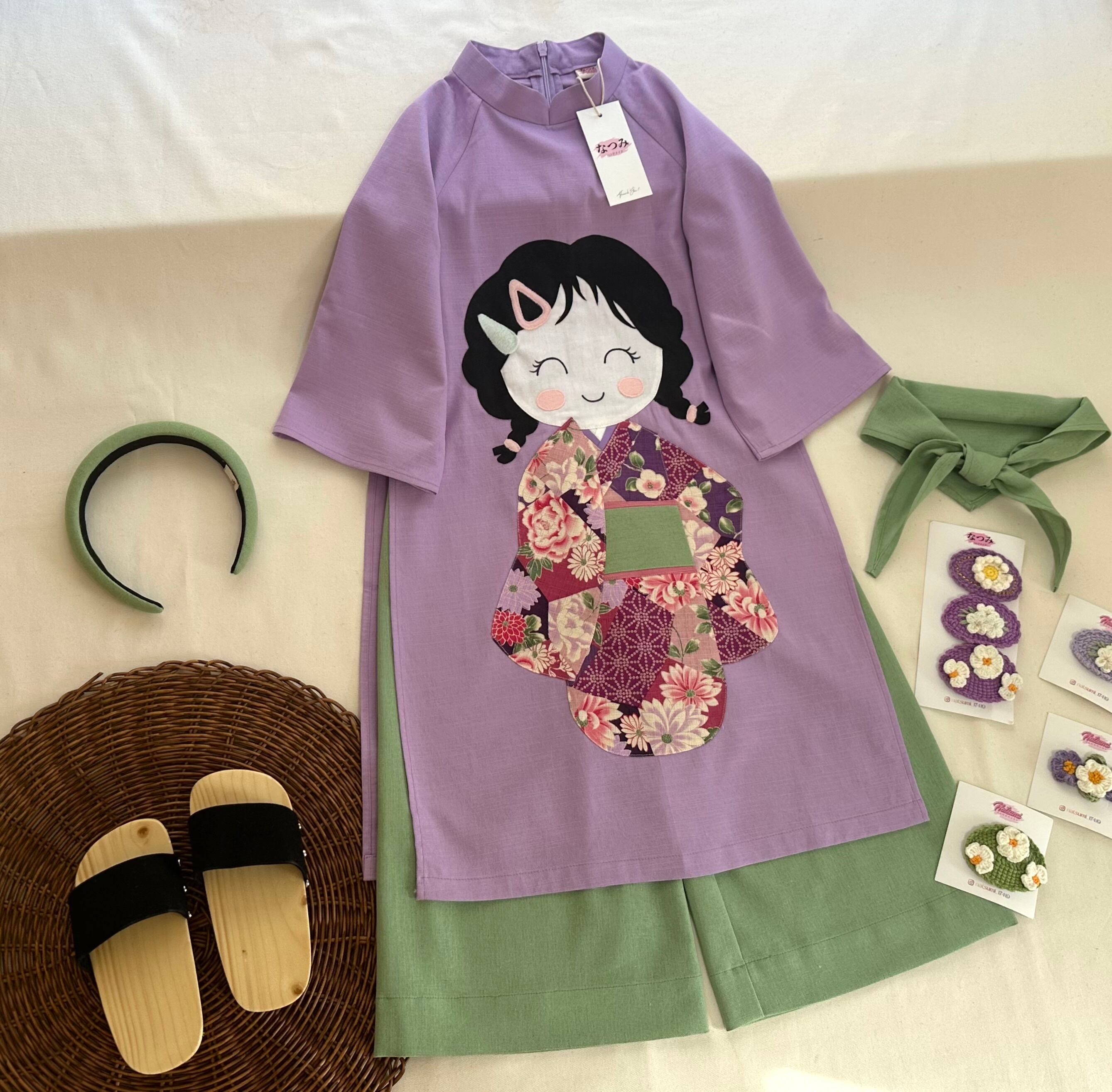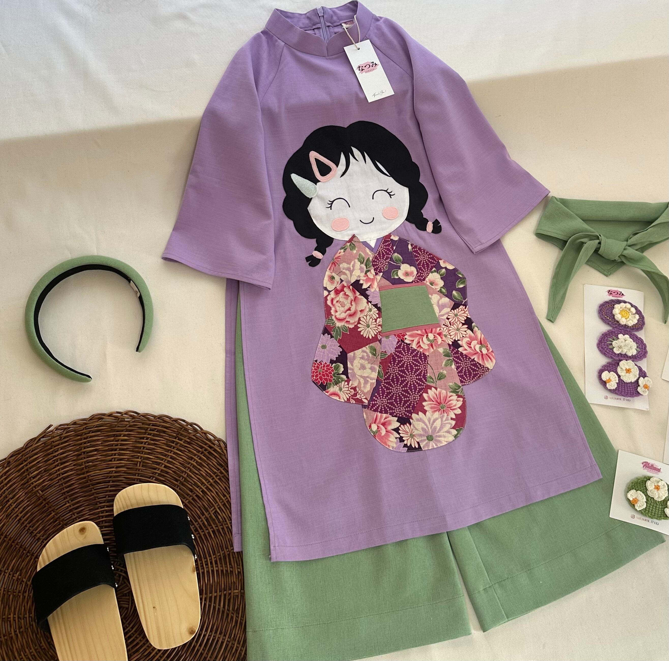No.BB2532女の子リネンベトナムアオザイセット➖可愛いキルト