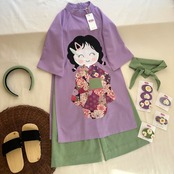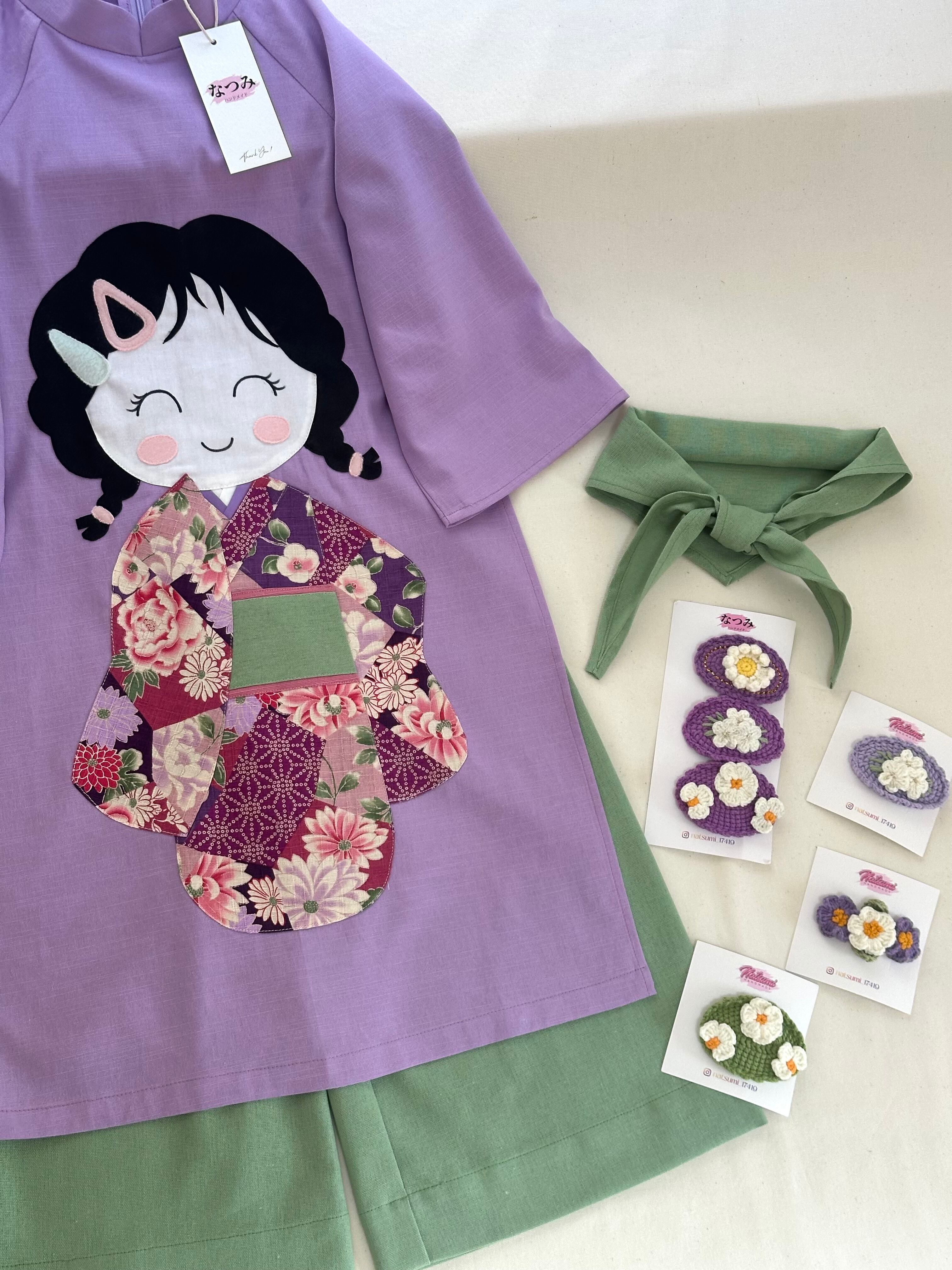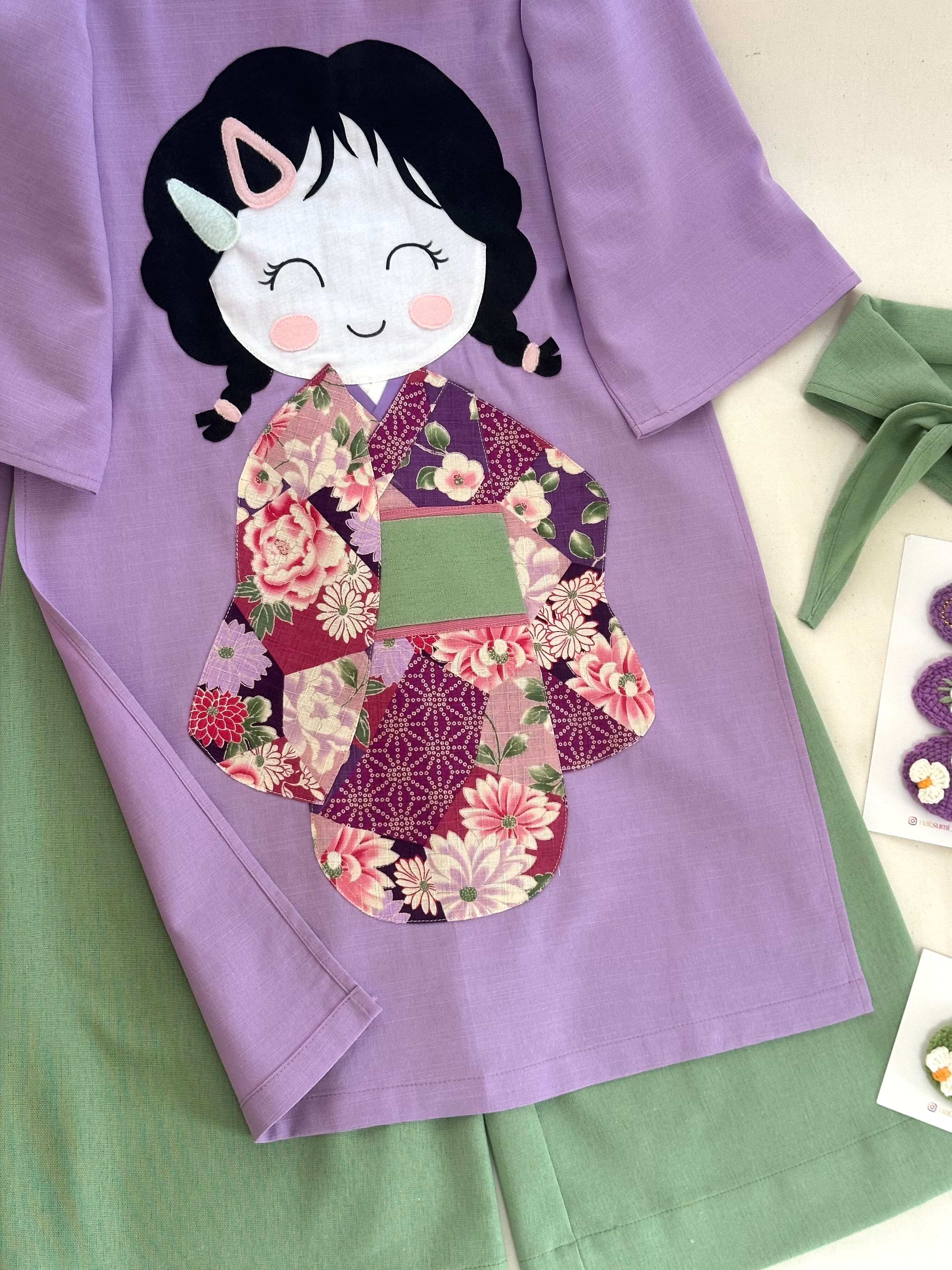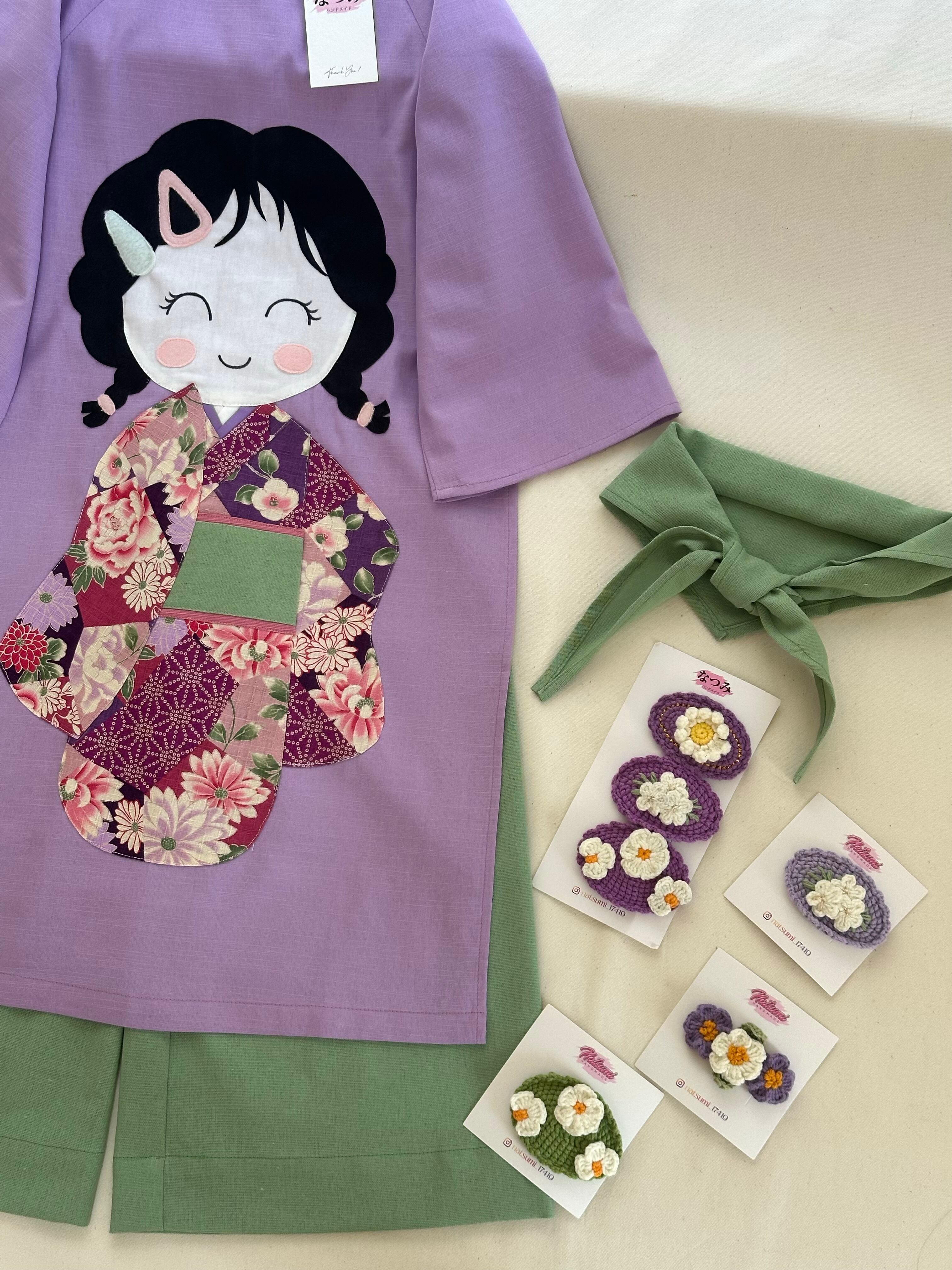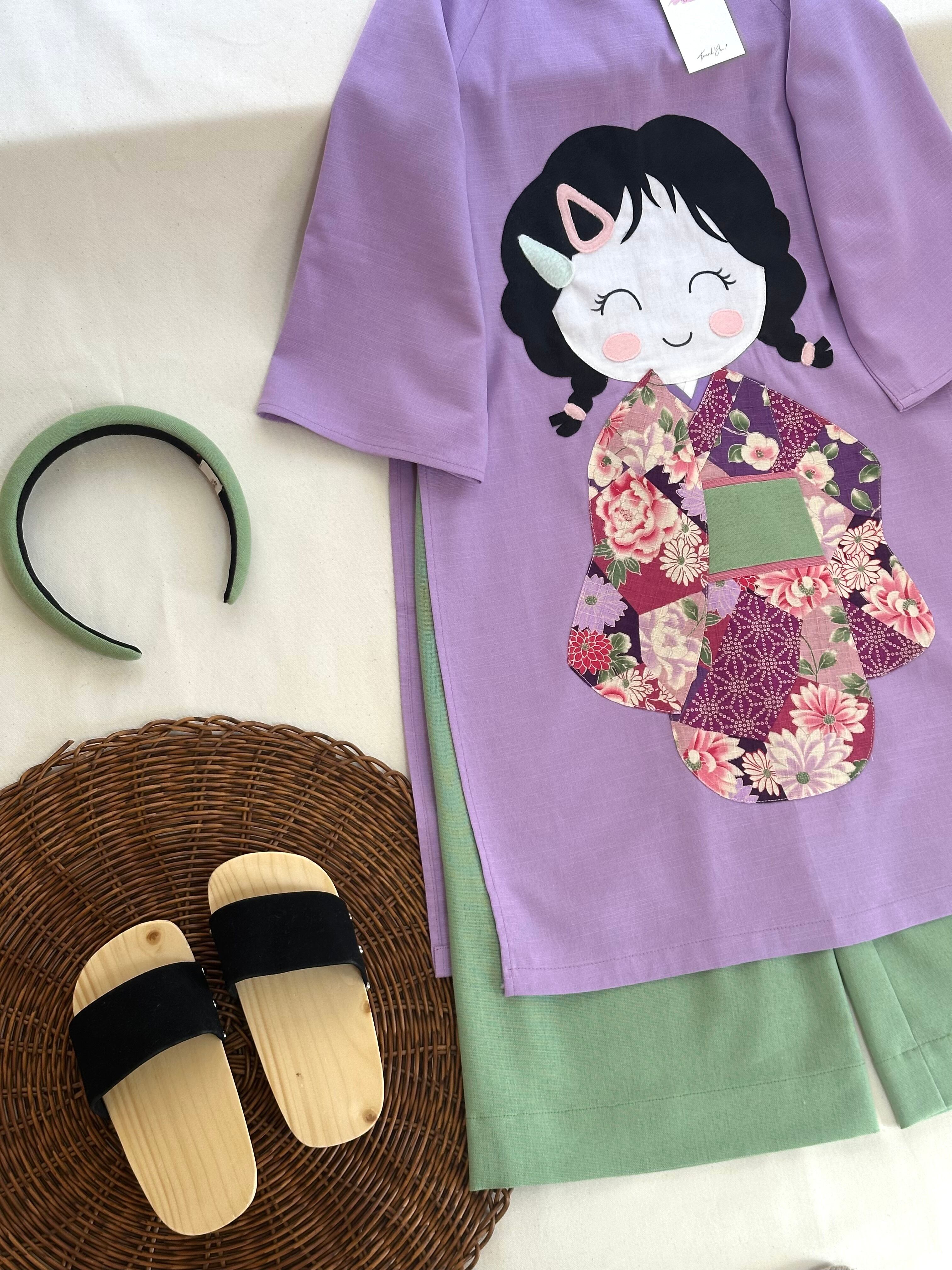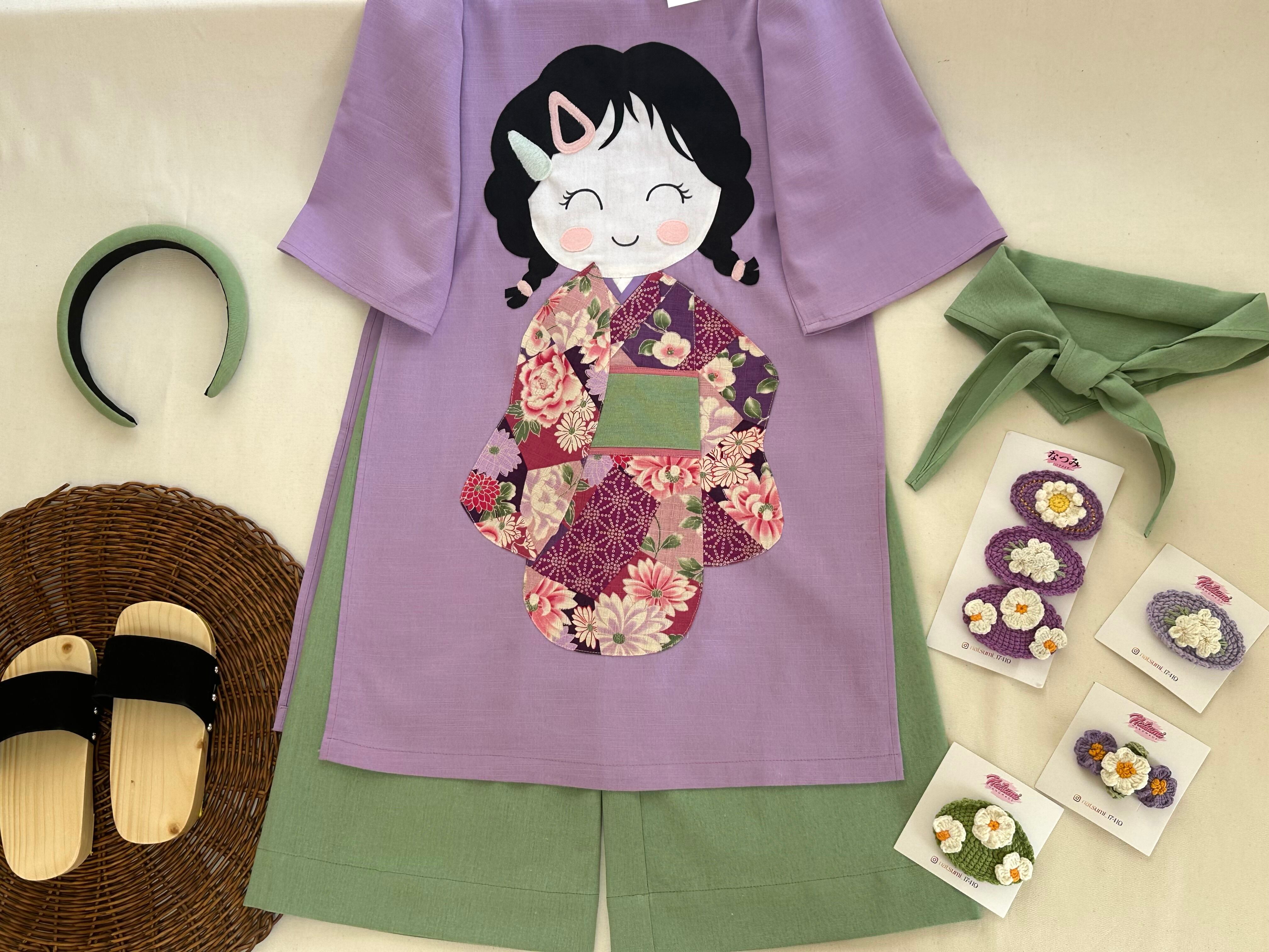 No.BB2532女の子リネンベトナムアオザイセット➖可愛いキルト
