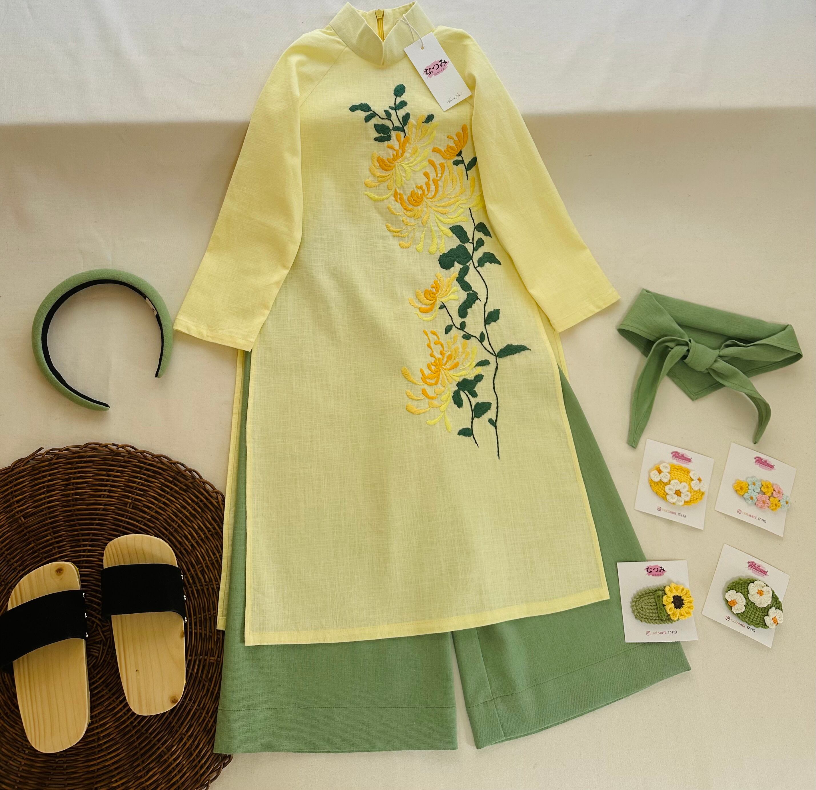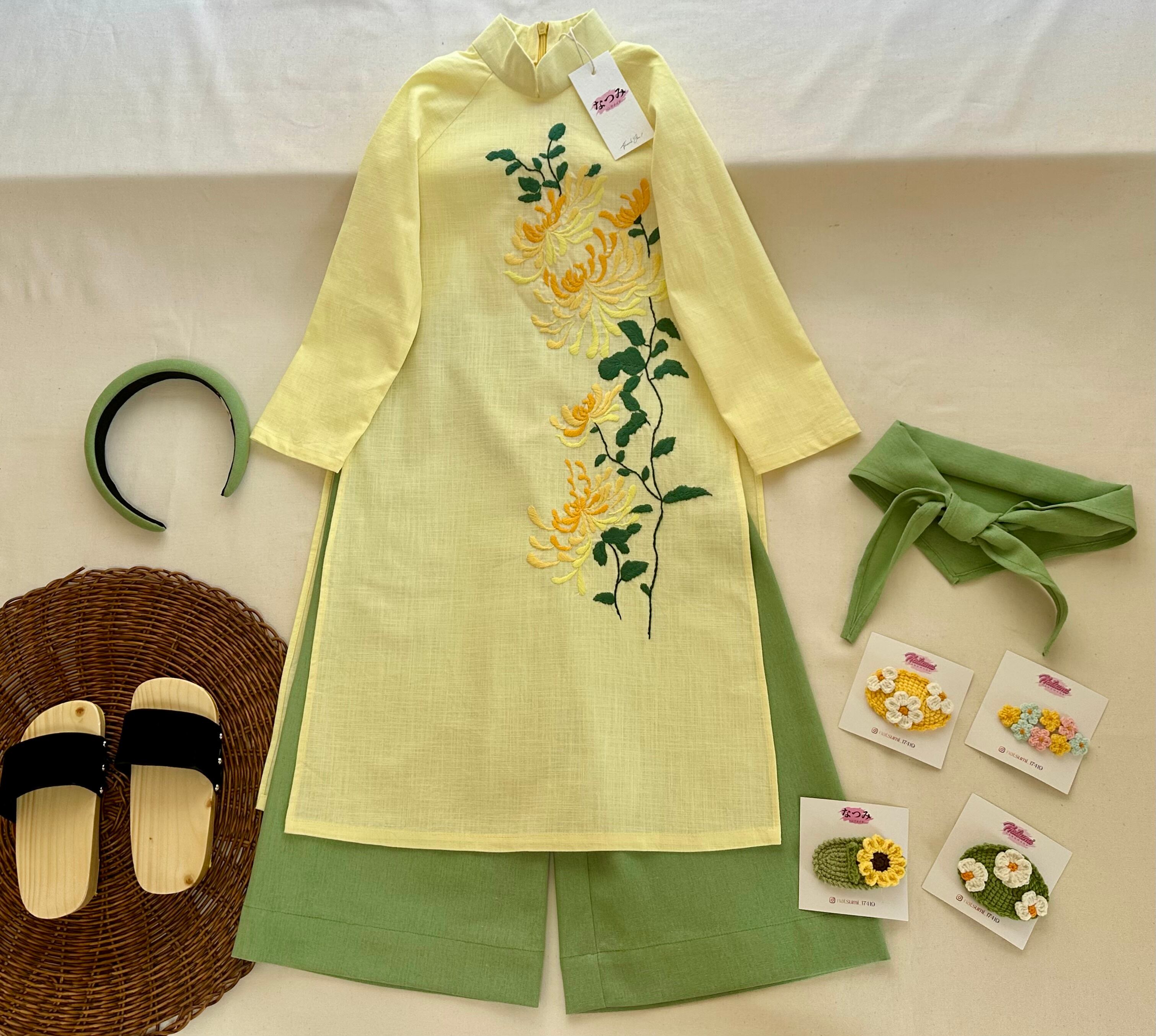 No.ADT2506女の子手刺繍アオザイセットヘヤバンド付き