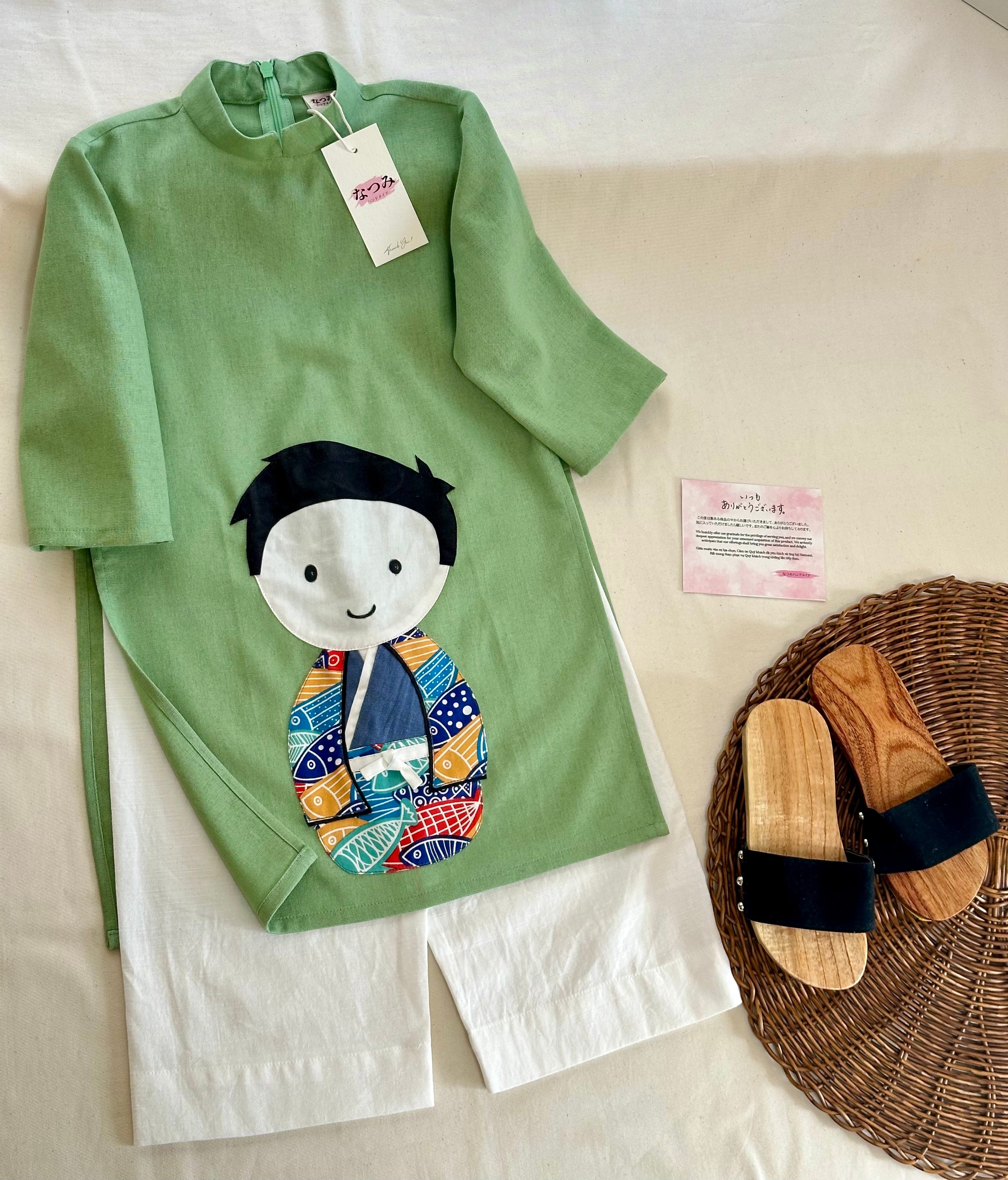 No.BB2534男の子リネンベトナムアオザイセット➖可愛いキルト