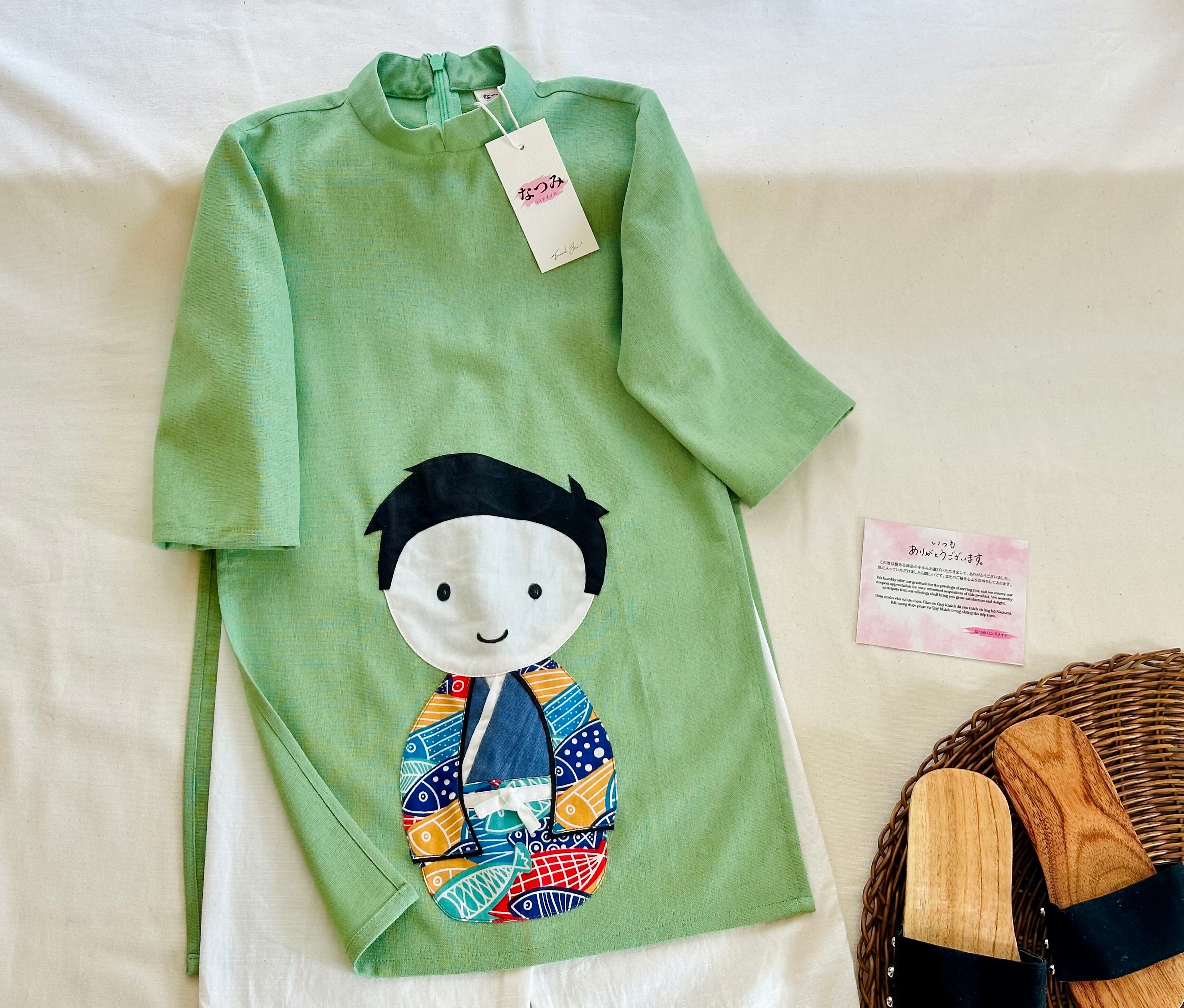 こちらの子供用アオザイは、普段着としても楽しめるように、ワンピースのような可愛らしいデザインに仕上げました。