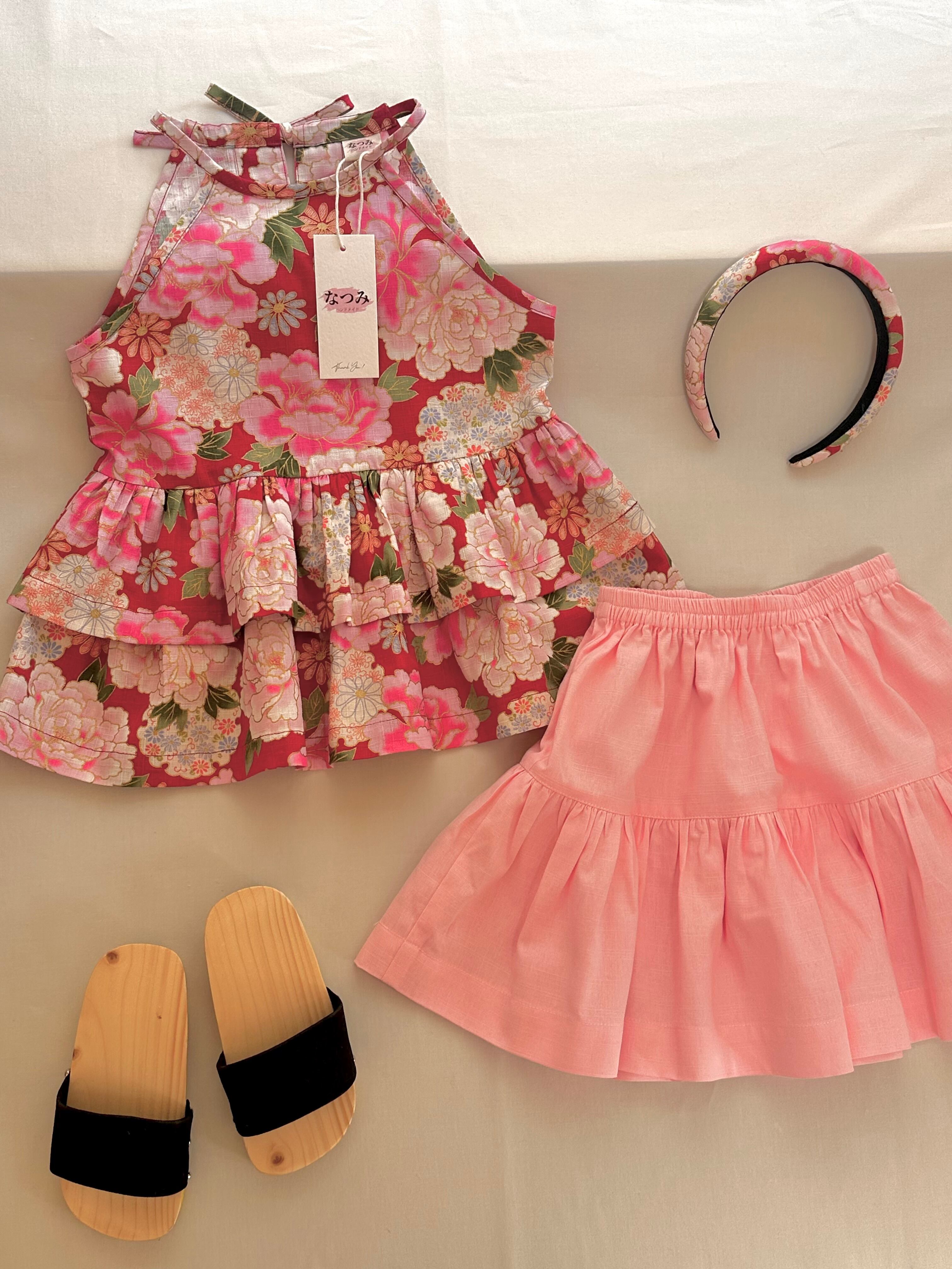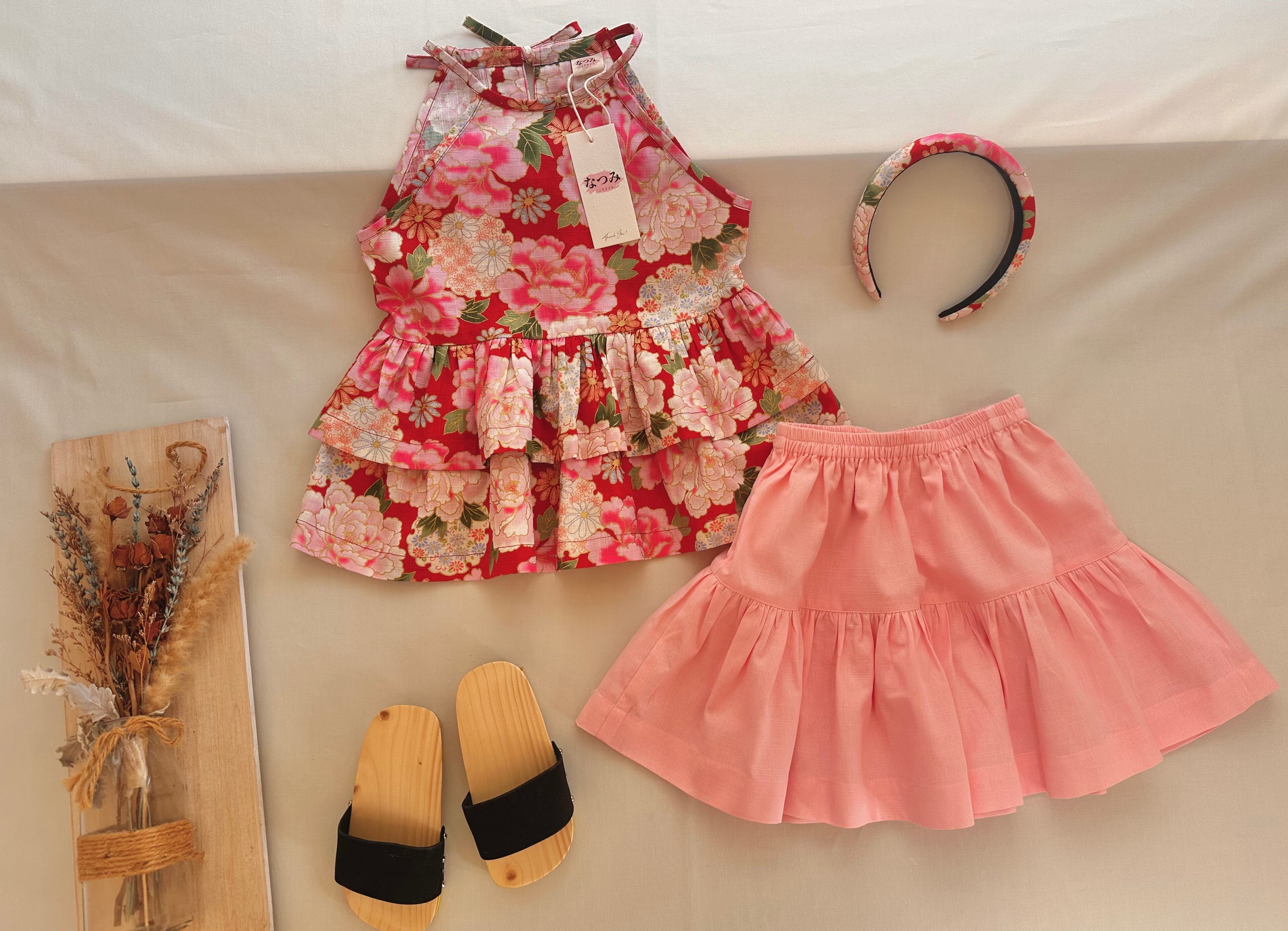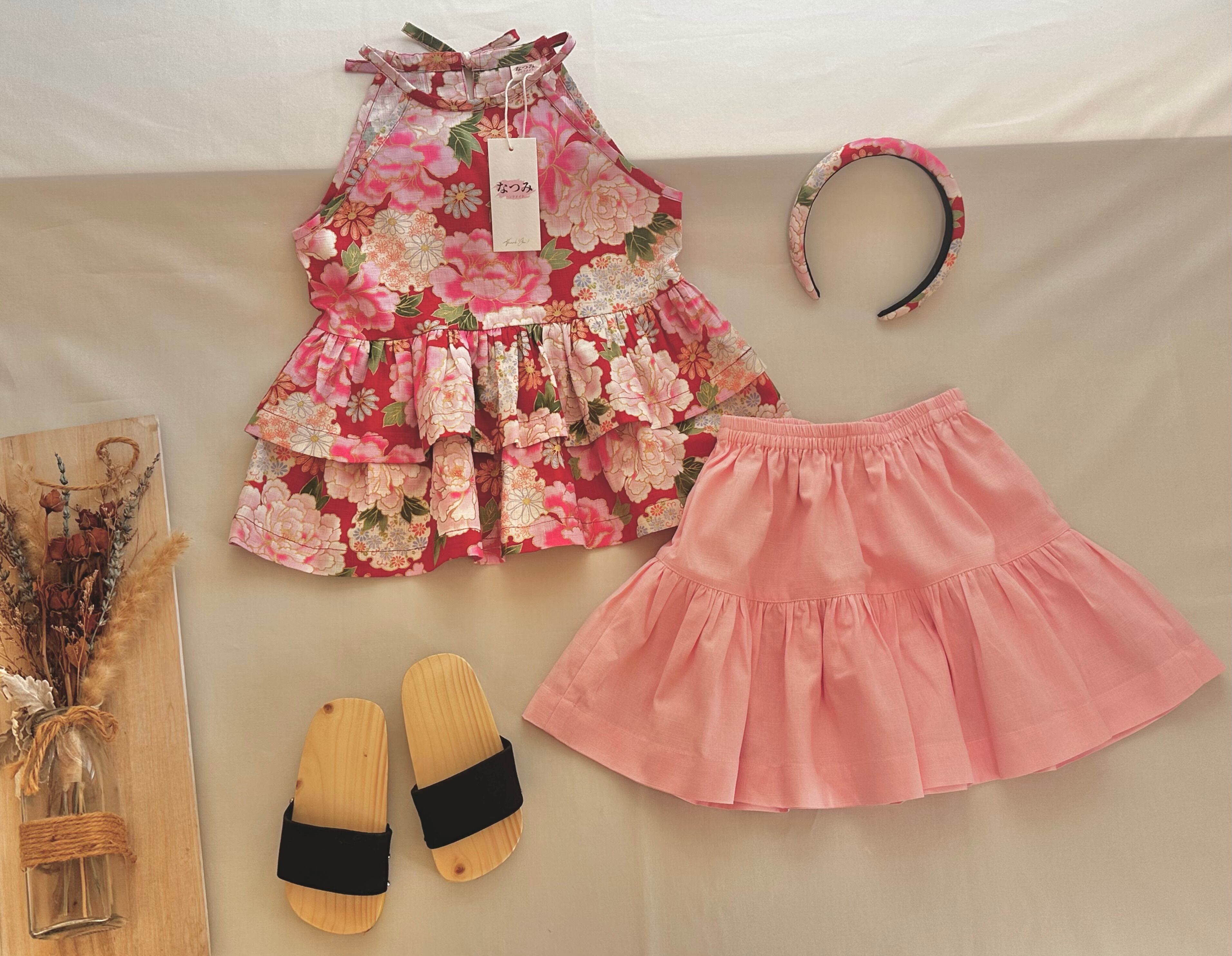 No.SX2503 ハンドメイド女の子花柄のフリル付きスカートセットヘヤバンド付き
